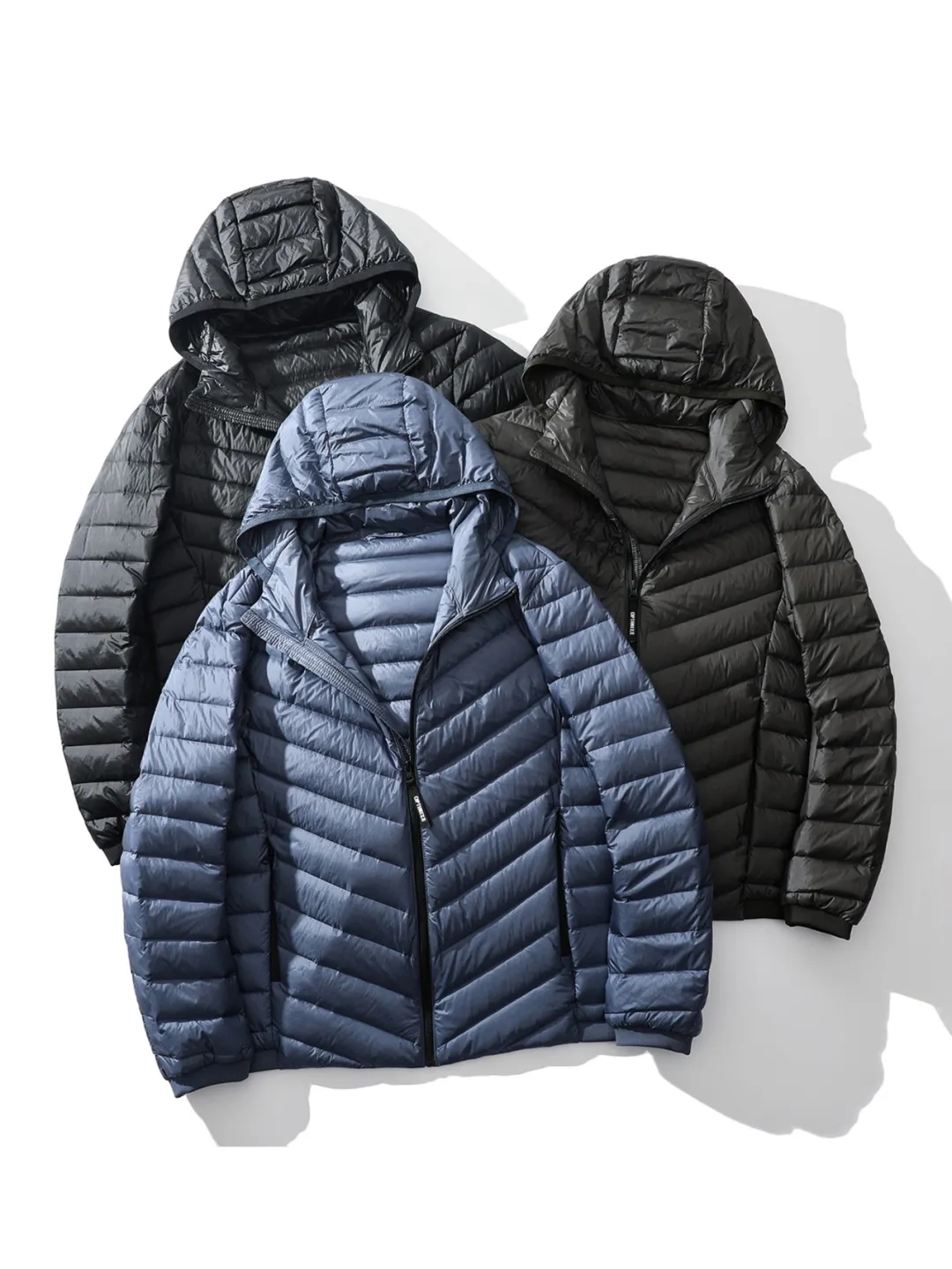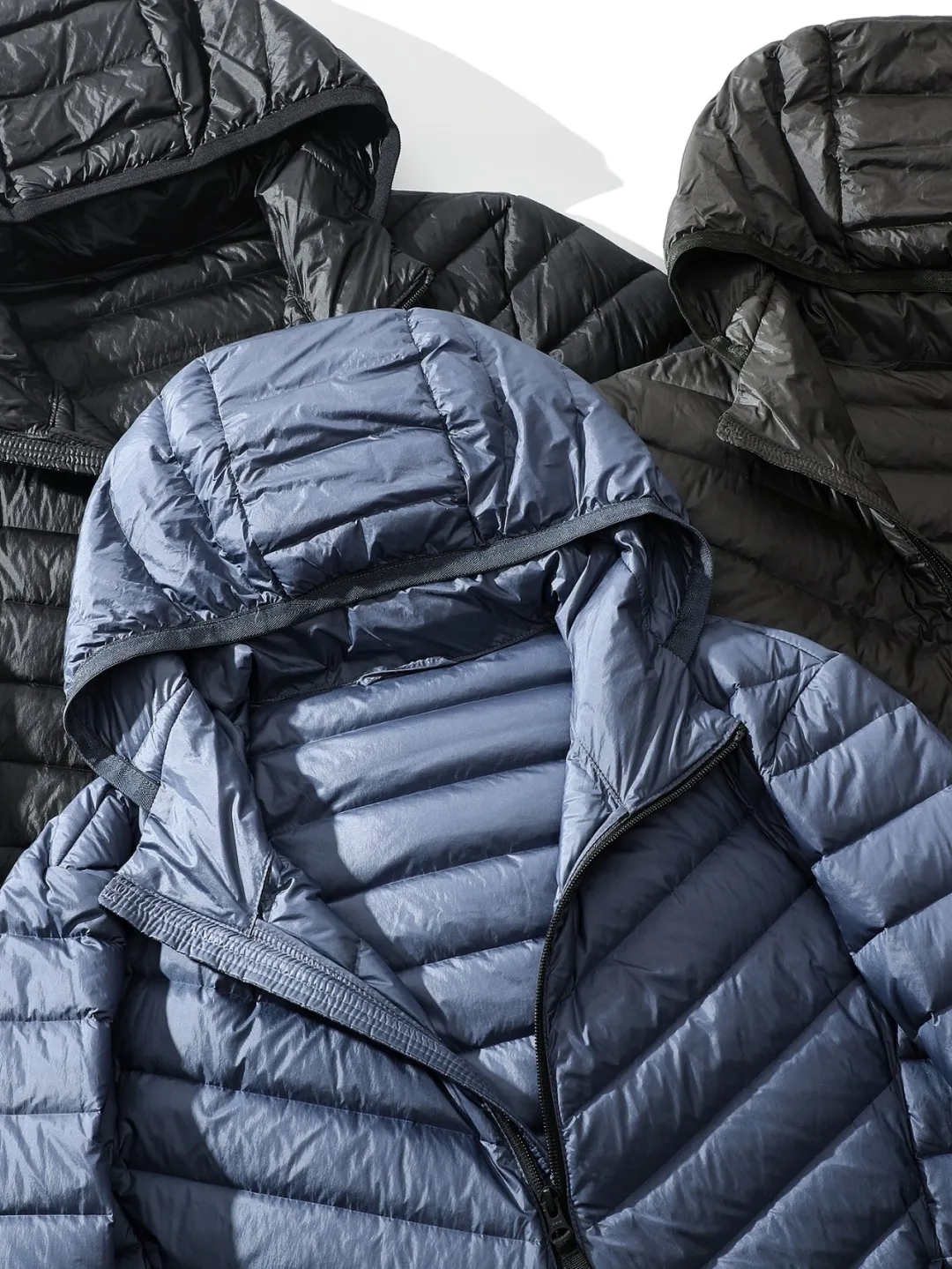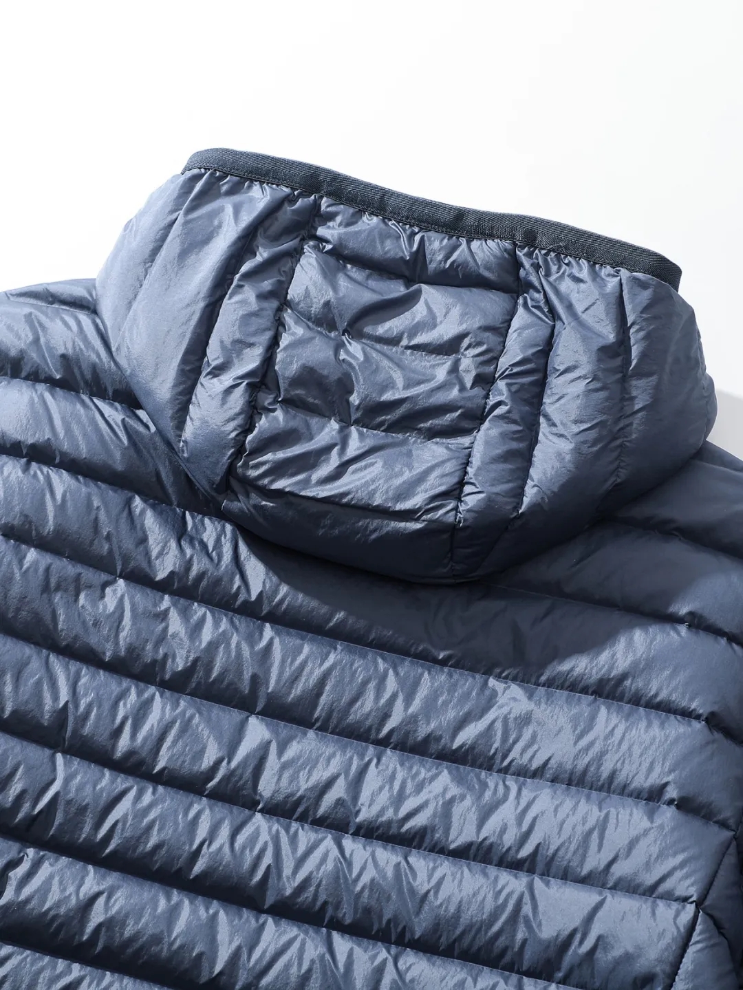 D120401保暖不臃肿!90白鸭绒排骨羽绒服可收纳轻量化户外运动休闲连帽羽绒服!
