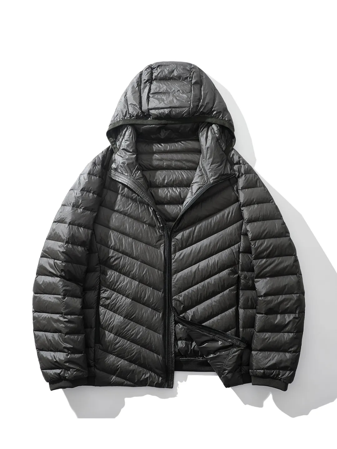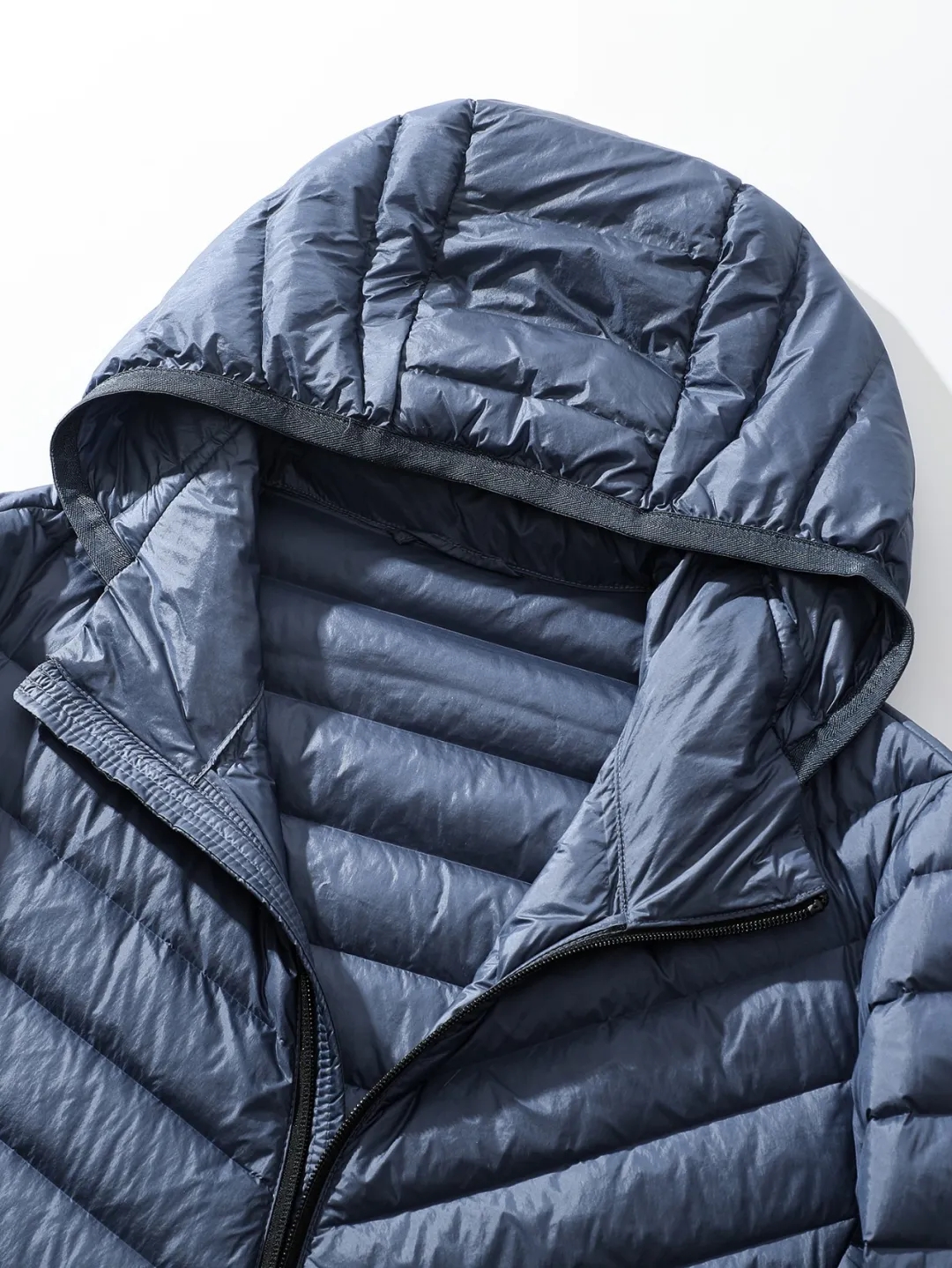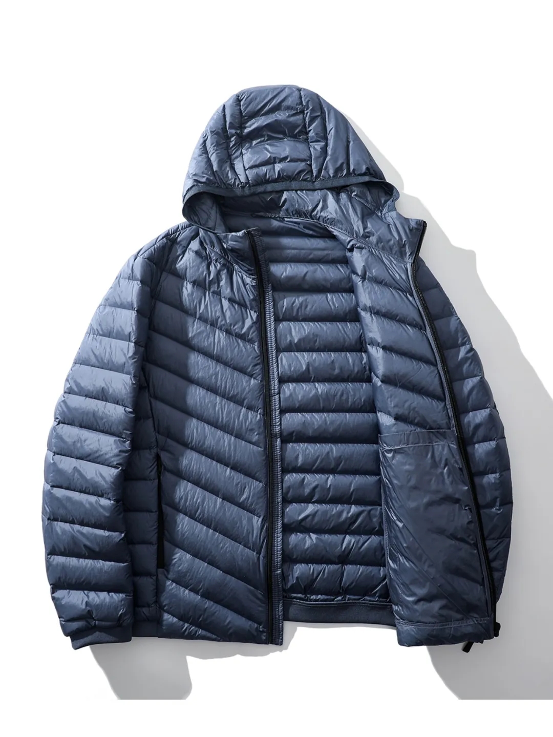 D120401保暖不臃肿!90白鸭绒排骨羽绒服可收纳轻量化户外运动休闲连帽羽绒服!