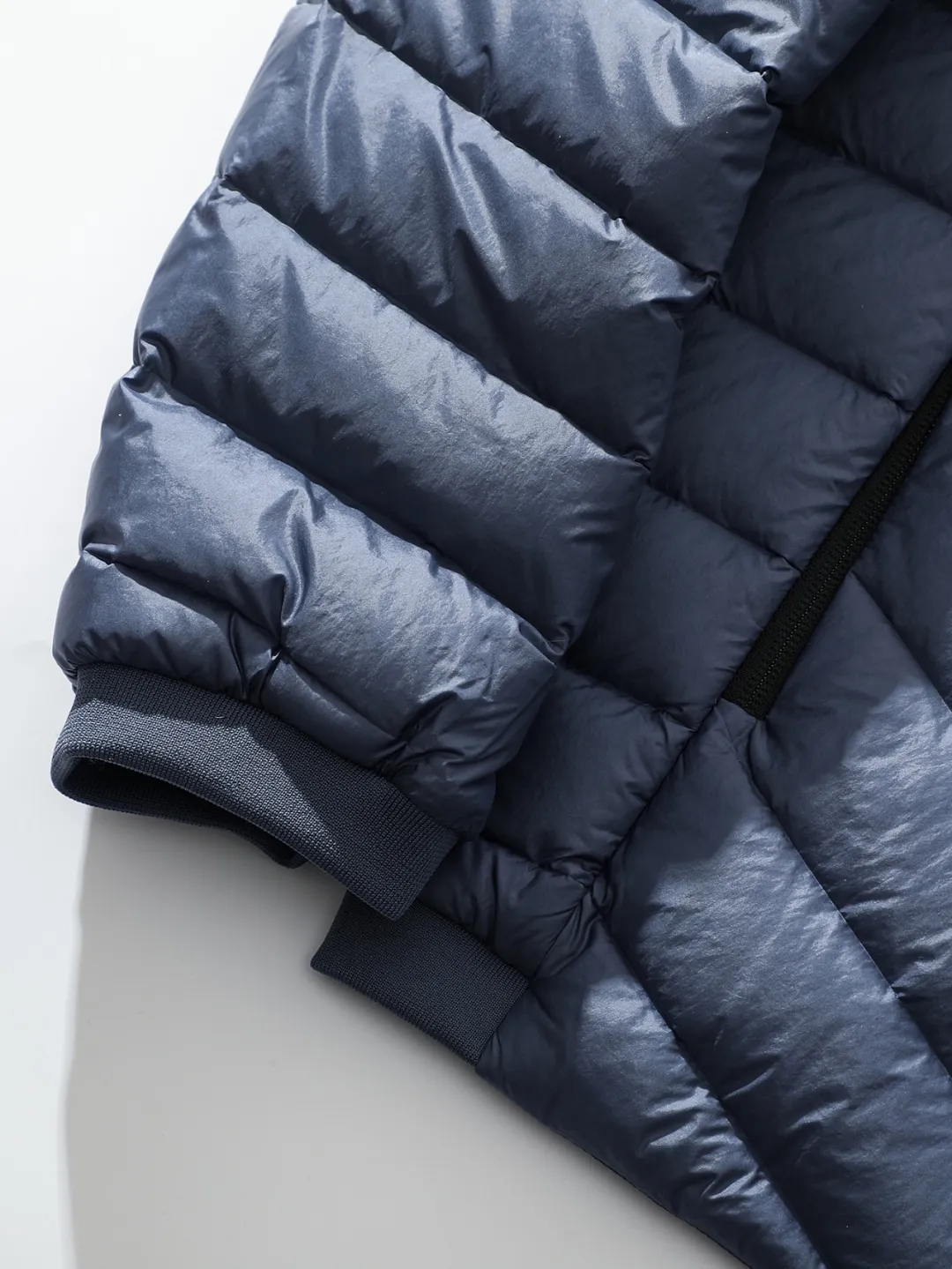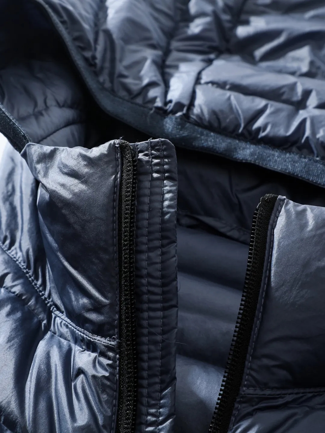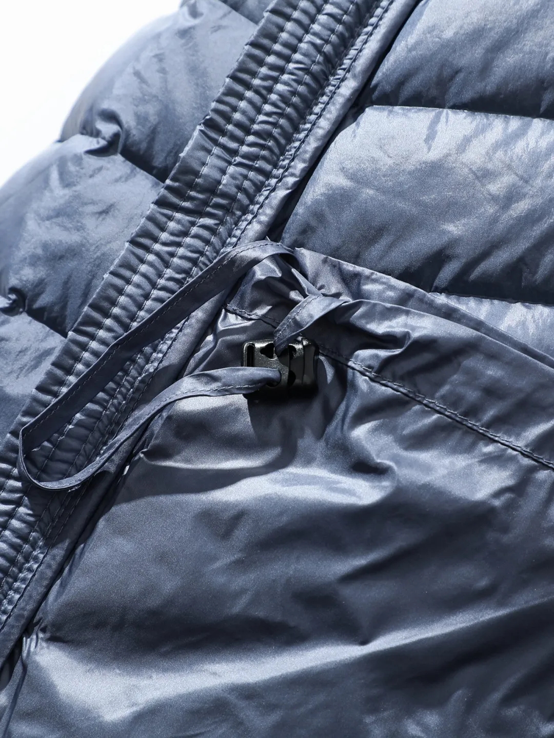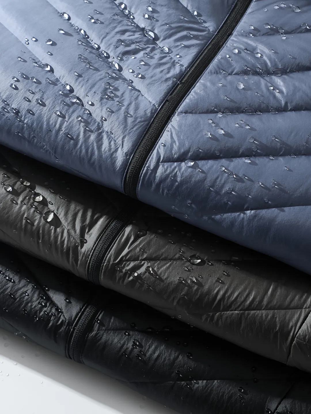 轻量琐温20D尼龙双层色织直充绒工艺彩钻轻型连帽排骨款户外运动休闲连帽羽绒服!20D高密度尼龙面料双层色织技术赋予其独特的光泽与质感,不仅耐磨与抗撕裂性能卓 越,还通过防水技术处理,轻松应对雨雪天气!高密度防跑绒面料,表面平整细腻,泼水与防风性能,有效抵御寒风侵袭。彩钻元素的融入,为简约设计增添一抹亮色,彰显个性风采!直充绒工艺则确保90%高含绒量的白鸭绒均匀分布,形成高效保暖层,配合排骨绗缝设计,既锁住温暖又避免臃肿,实现轻量化与保暖性的平衡!直充绒技术将羽绒直接注入独立立室,形成均匀空气层,锁温效率较传统缝制提升30%,配合糕蓬松白鸭绒填充,实现轻量化与保暖性的丸美平衡!连帽设计融入人体工学剪裁,贴合颈部曲线,搭配可调节抽绳,细节设计方面,门襟与口袋选用优质YKK拉链,品质卓 越,开合顺畅,耐用性极 佳!下摆与袖口采用高弹针织螺纹设计,多次穿着拉伸仍保持狠好的回弹率,紧密贴合身体曲线,有效阻挡冷风侵入,同时提升穿着舒适度与活动自由度!值得一提的是,该羽绒服支持快速收纳,通过隐藏式压缩袋实现,折叠后体积小巧,可轻松放入随身背包,满足场景的便携需求,细节之处彰显匠心!
