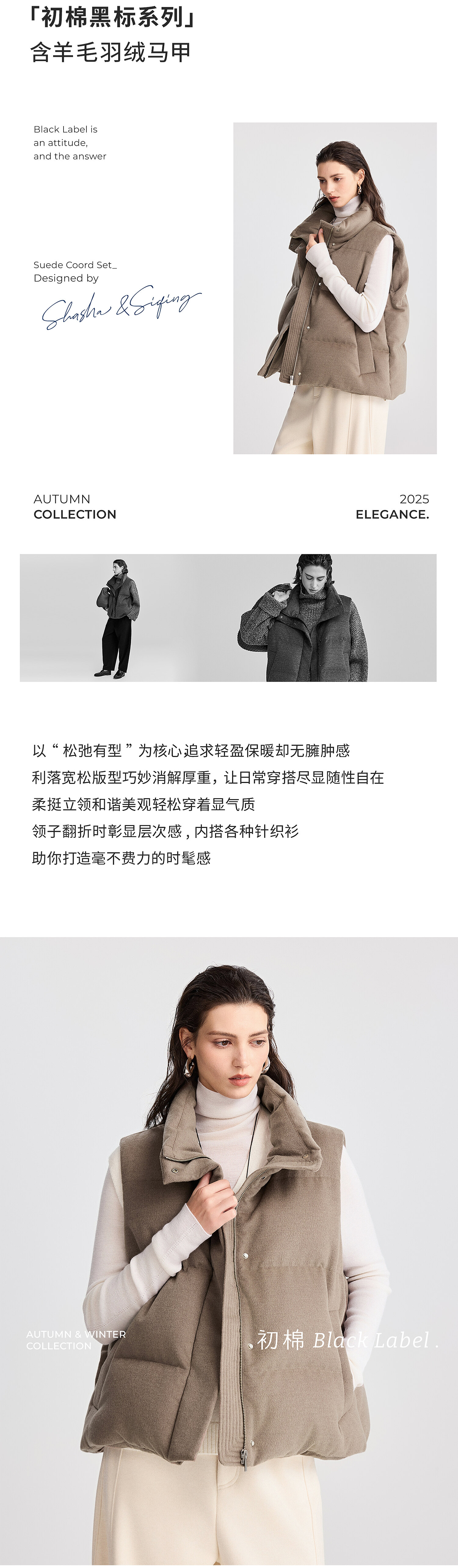 棉仓367699001-【黑标】含羊毛羽绒马甲女25秋冬松弛感无袖90白鹅绒叠穿坎肩