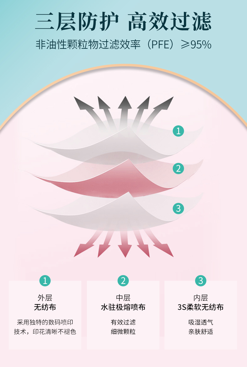 纳通个性印花平面口罩 【韵律山丘】 宽耳带 独立包装 10只/盒 各色2只