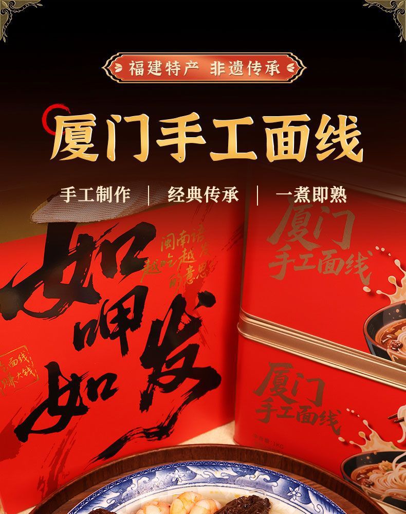 【福建特产❗️非遗工艺🔥纯手工线面礼盒装】传统工艺制作,好面不糊汤「口感顺滑」绵密好吸收,营养早餐伴手礼龙须长寿面,马年新年送礼好物年货礼盒L
