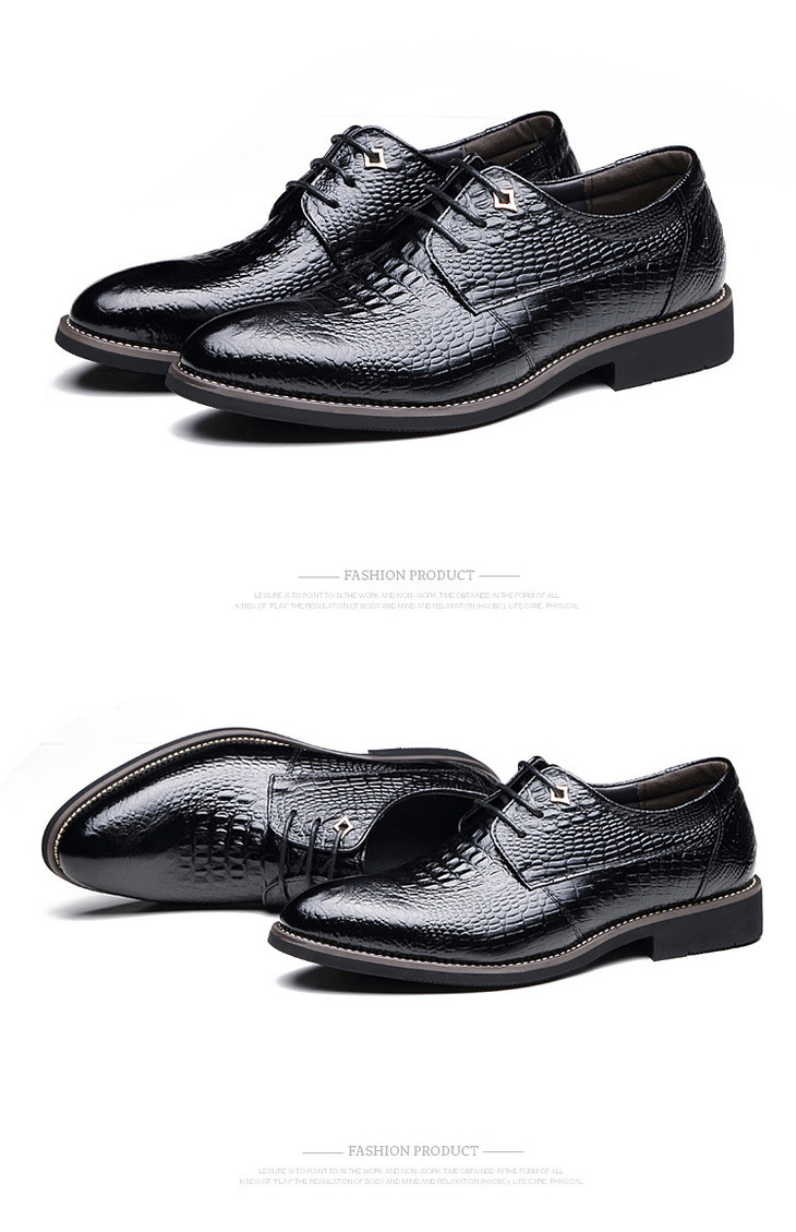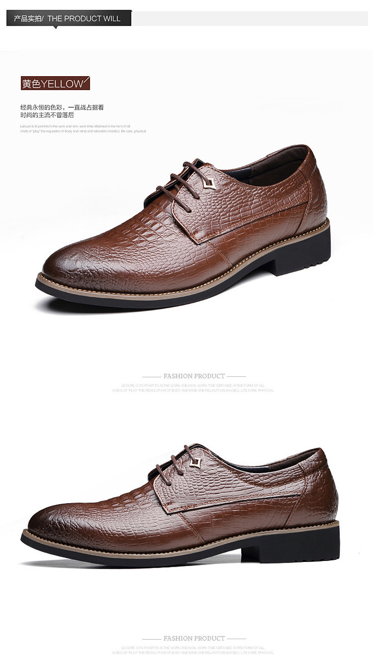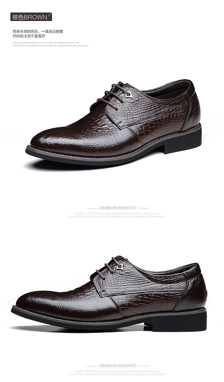 【服饰鞋包】浪克男鞋春秋鳄鱼纹头层牛皮商务正装皮鞋男尖头 英伦鞋子