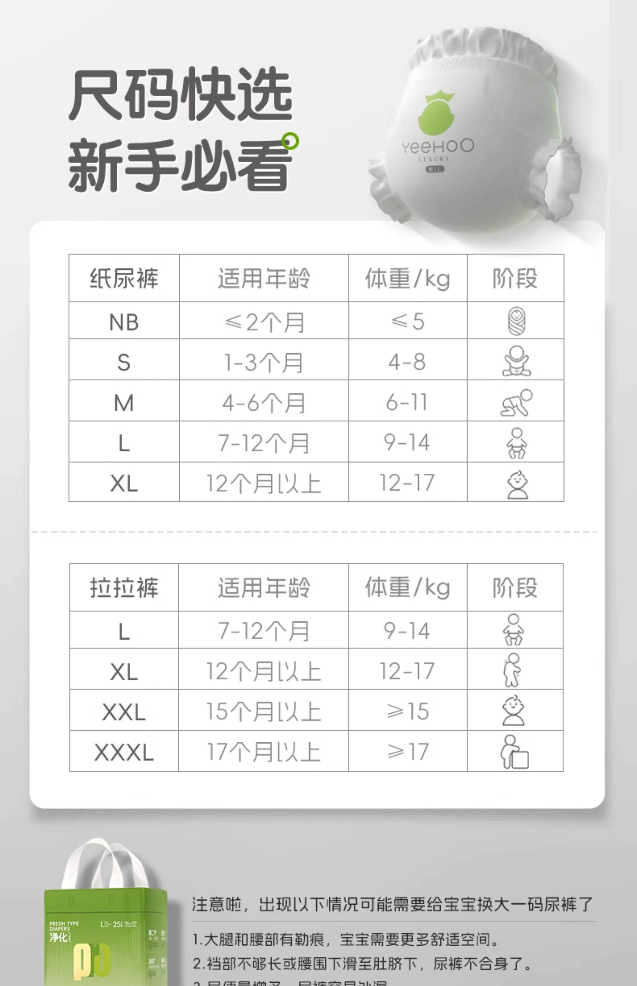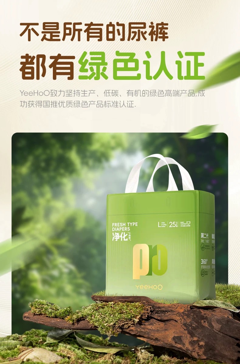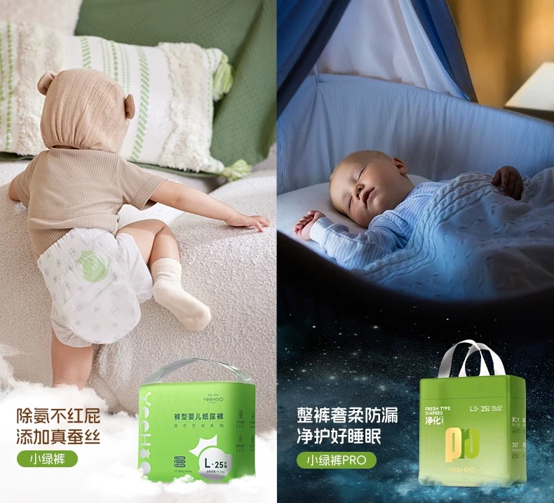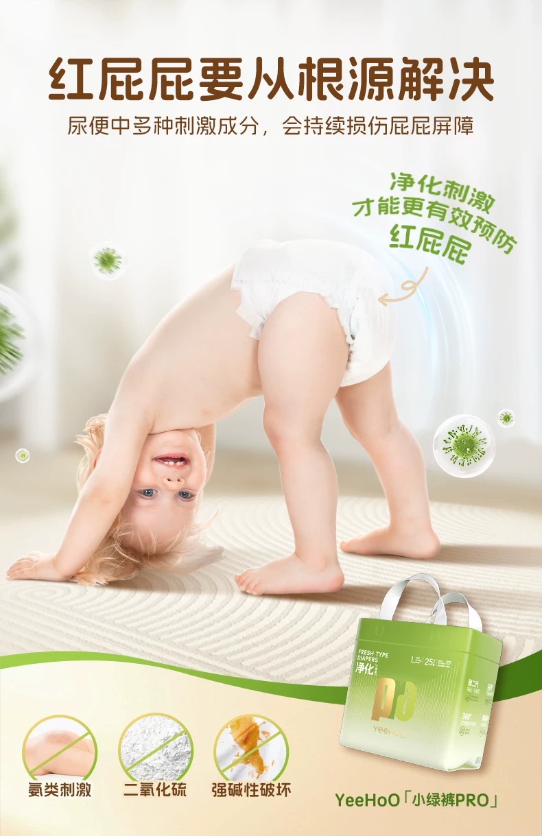 【云粉节】9楼英氏YeeHoO 英氏小绿裤纸尿裤亲肤柔软尿不湿透气防漏拉拉裤3片装(试用装)吊牌价15 活动价10