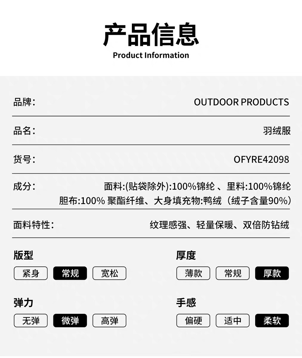 【云粉节】【7折】6楼OUTDOOR户外休闲舒适时尚百搭 羽绒服 吊牌价1299元折后价909元