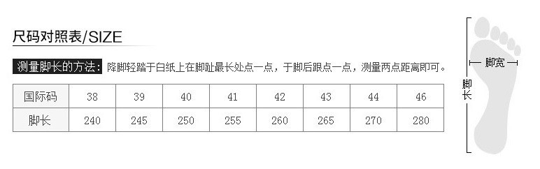 本款鞋尺码为标准皮鞋尺码,非运动鞋尺码,脚宽脚肥请拍大一码。