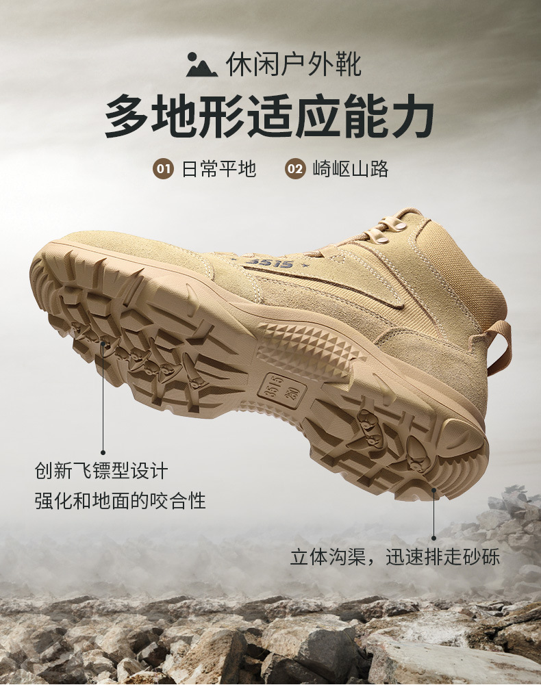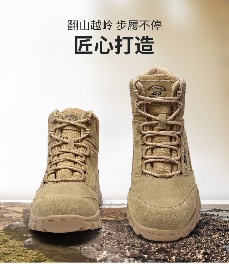 【3515沙色赤烈系列户外训练靴】单款/羊毛款户外高帮训练短靴3515