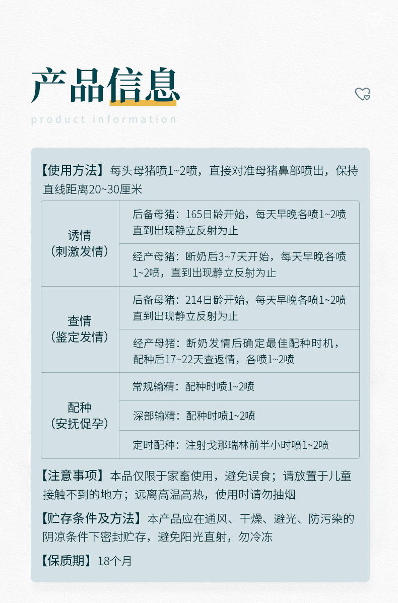 公猪诱情气味剂 100ml/瓶 促进发情 增加受孕