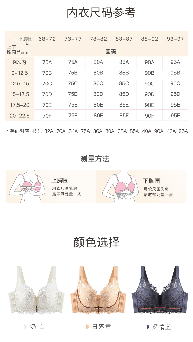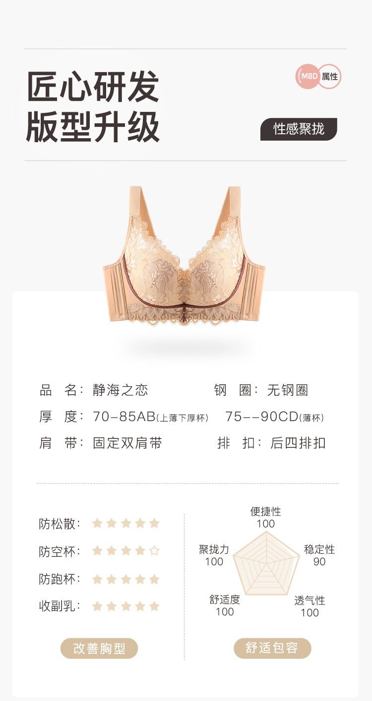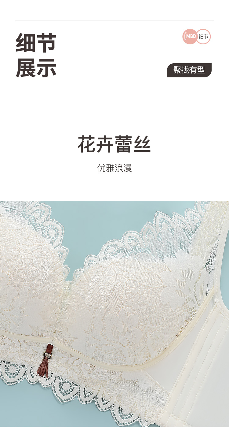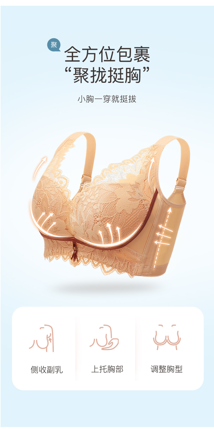 聚拢有型性感蕾丝内衣女上托聚拢有型收副乳减压美背文胸内衣静海之恋