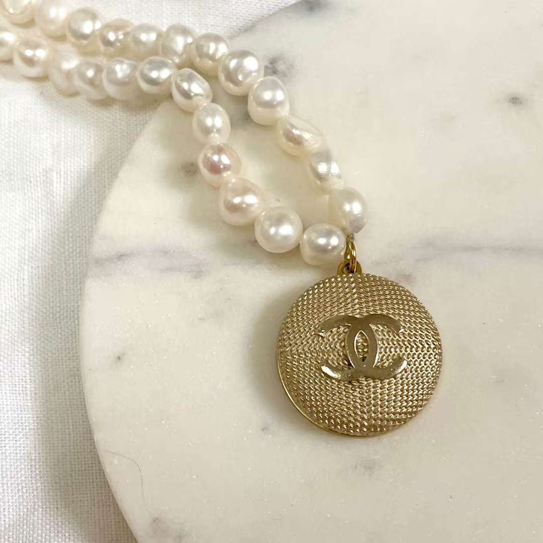 北京仓|Gigi Paris-金色双C Logo-Vintage纽扣 珍珠 项链[法国设计师]
