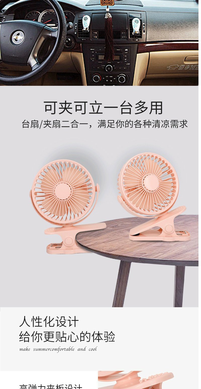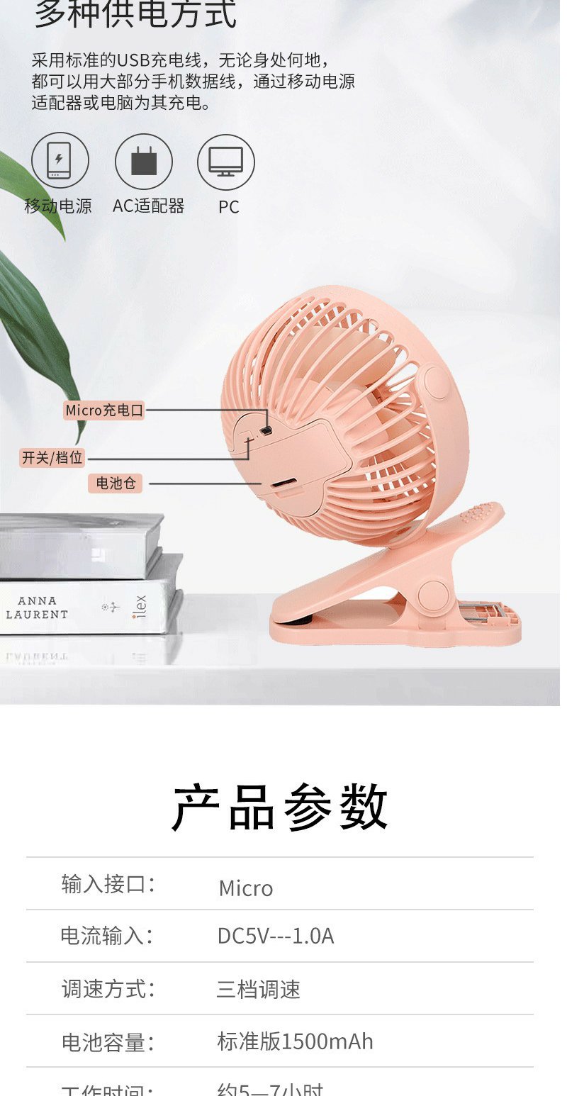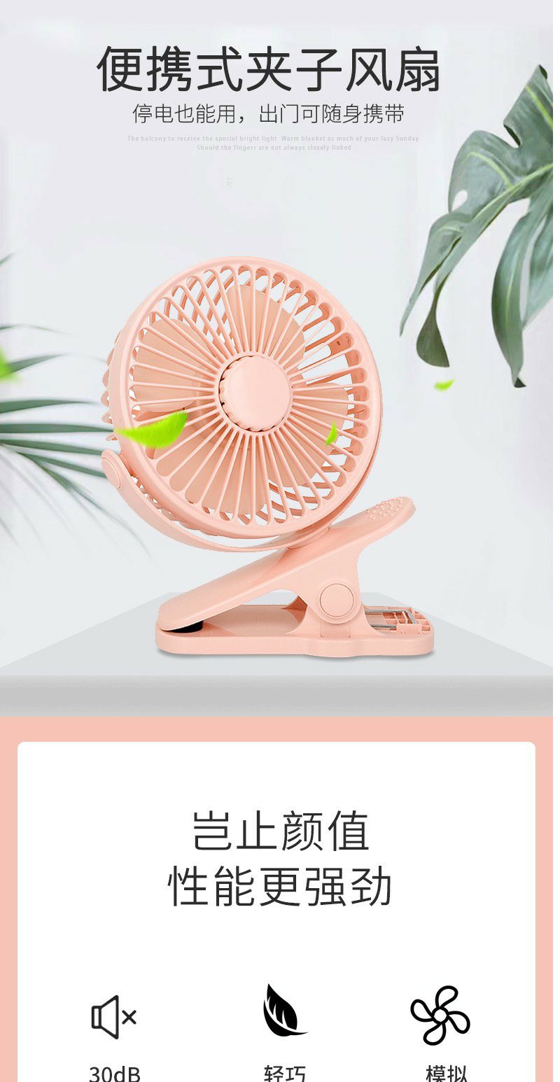 严选 4寸桌面夹子风扇 usb充电风扇迷你家用静音大风力学生台式小风扇1个
