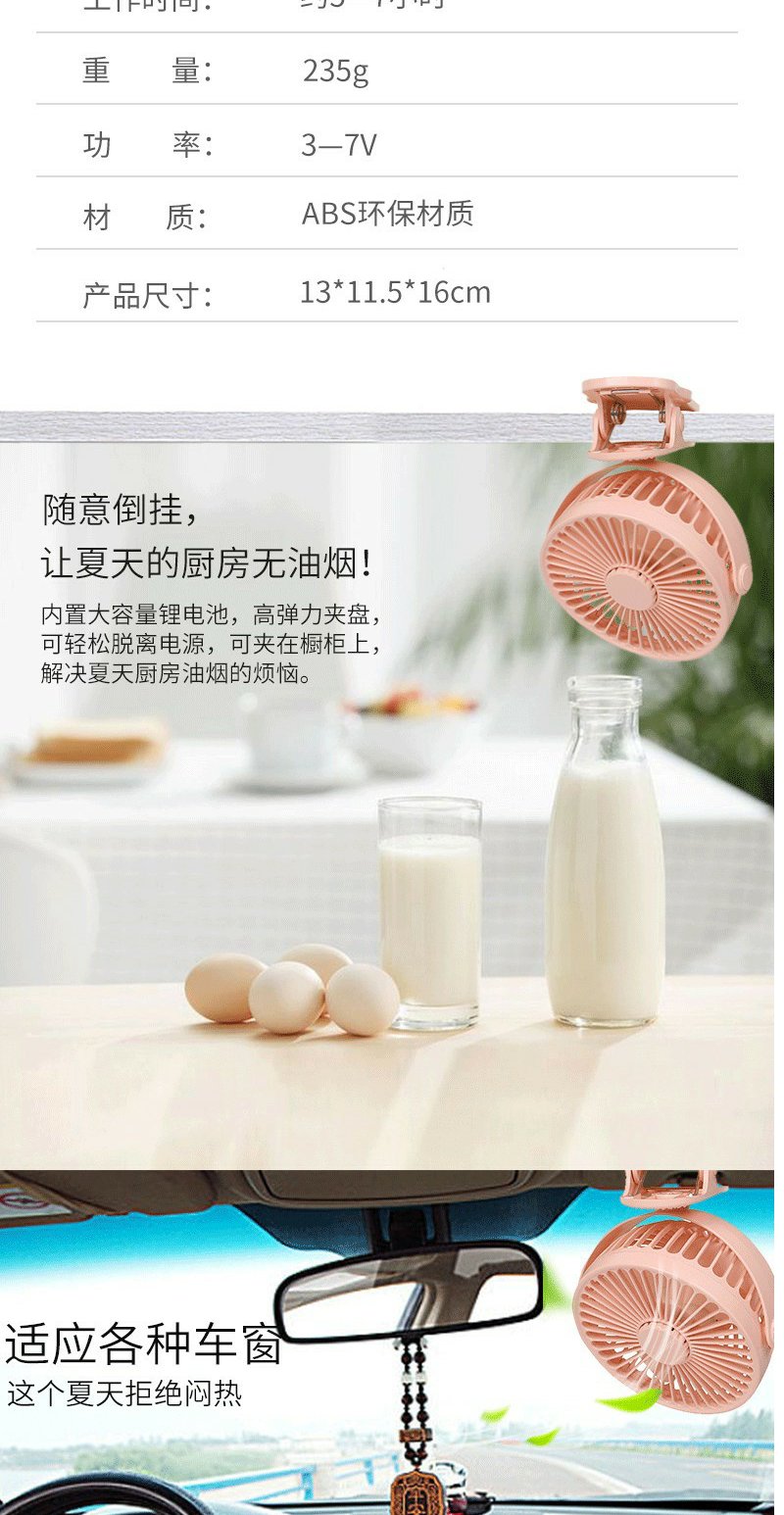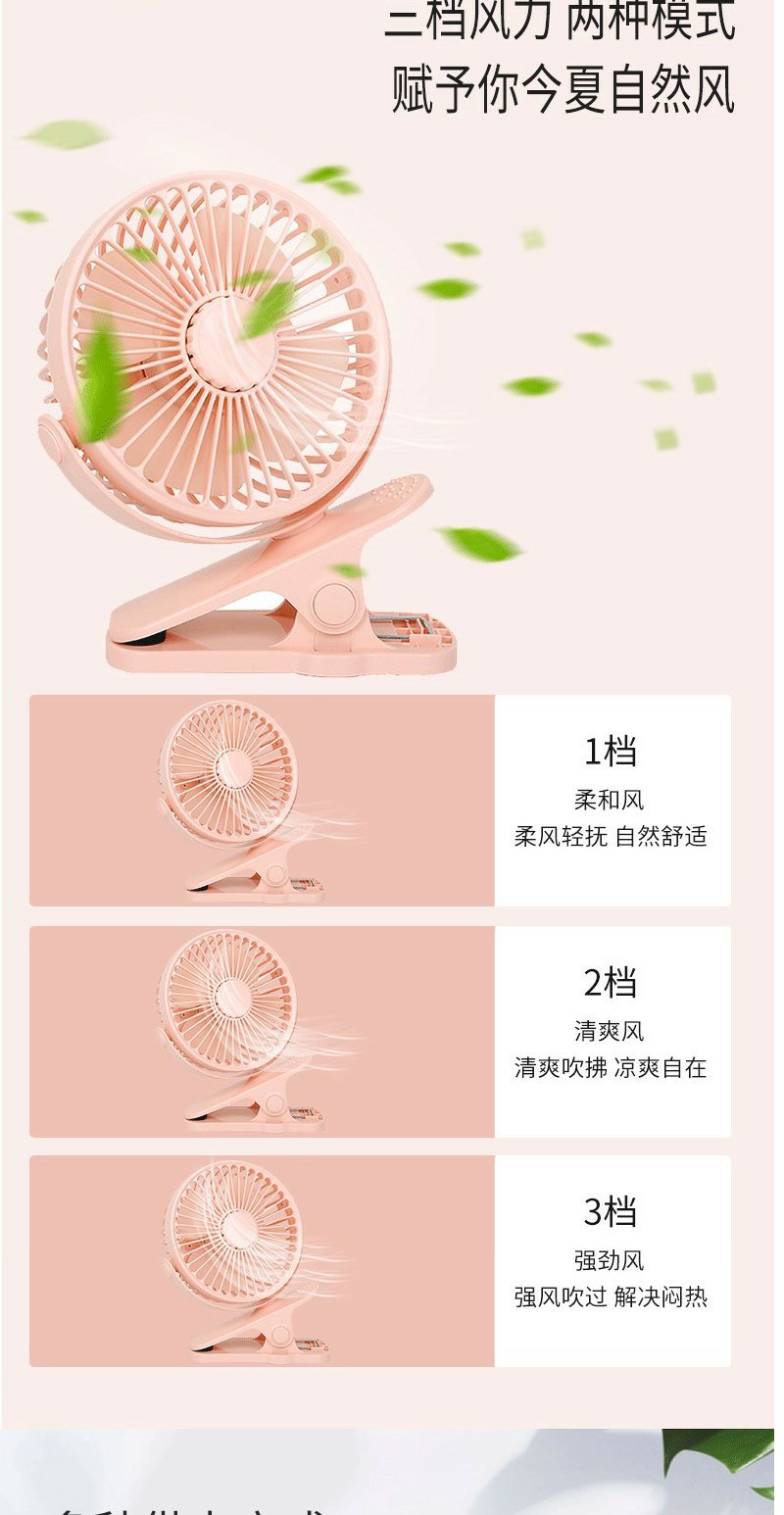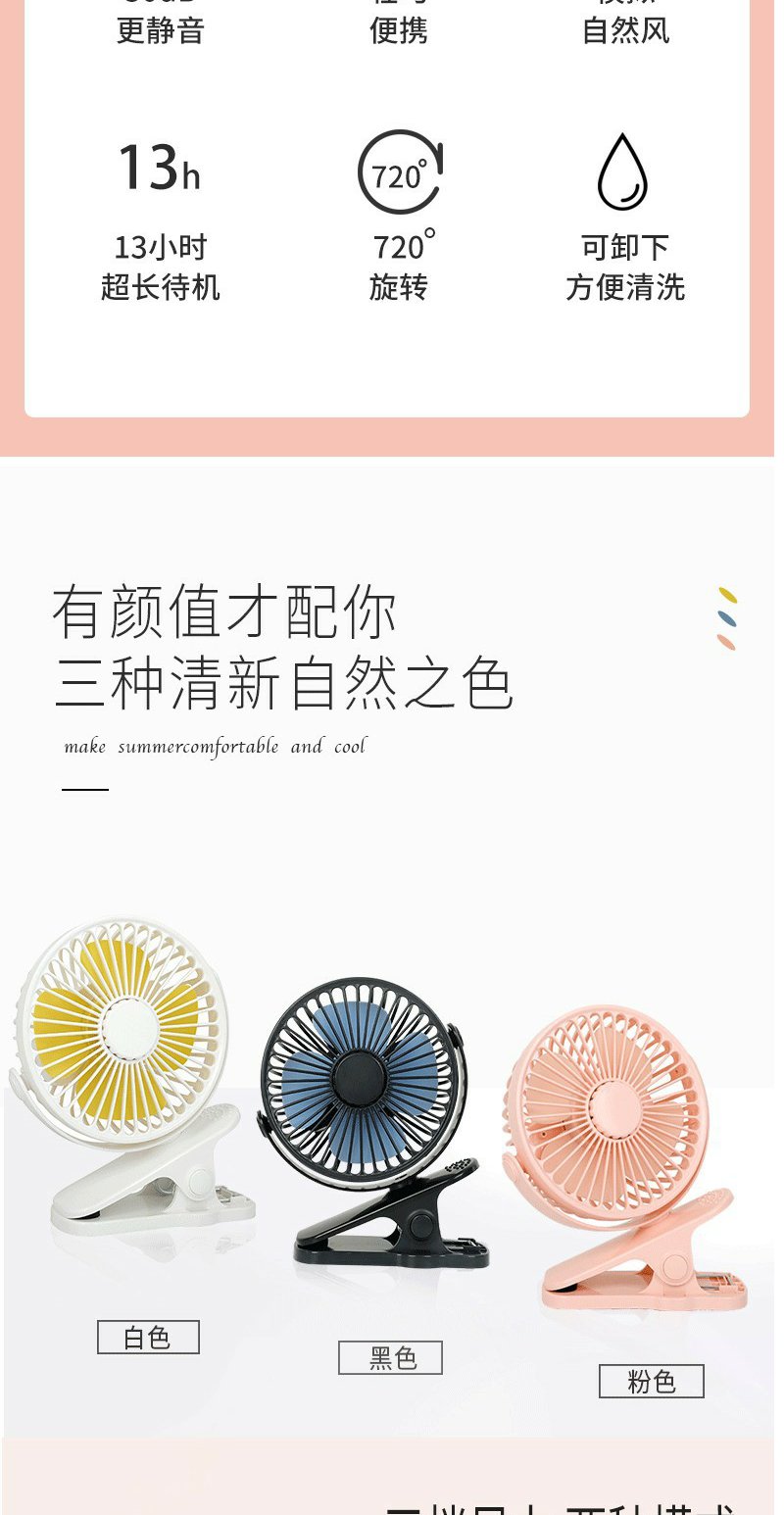 严选 4寸桌面夹子风扇 usb充电风扇迷你家用静音大风力学生台式小风扇1个