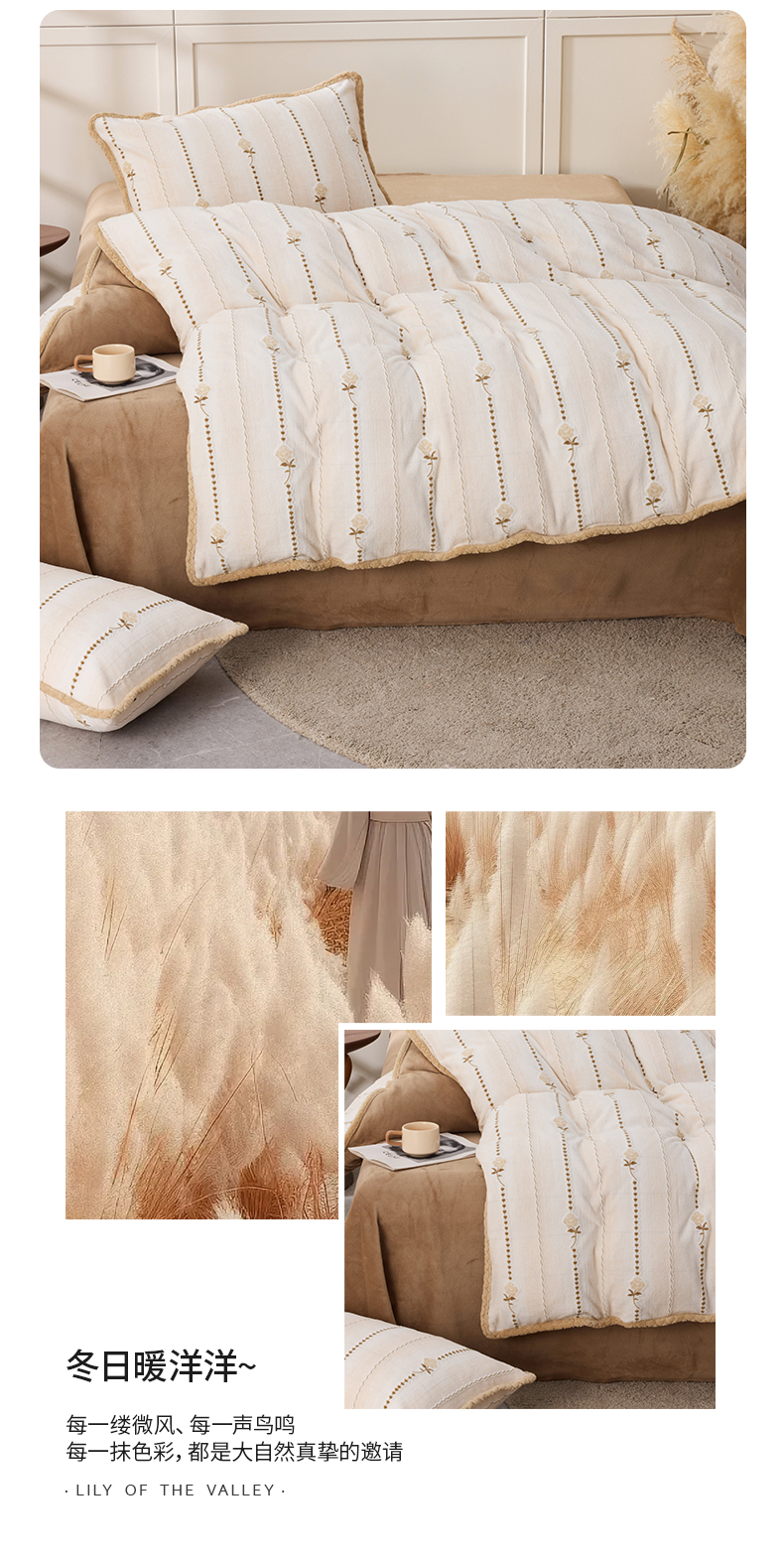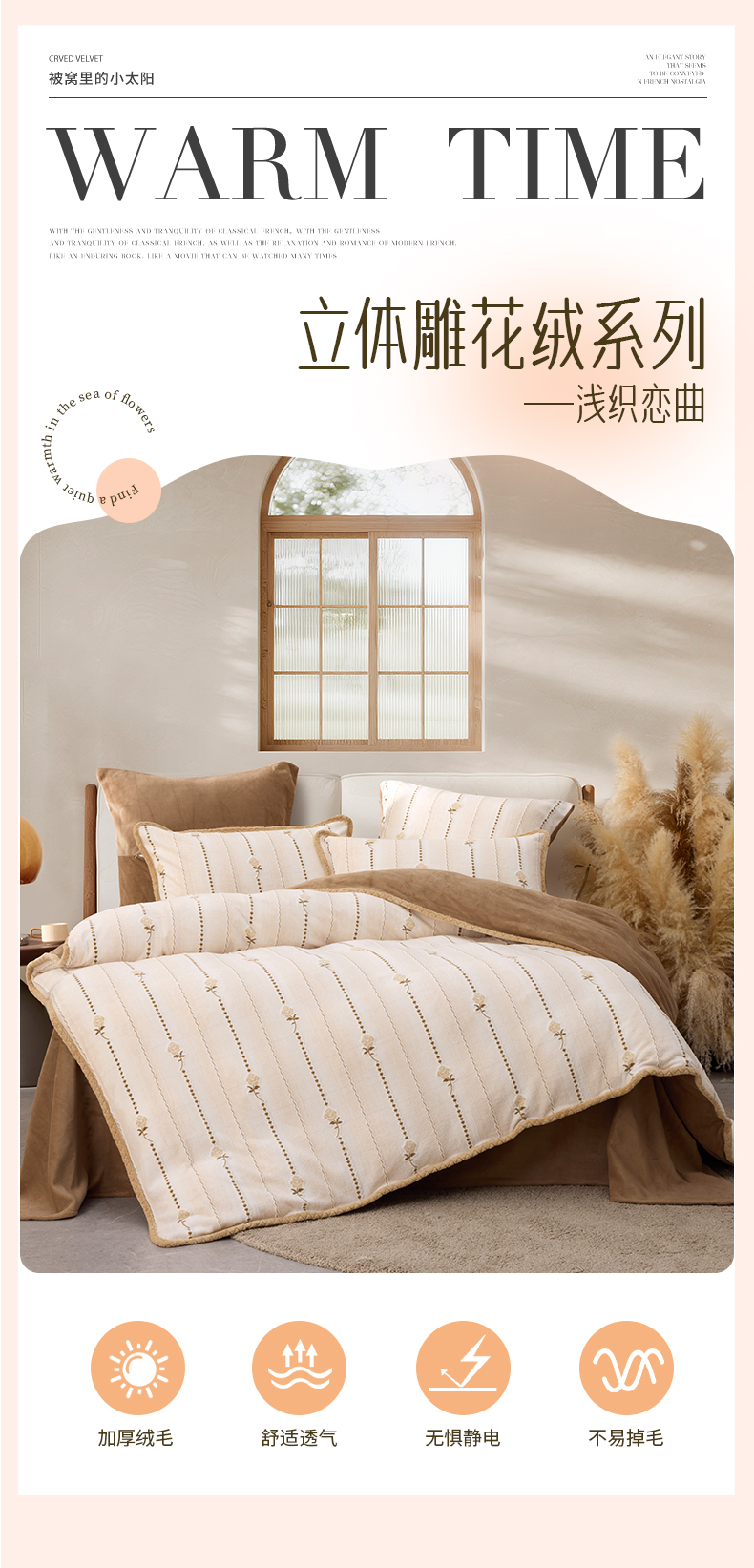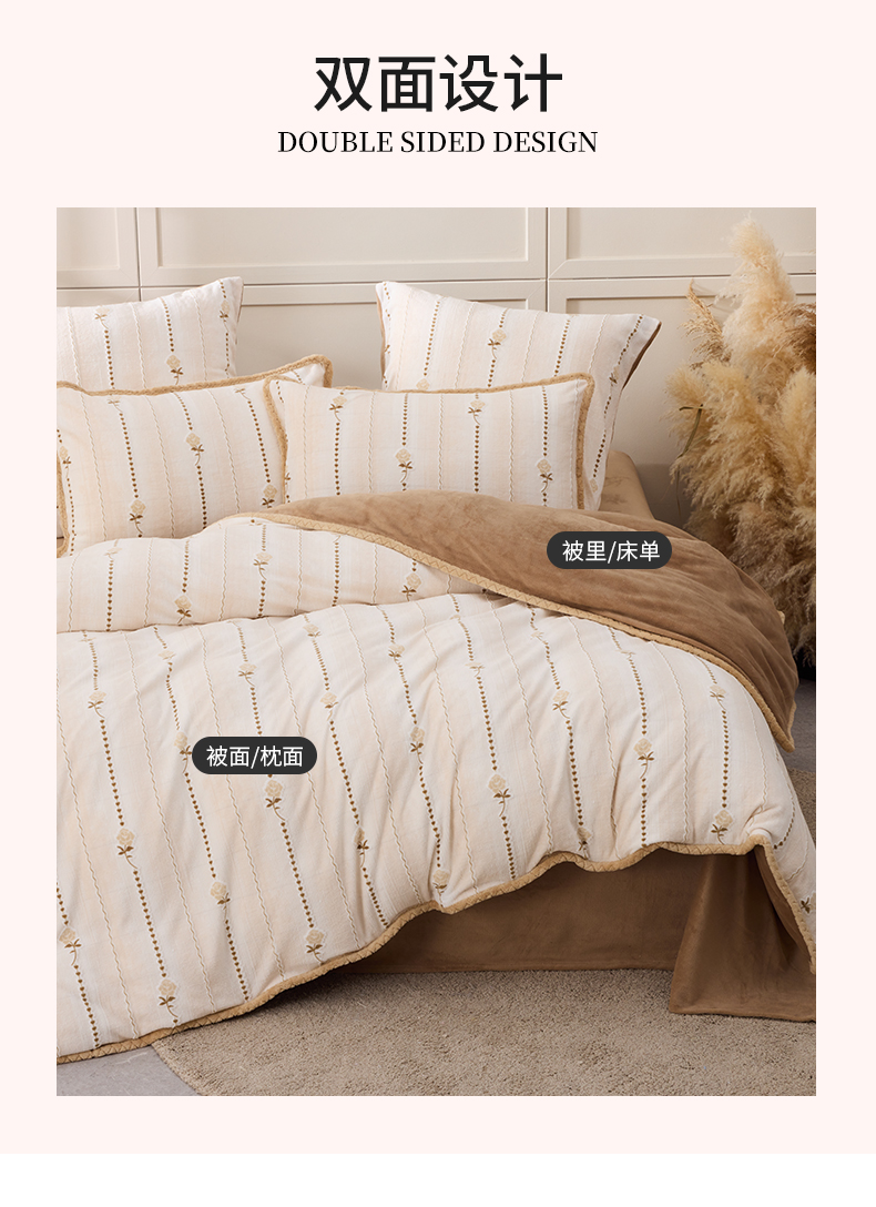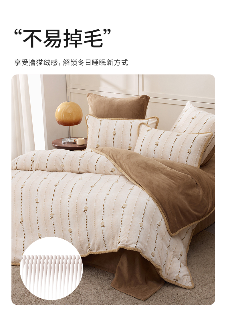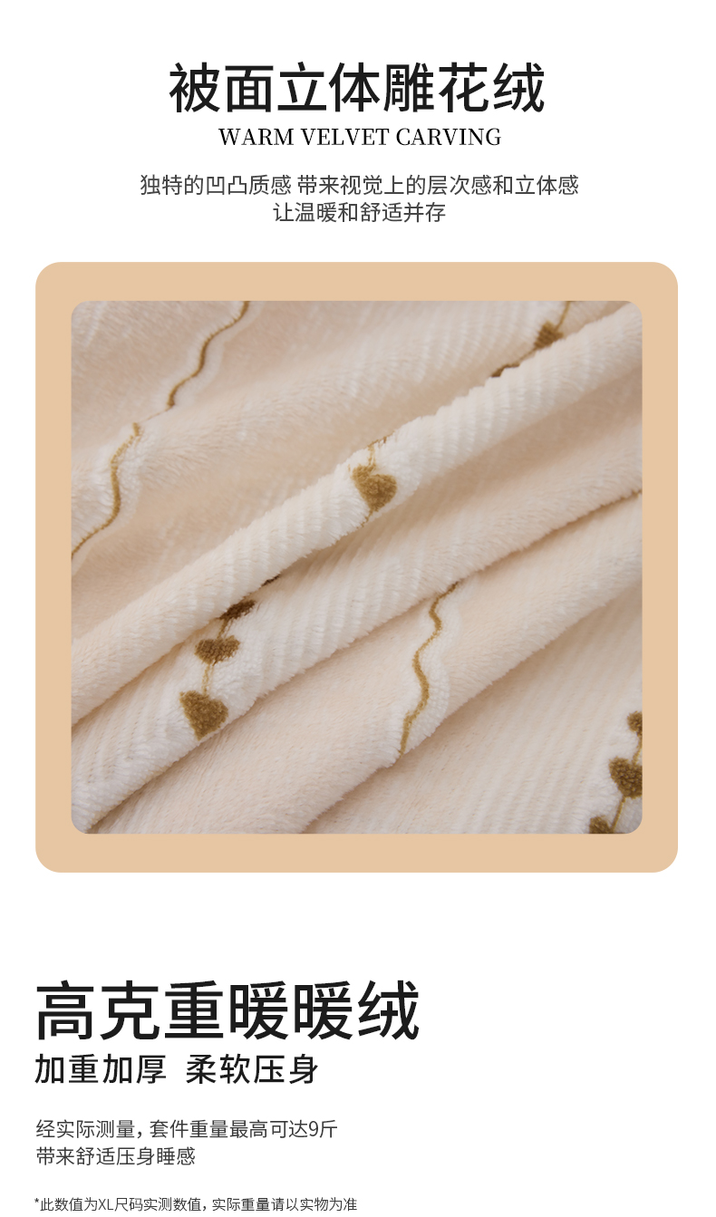 多喜爱 牛奶绒雕花工艺套件【不起球 不掉毛】【 A类高克重】【柔软舒适 抗静电】浅织恋曲