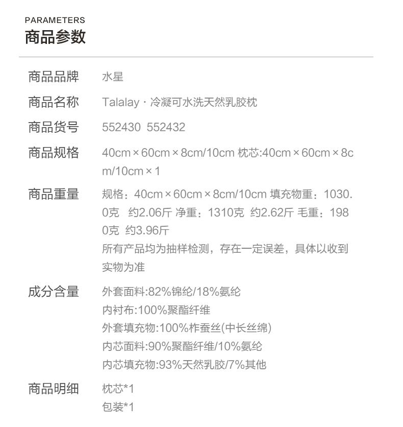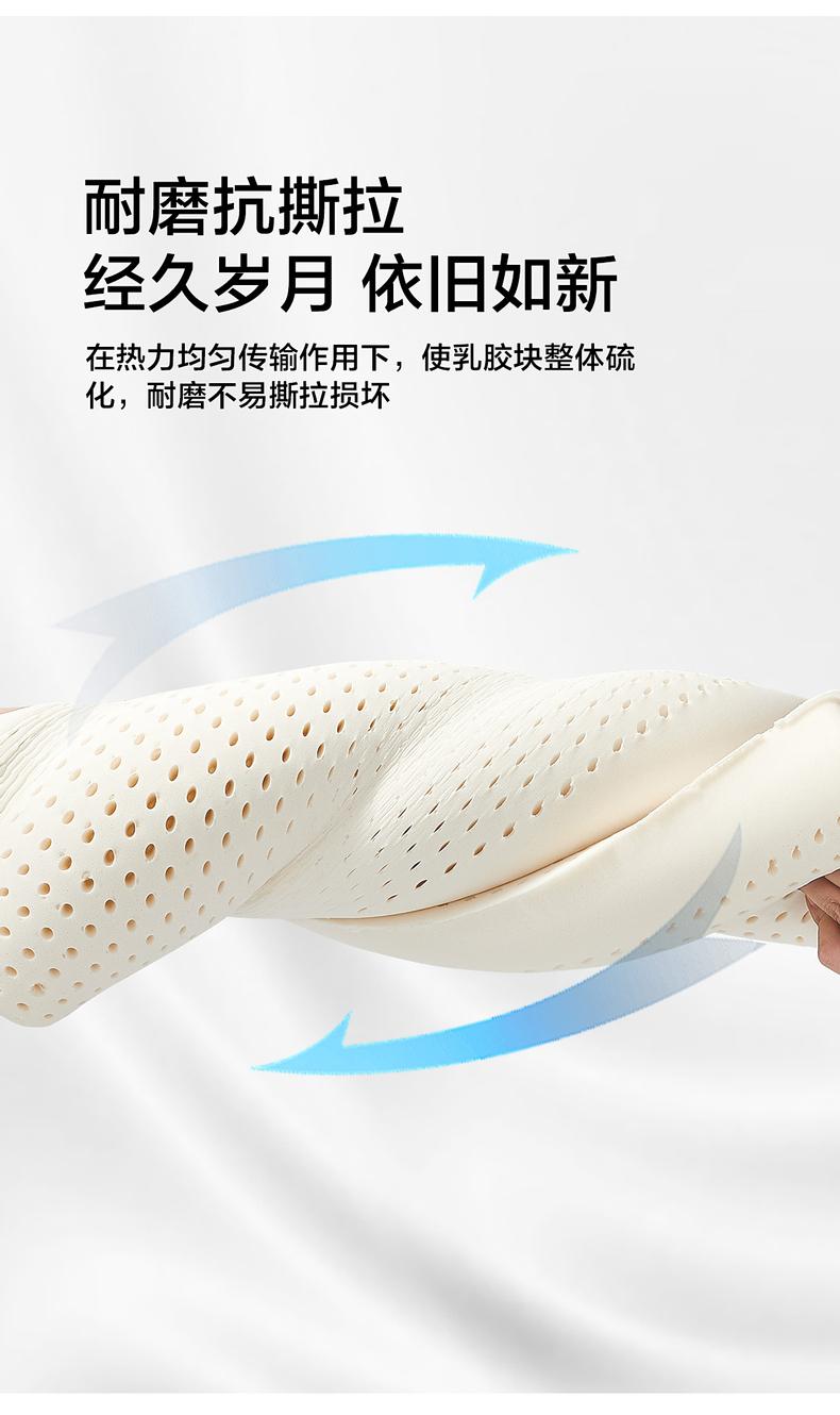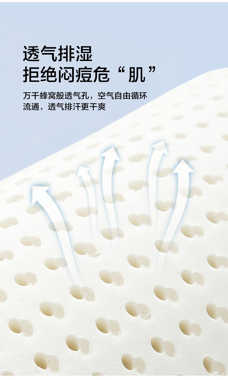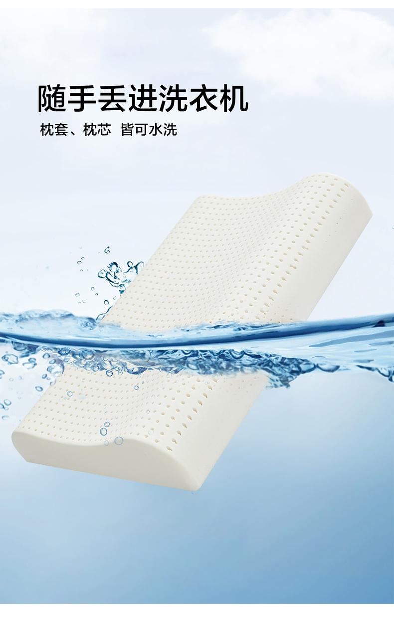 水星家纺可水洗天然乳胶枕93含量A类抑菌夏季凉感深睡乳胶枕芯选