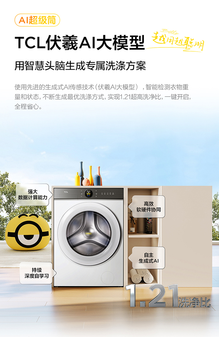 【新品上市】TCL小黄人·大眼萌AI超级筒T7R 10公斤DD直驱变频滚筒 G100T7R-DI