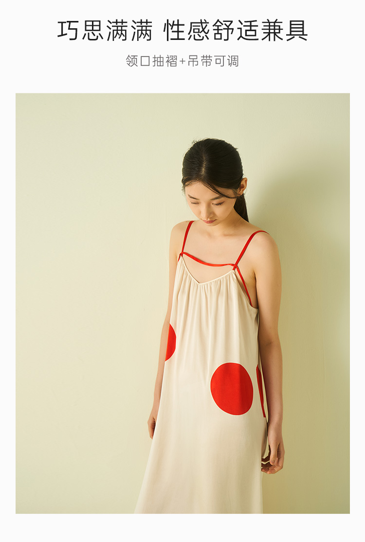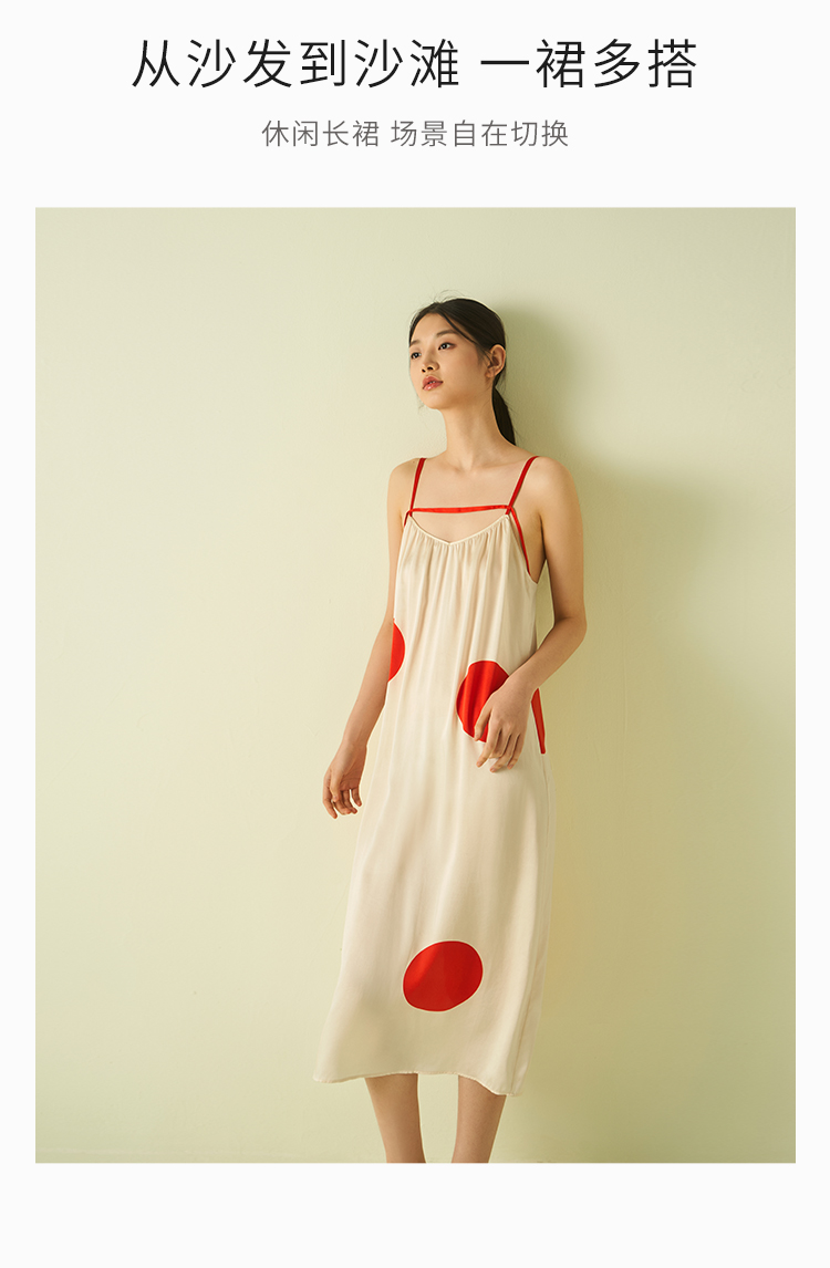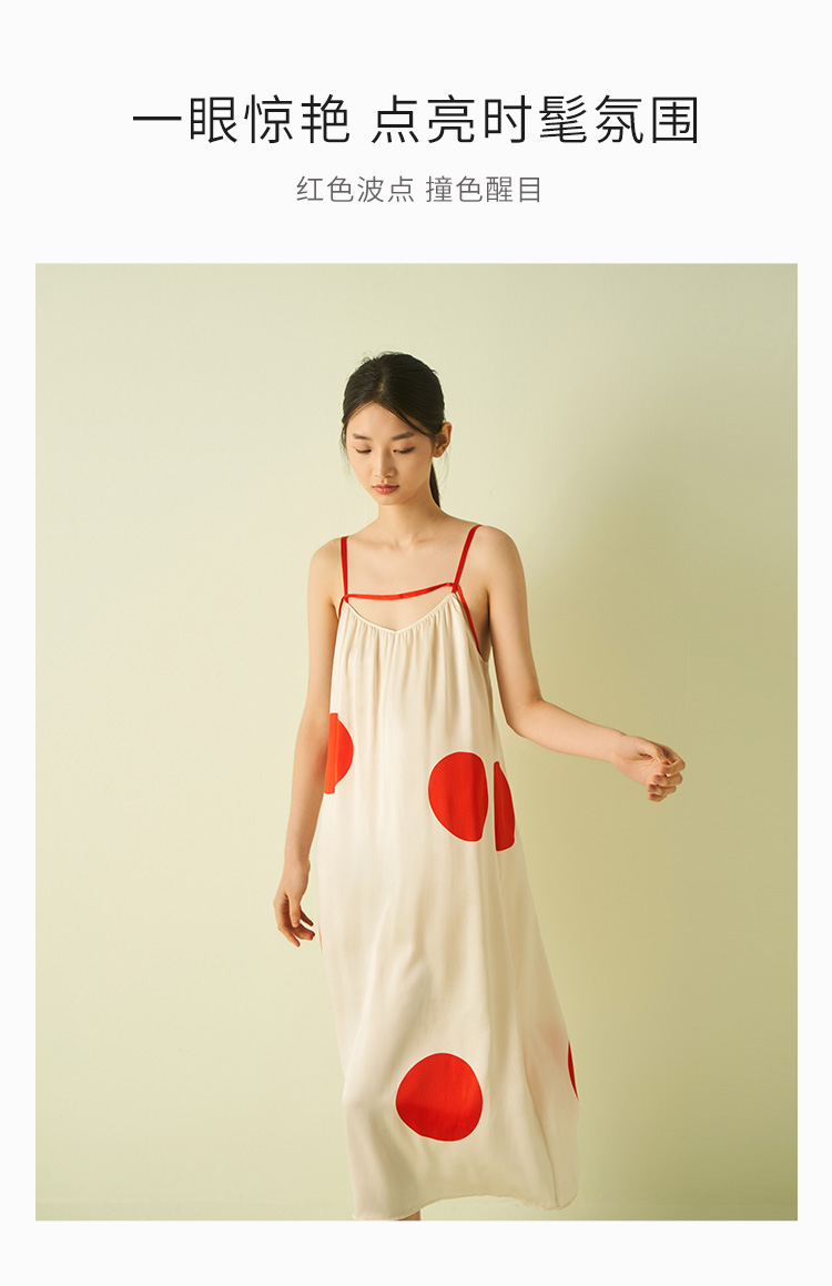 桑罗真丝悦动波点吊带裙多巴胺度假风宽松舒适可外穿