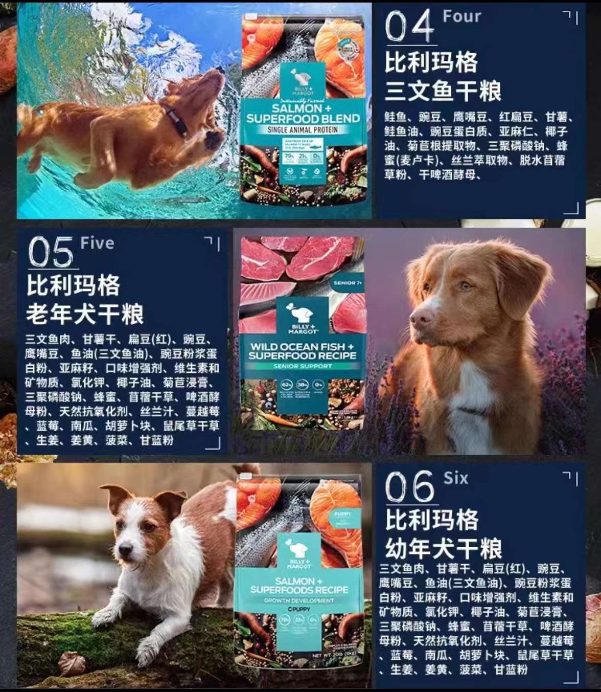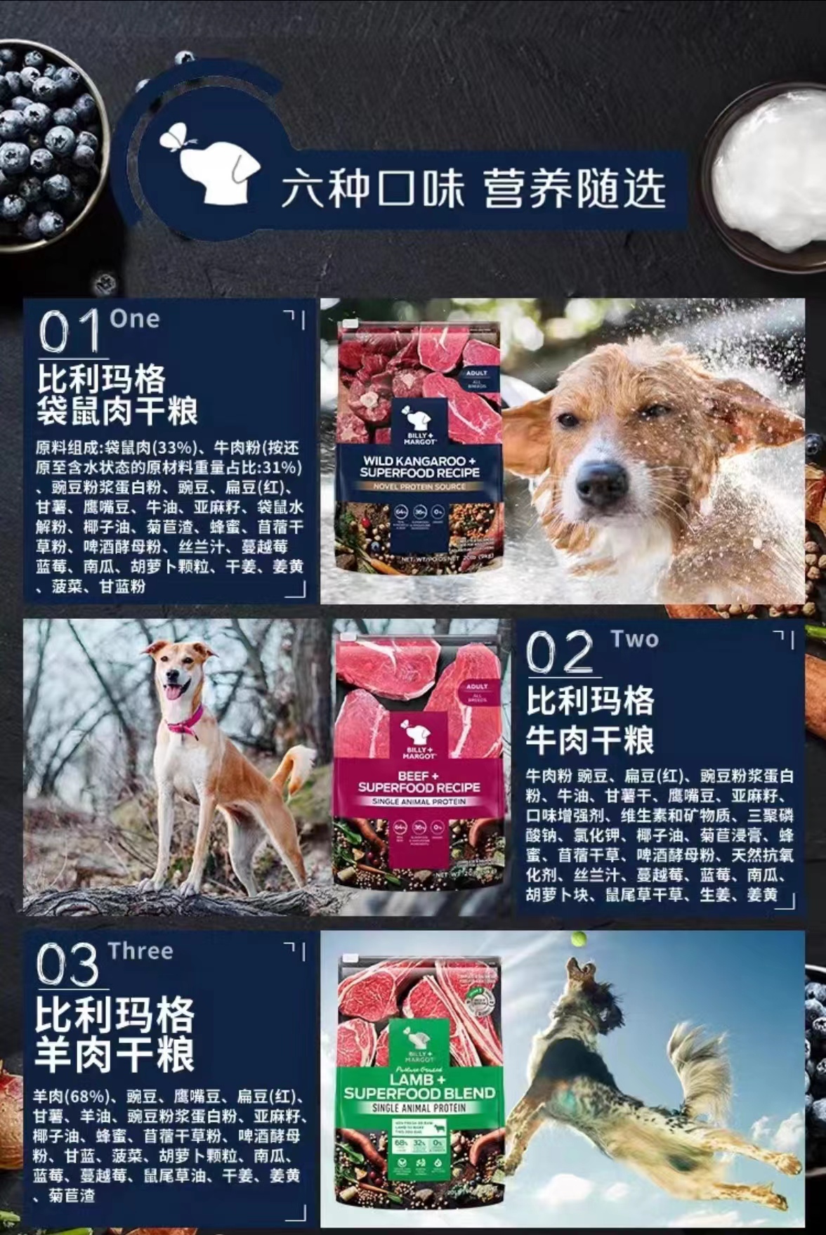 【狗粮】BillyMargo澳洲比利玛格天然无谷牛肉羊肉袋鼠肉三文鱼全价狗粮1.8kg/9kg