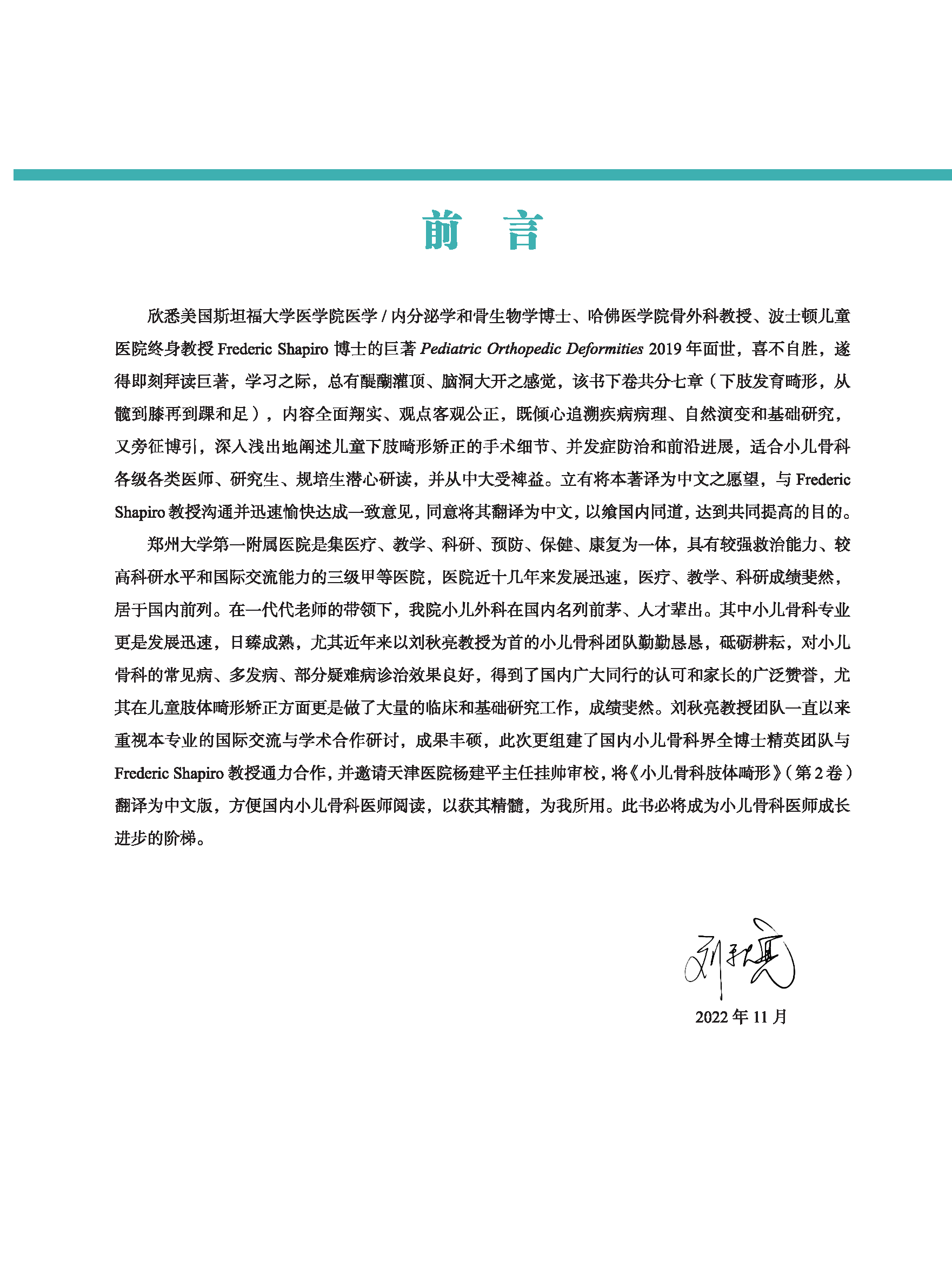 本书引进自国际知名的施普林格出版社,由美国斯坦福大学医学院医学/内分泌学和骨生物学博士、哈佛医学院骨外科教授、波士顿儿童医院终身教授弗雷德里克·夏皮罗精心编著。全书共分7章,内容全面翔实,观点客观公正,既倾心追溯疾病病理、自然演变和基础研究,又旁征博引,深入浅出地阐述儿童下肢畸形矫正的手术细节、并发症防治和前沿进展。适合小儿骨科各级各类医师、研下肢畸形矫正手术的首选资料之一究生、规培生潜心研读,是小儿骨科医师了解儿童下肢发育畸形知识、掌握儿童下肢畸形矫正手术的首选资料之一。