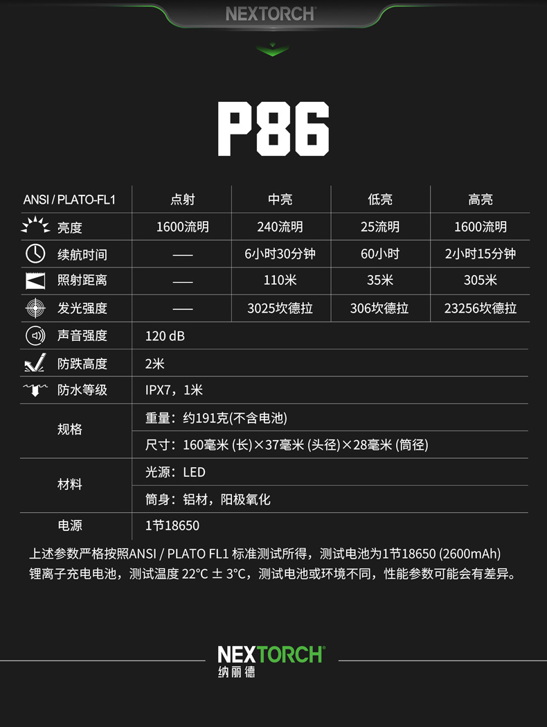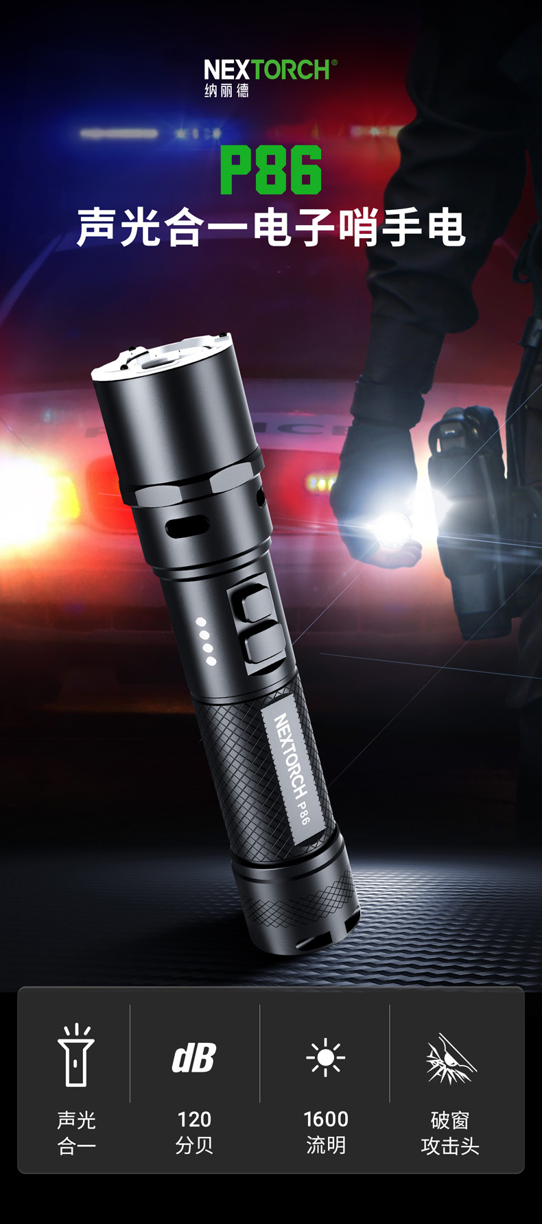 纳丽德(NEXTORCH) P86声光户外应急防水电子哨高亮手电筒勤务执法