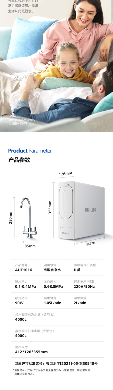 飞利浦(PHILIPS)全屋净水家用400G反渗透净水器大通量净水器AUT1016 AUT4017