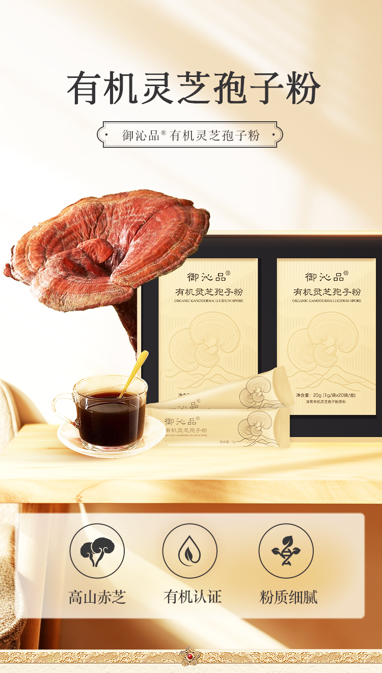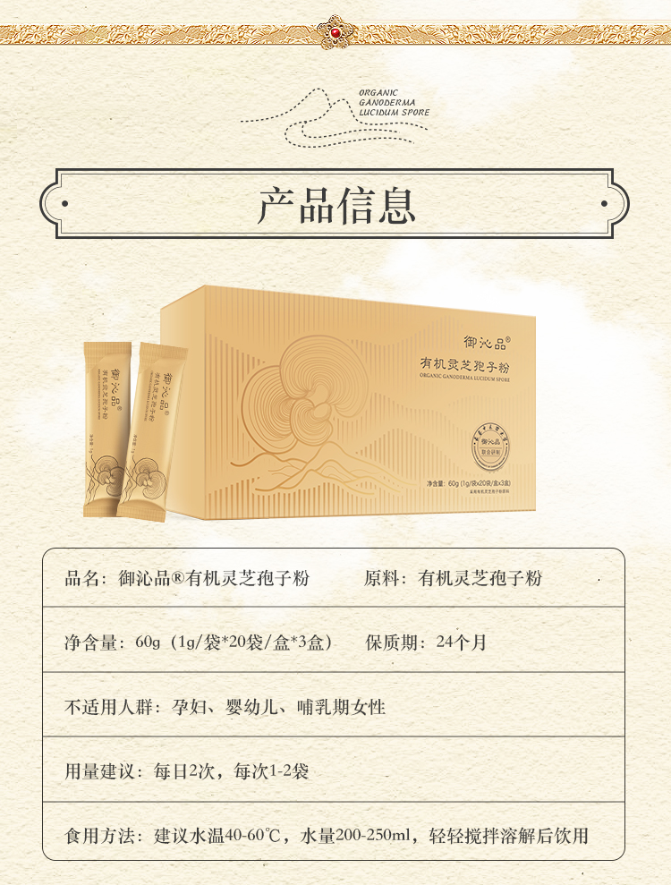 粉丝福利每人限购一盒:御沁品灵芝有机孢子粉营养滋补养身调节睡眠60g(1g*20袋/盒*3盒)