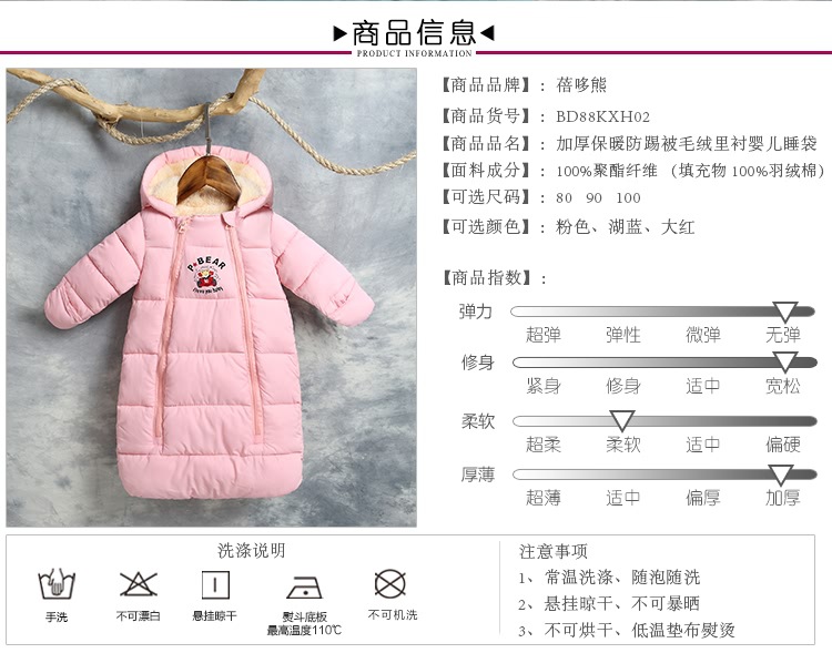 ins爆款童装蓓哆熊秋冬新款婴儿睡袋抱被儿童加厚睡袋防踢被棉服