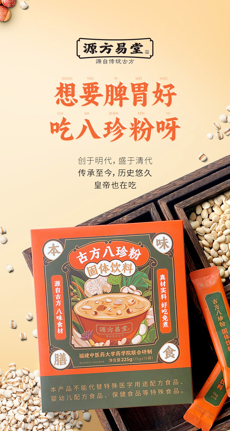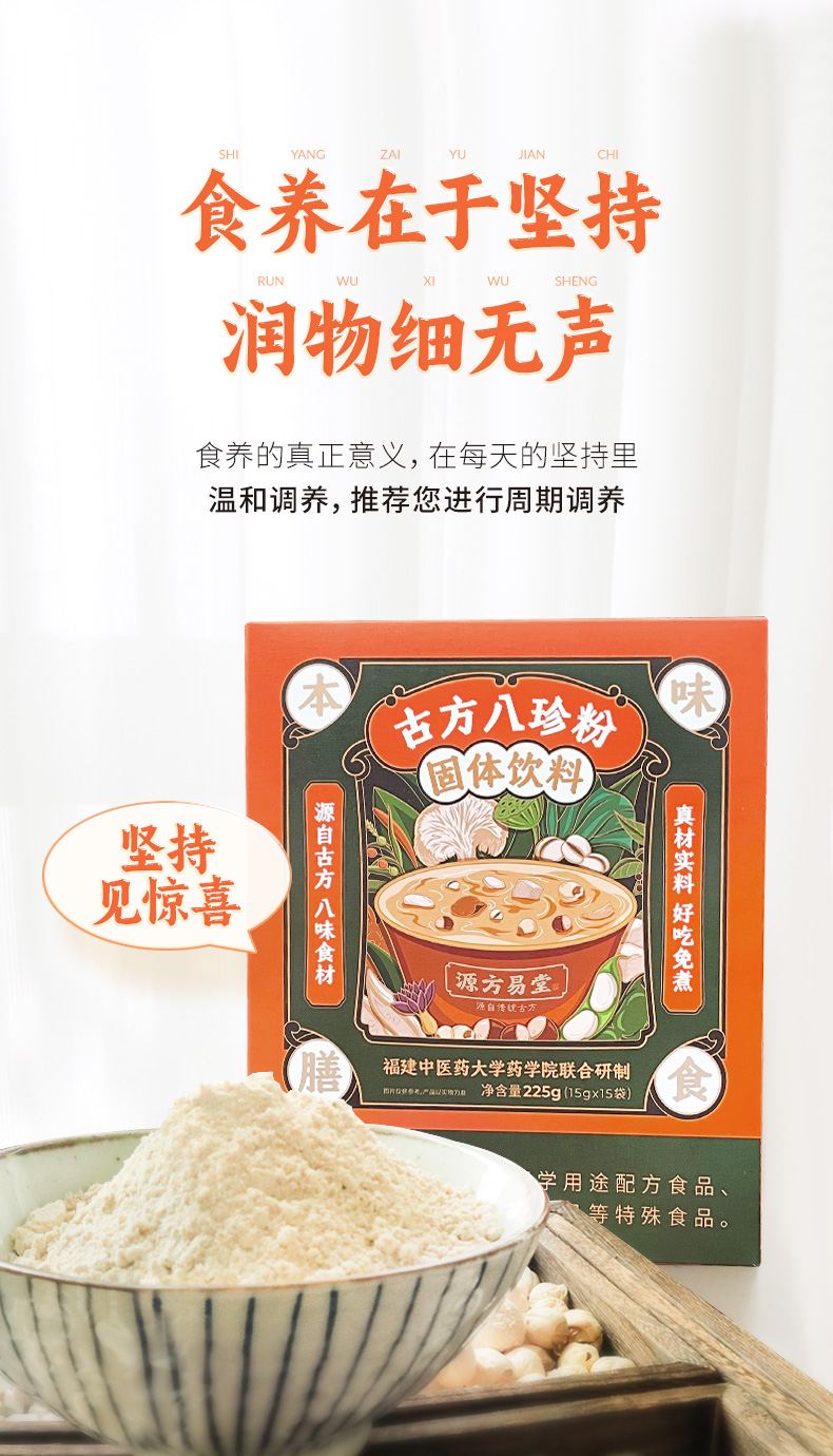 【古方八珍粉】福建省中医药大学药学院联合研制 源自传统古方 健脾胃 拒绝无效添加 道地原产 药食同源 三项专利加持好食效 更适合现代人体质