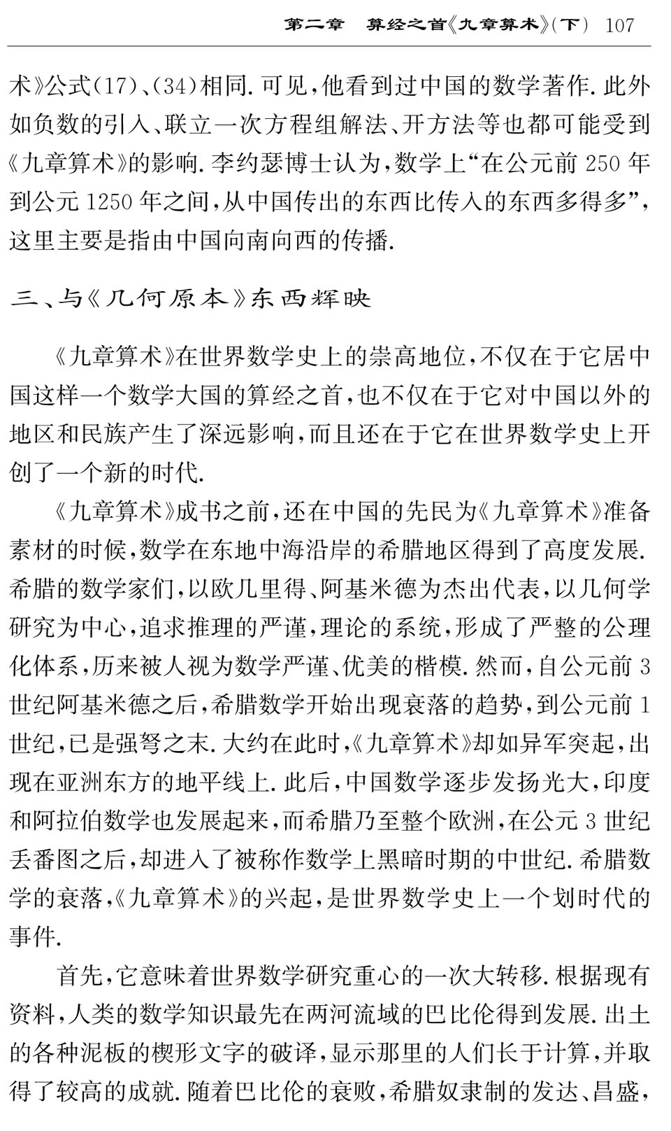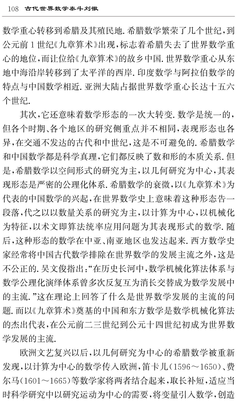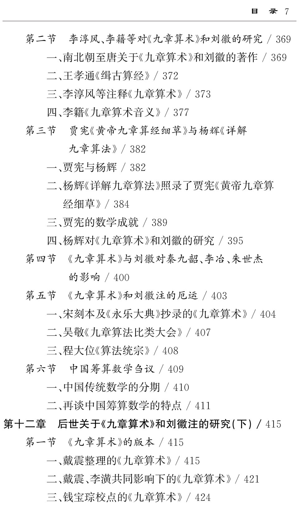 刘徽的《九章算术注》是中国古代最伟大的数学家为最重要的数学著作所作的注。本书全面评介《九章算术》和刘徽的数学成就,重在刘徽的数学思想、数学理论、逻辑思想,兼及中国古代数学的特色、《九章算术》的版本和校勘等问题。从中可以看出中国古代数学以数量关系的研究为主、以计算为中心的鲜明特点,这种思想和方法对当今的数学研究和数学教学有极大的启迪作用。