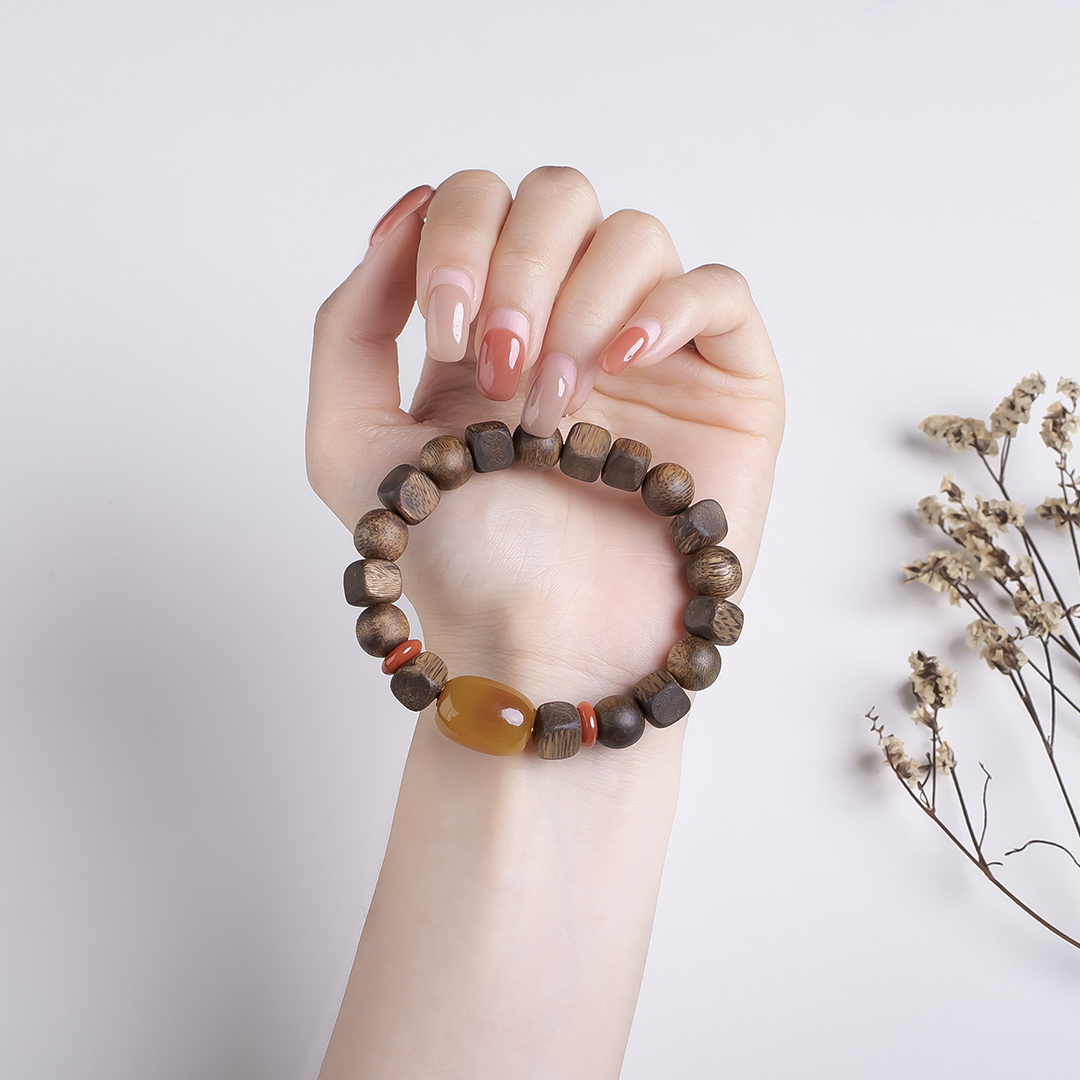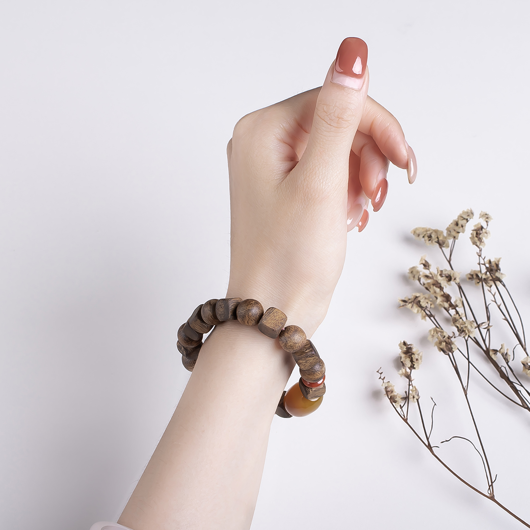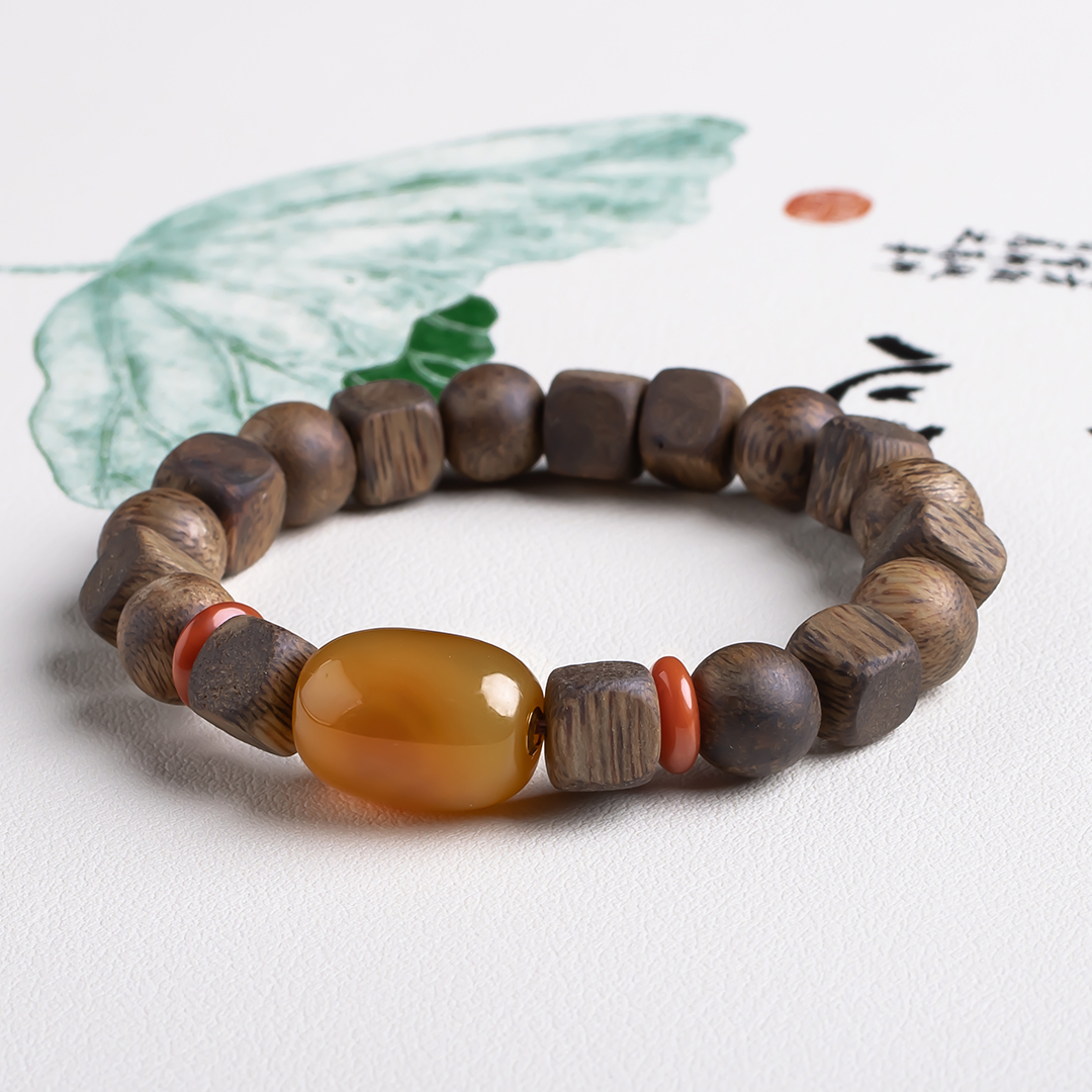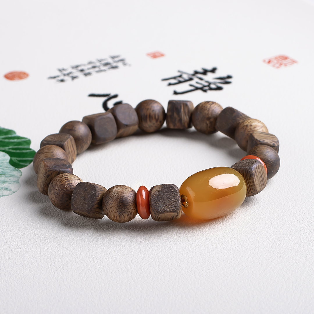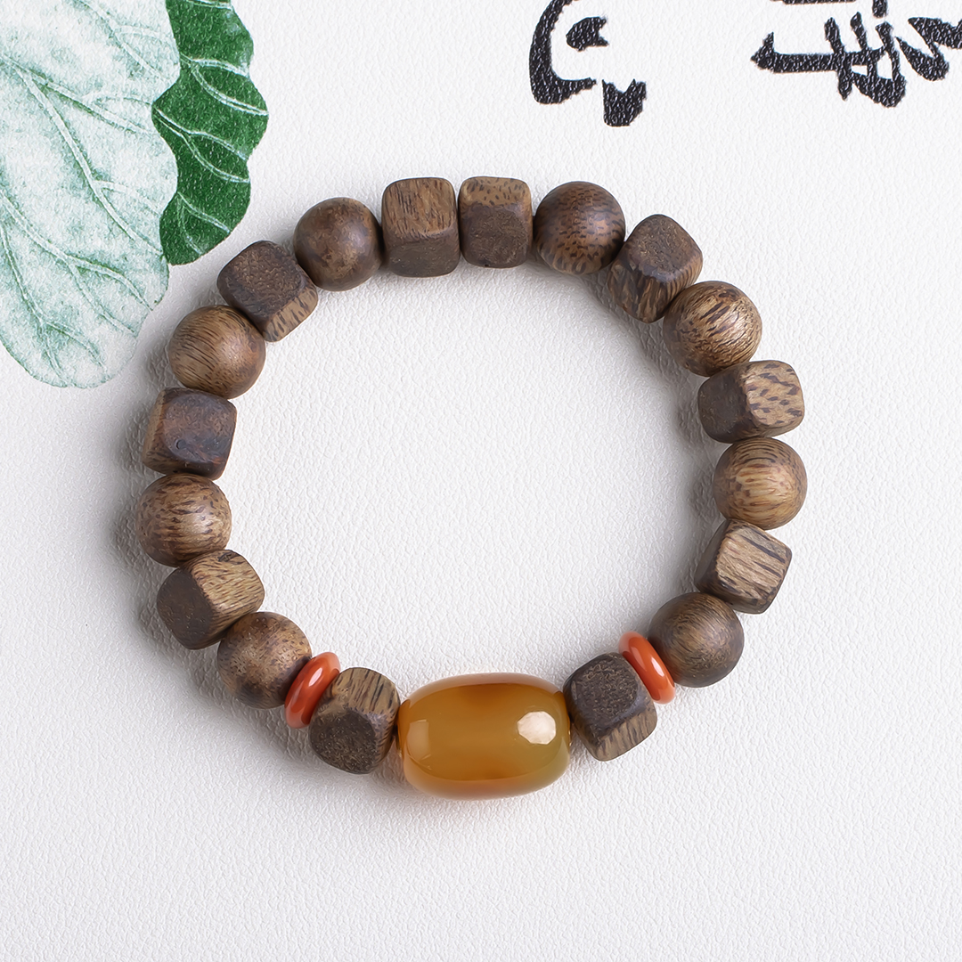 xy0457沉香+蜜蜡古色古香手串,天然沉香约10.3mm,原色原味,香味自然清甜,方形珠与圆珠的结合,刚柔相济,老蜜蜡与沉香搭配,古色古香,古典优雅。