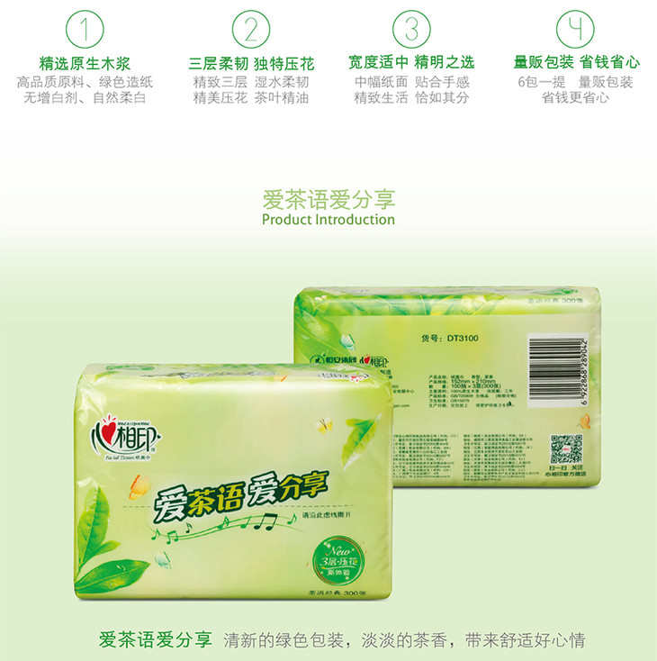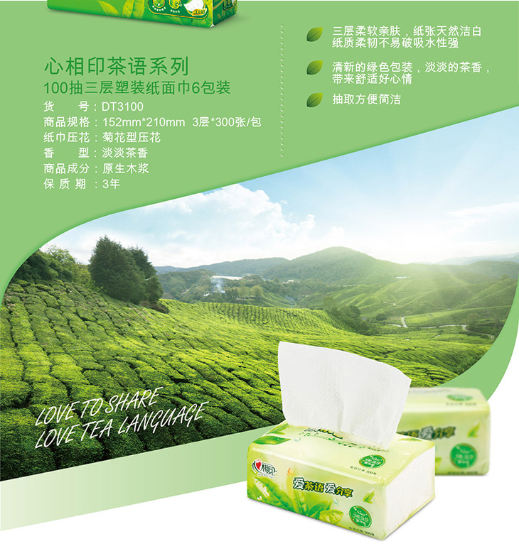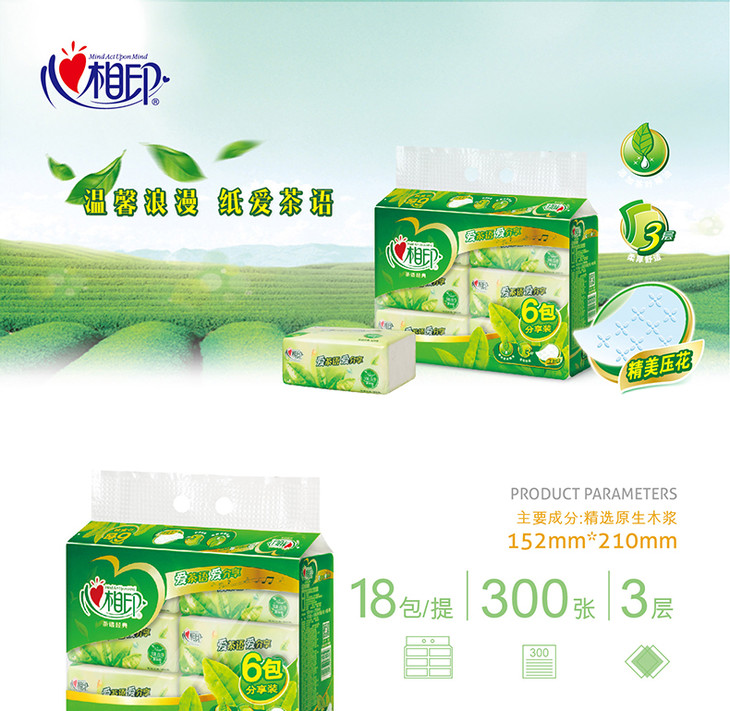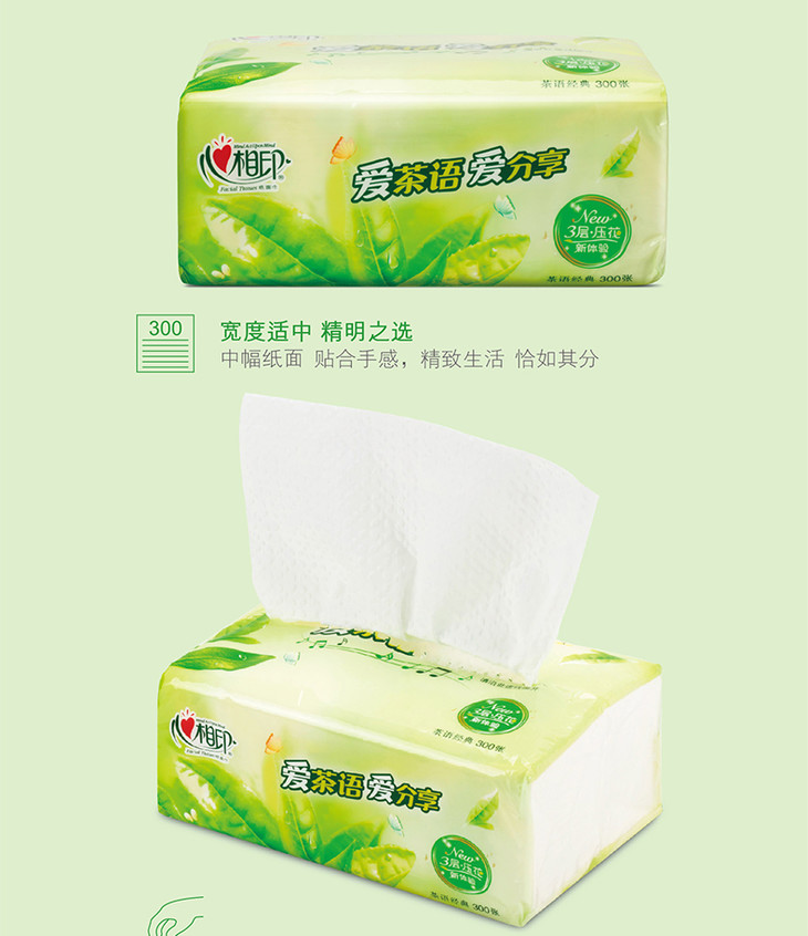心相印 抽纸茶语经典系列3层100抽纸抽纸巾面巾卫生纸 (3层*100抽*18包)