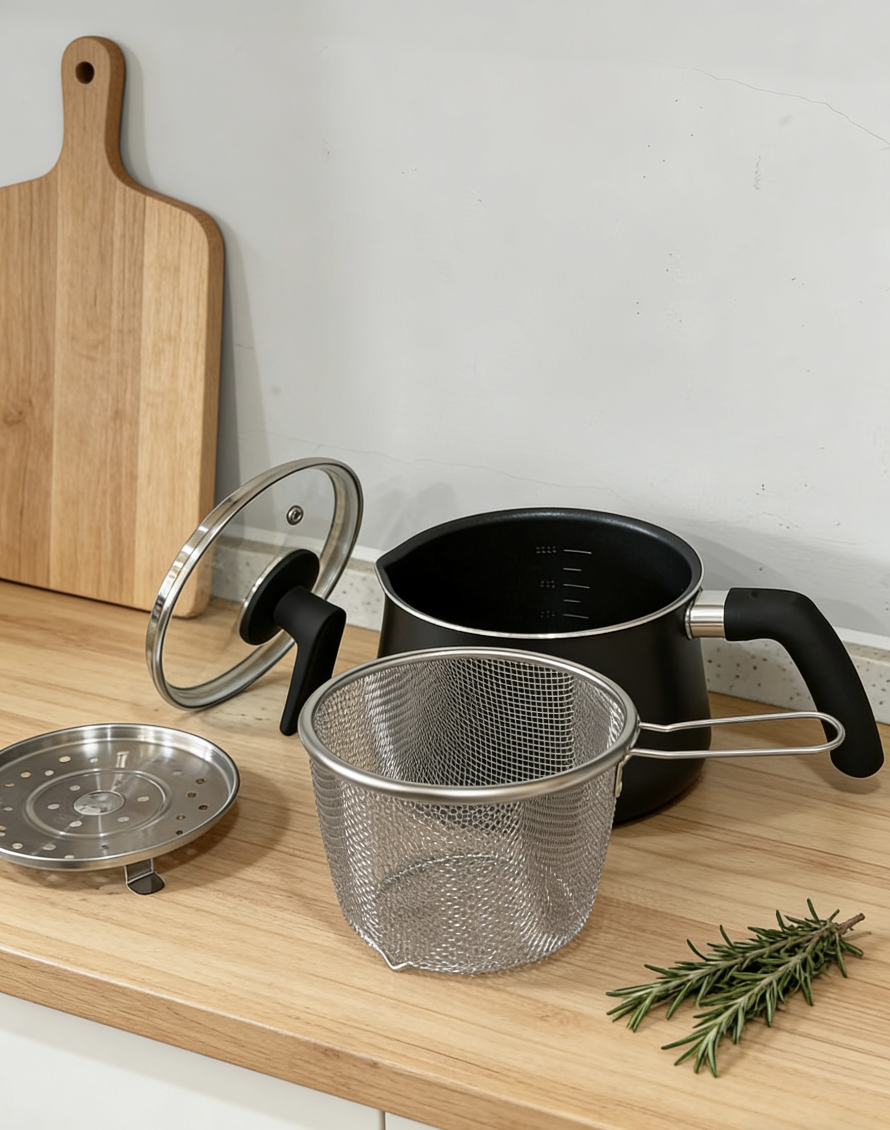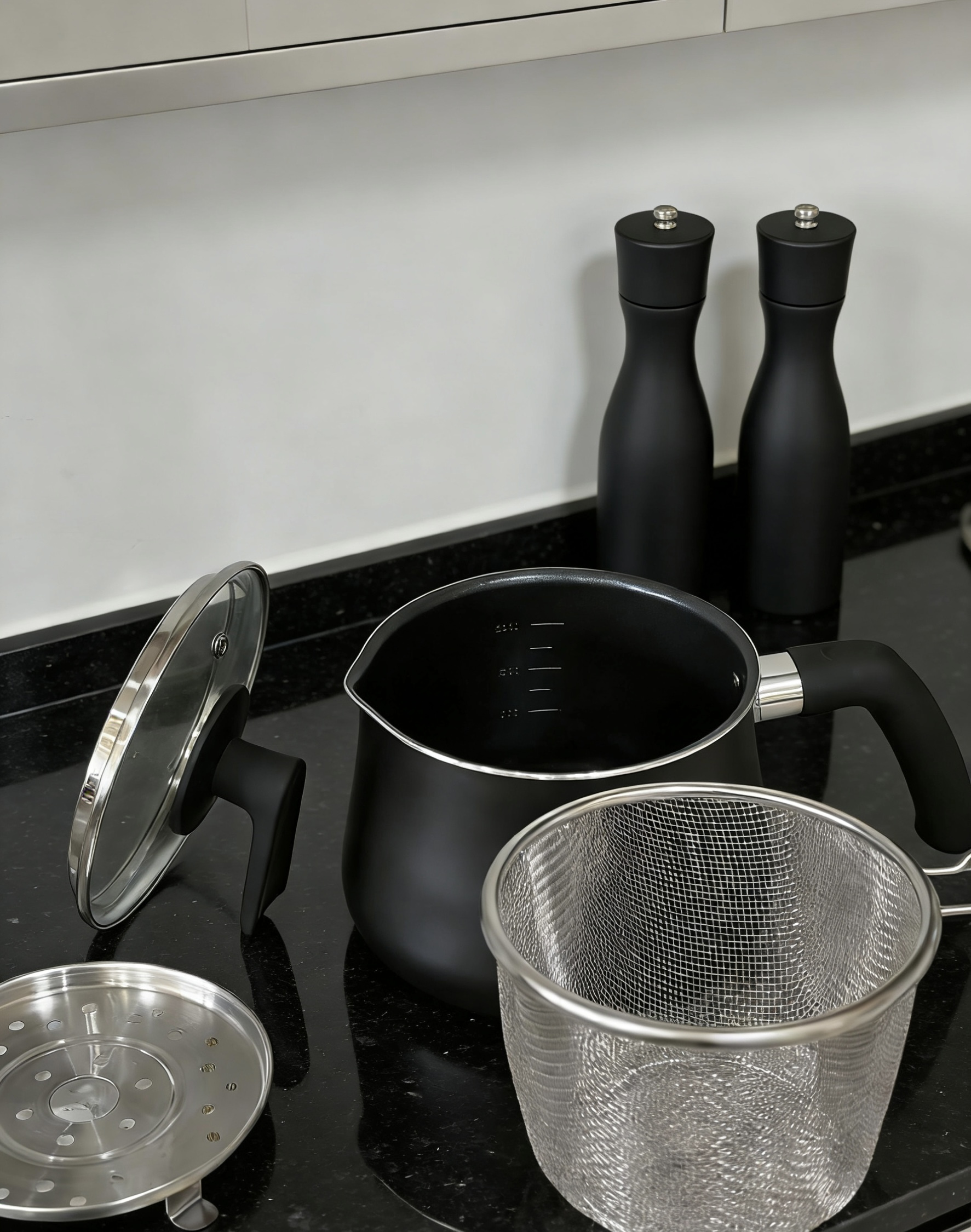 [产品材质]:不粘涂层、铝合金、食品级不锈钢