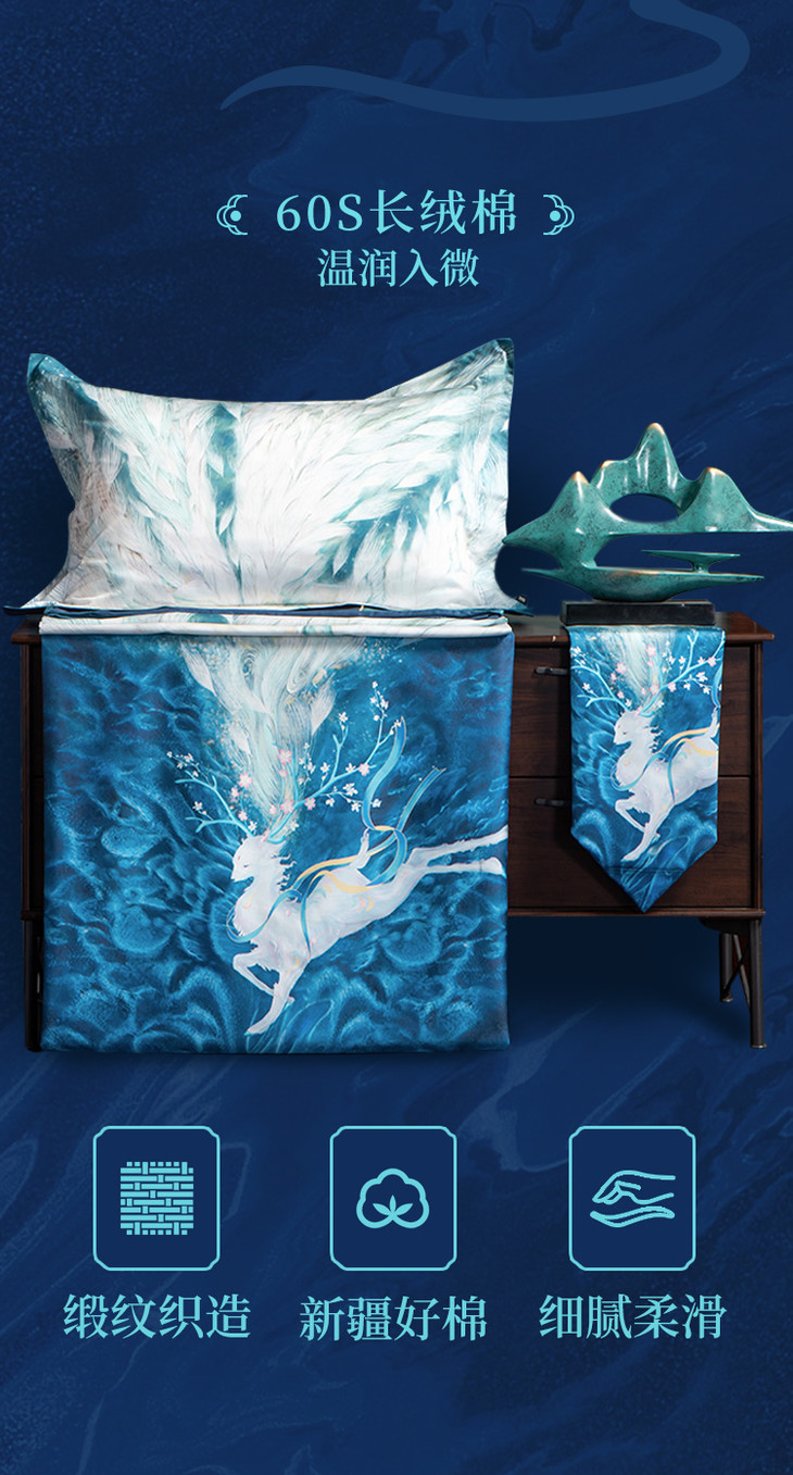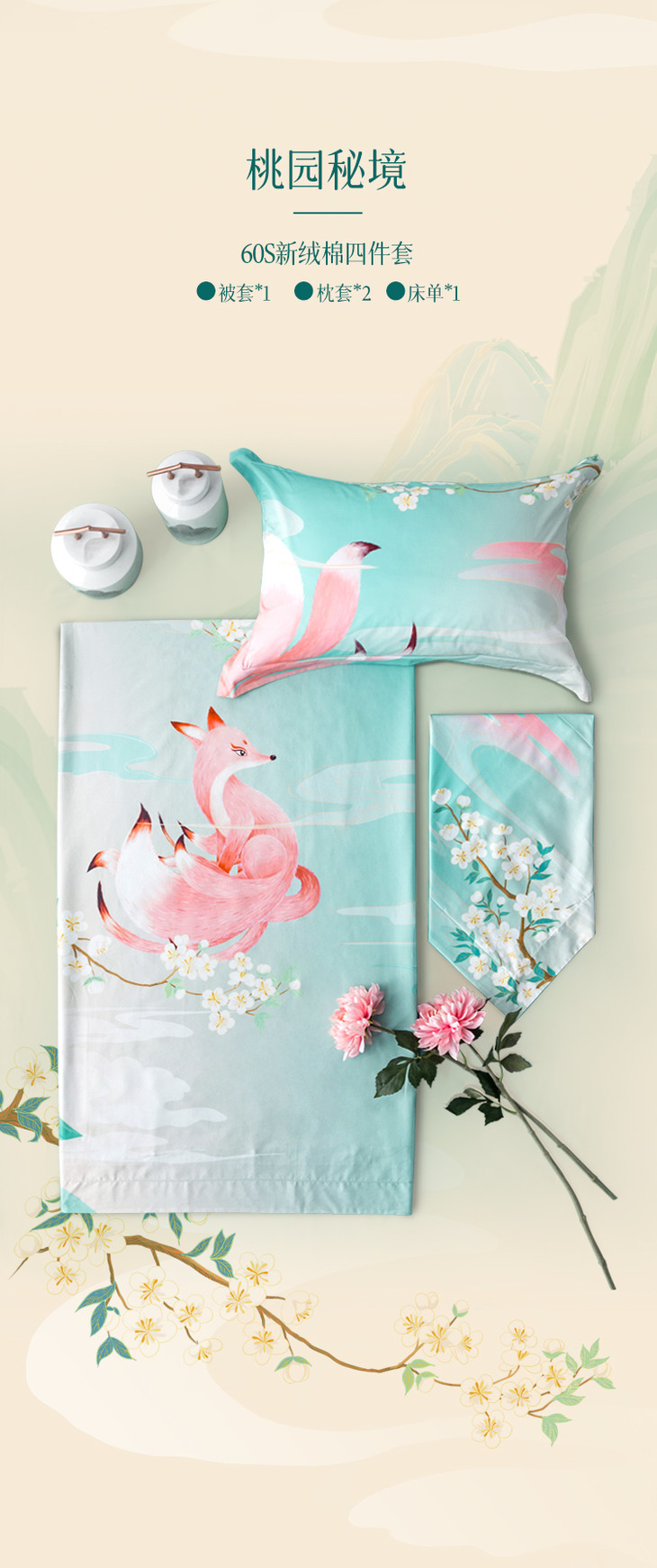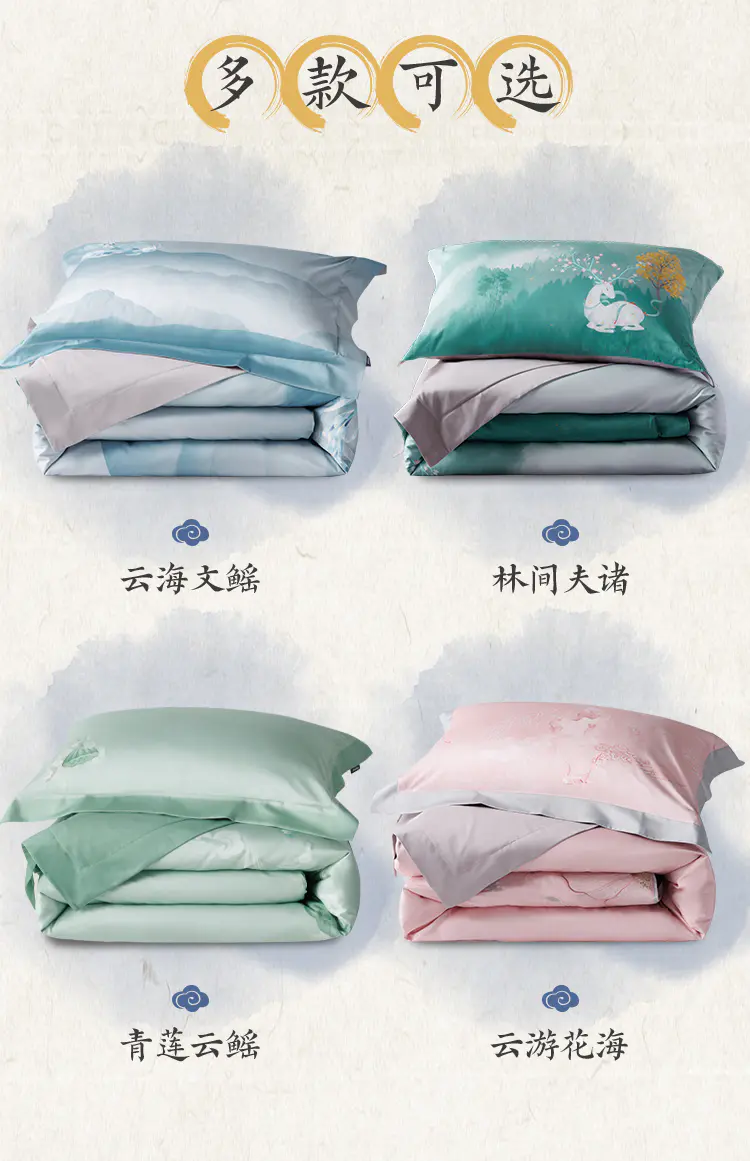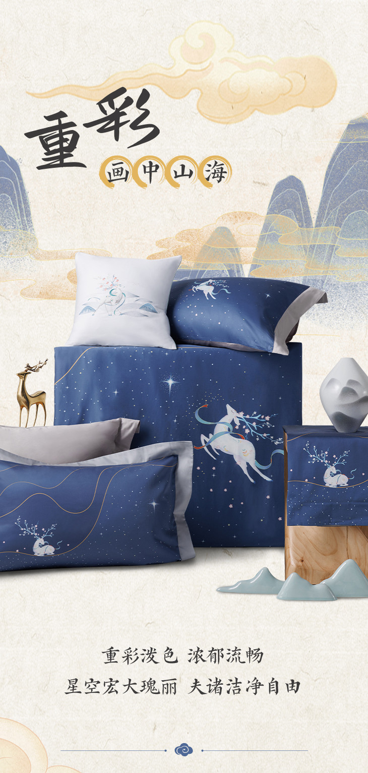 多喜爱IP款 山海经60支贡缎长绒棉四件套(奔赴山海 傲岸之山 锦绣山海 桃园秘境 林间夫诸 繁花似梦 守护夫诸 落花文鳐 金辉尽绘 文鳐澜心 花间闲逸 凌云山语 文鳐逸韵)