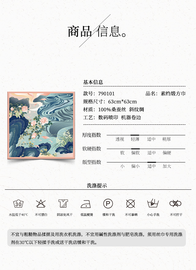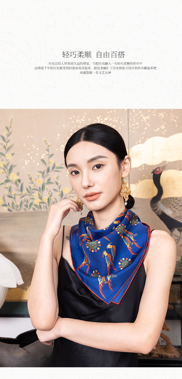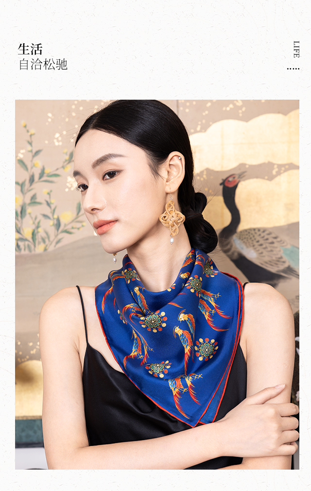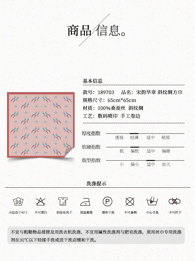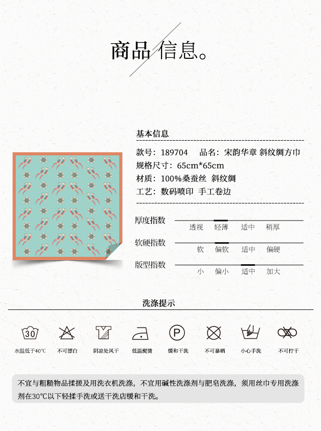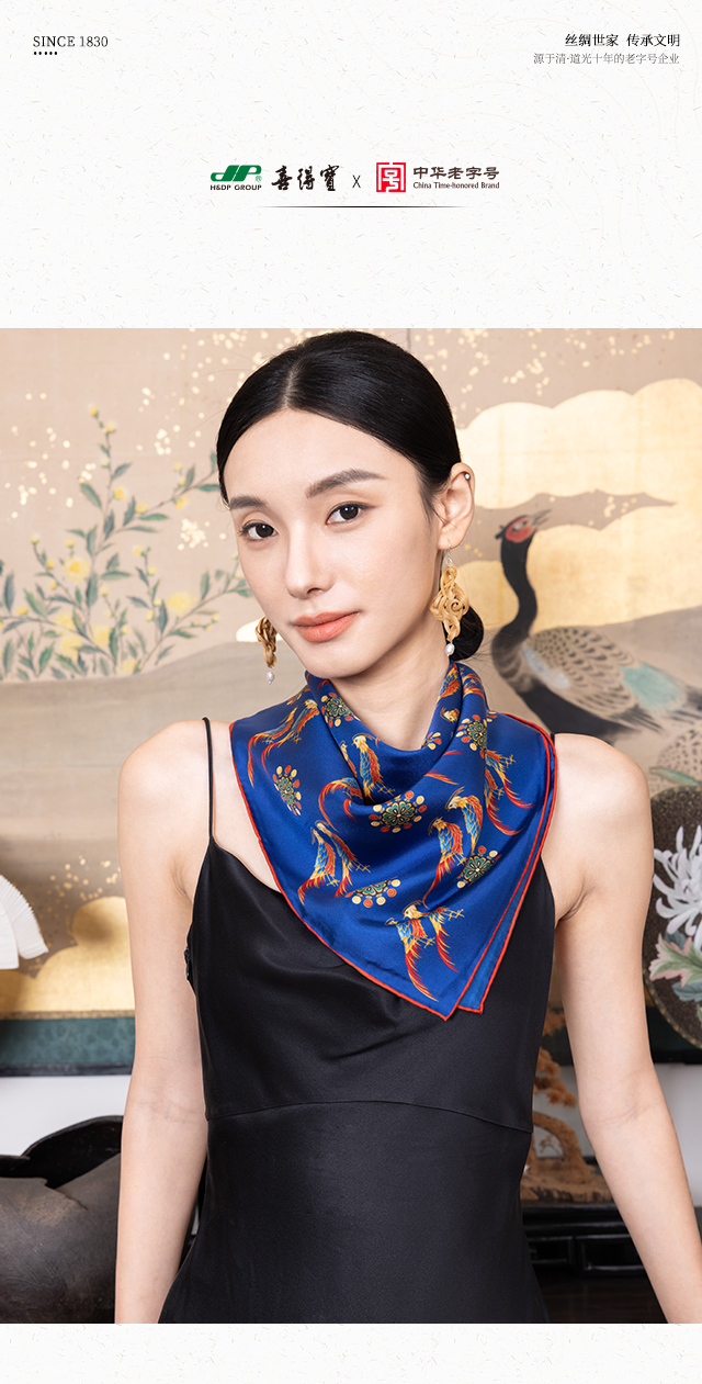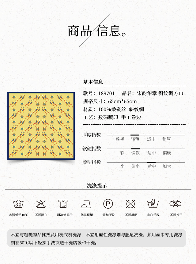 喜得宝宋韵华章65cm*65cm 手工卷边桑蚕丝斜纹绸小方巾