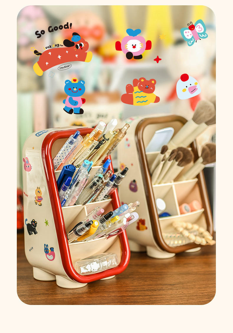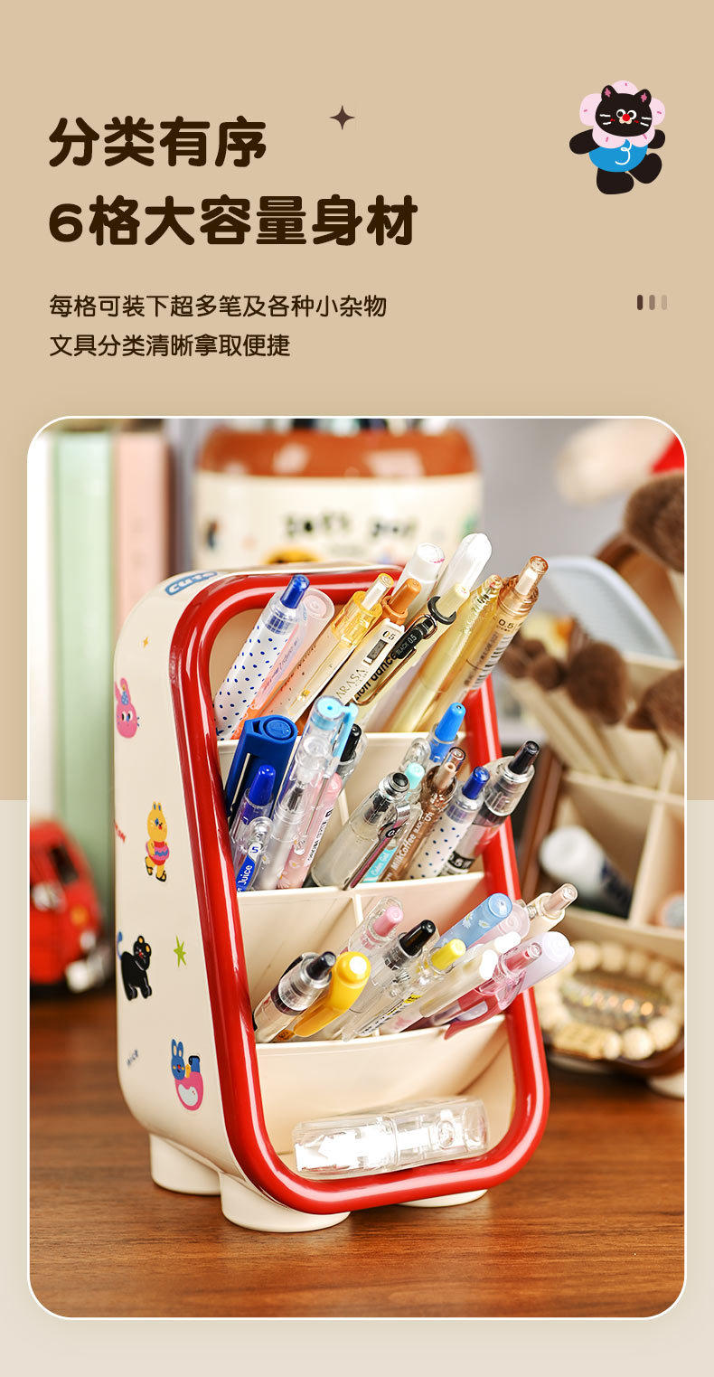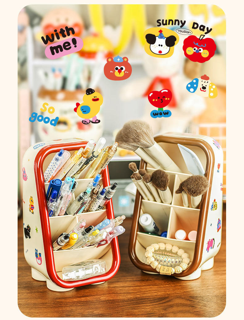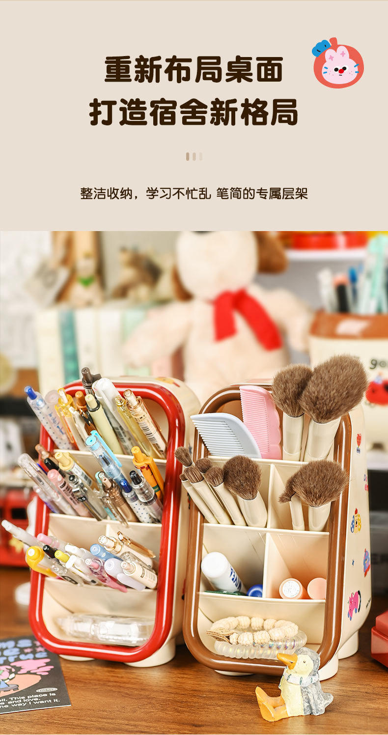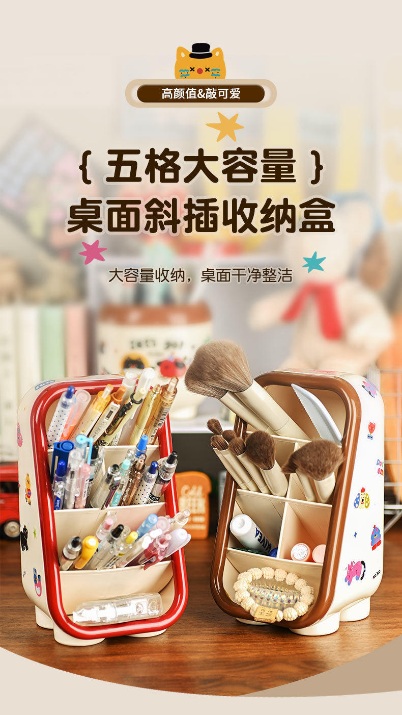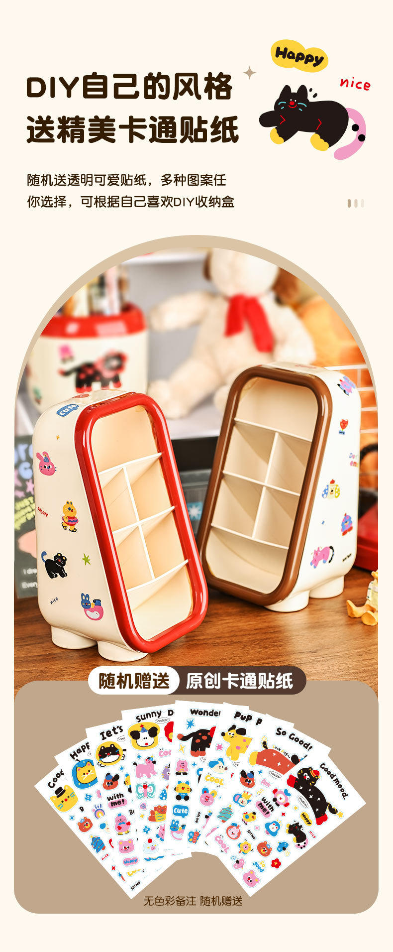 开学福利!【送贴纸】卡通桌面文具收纳盒可爱卡通笔筒学生办公笔盒多功能多格收盒纳