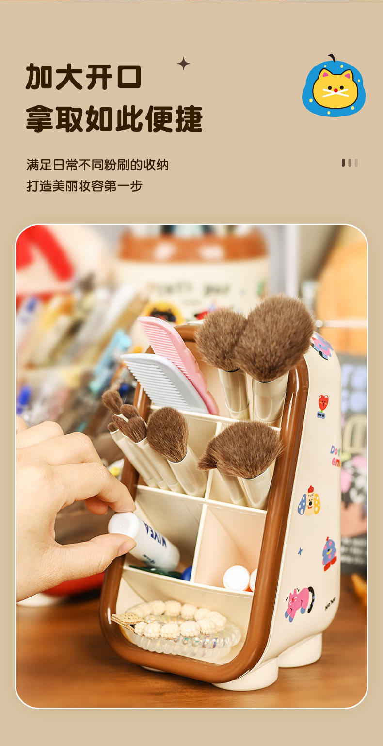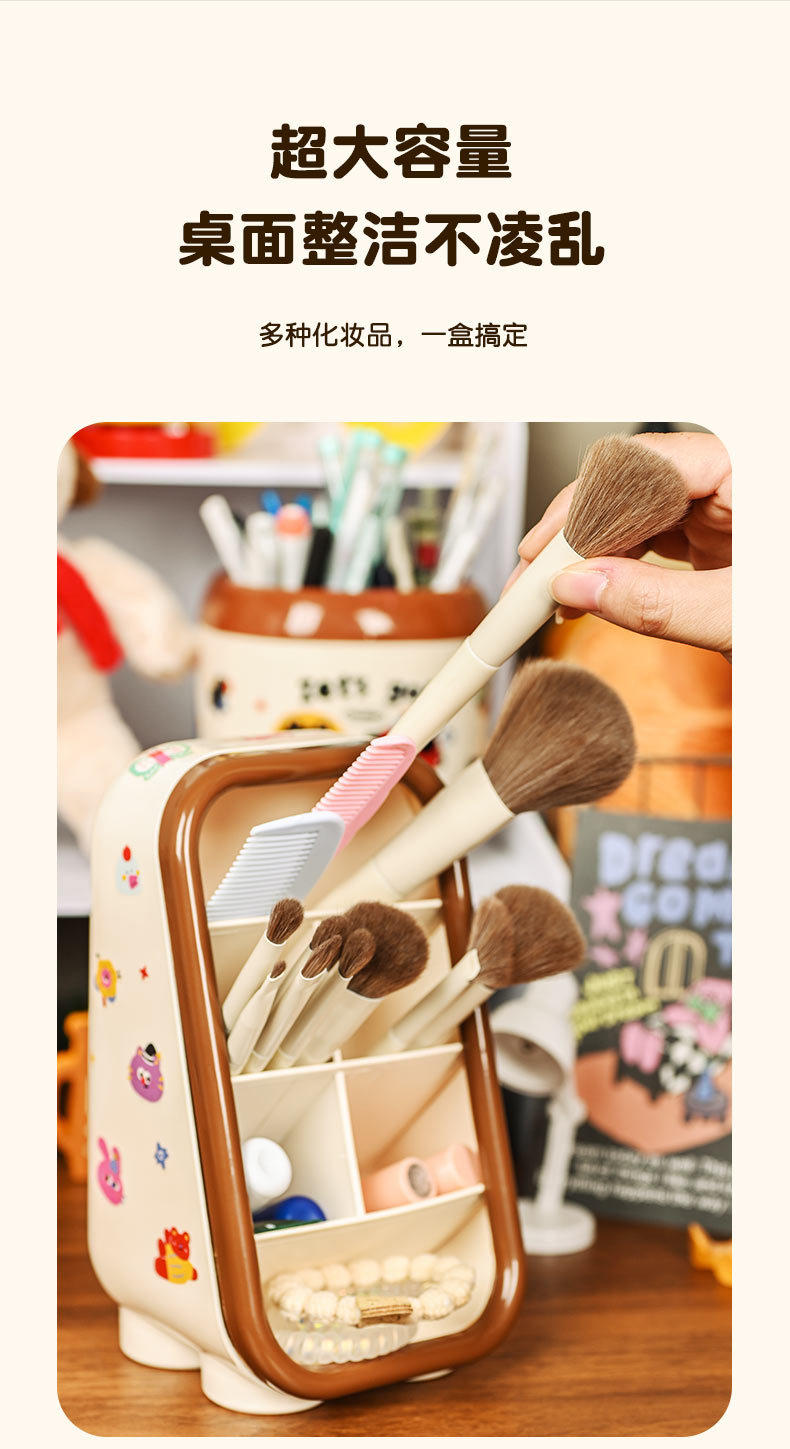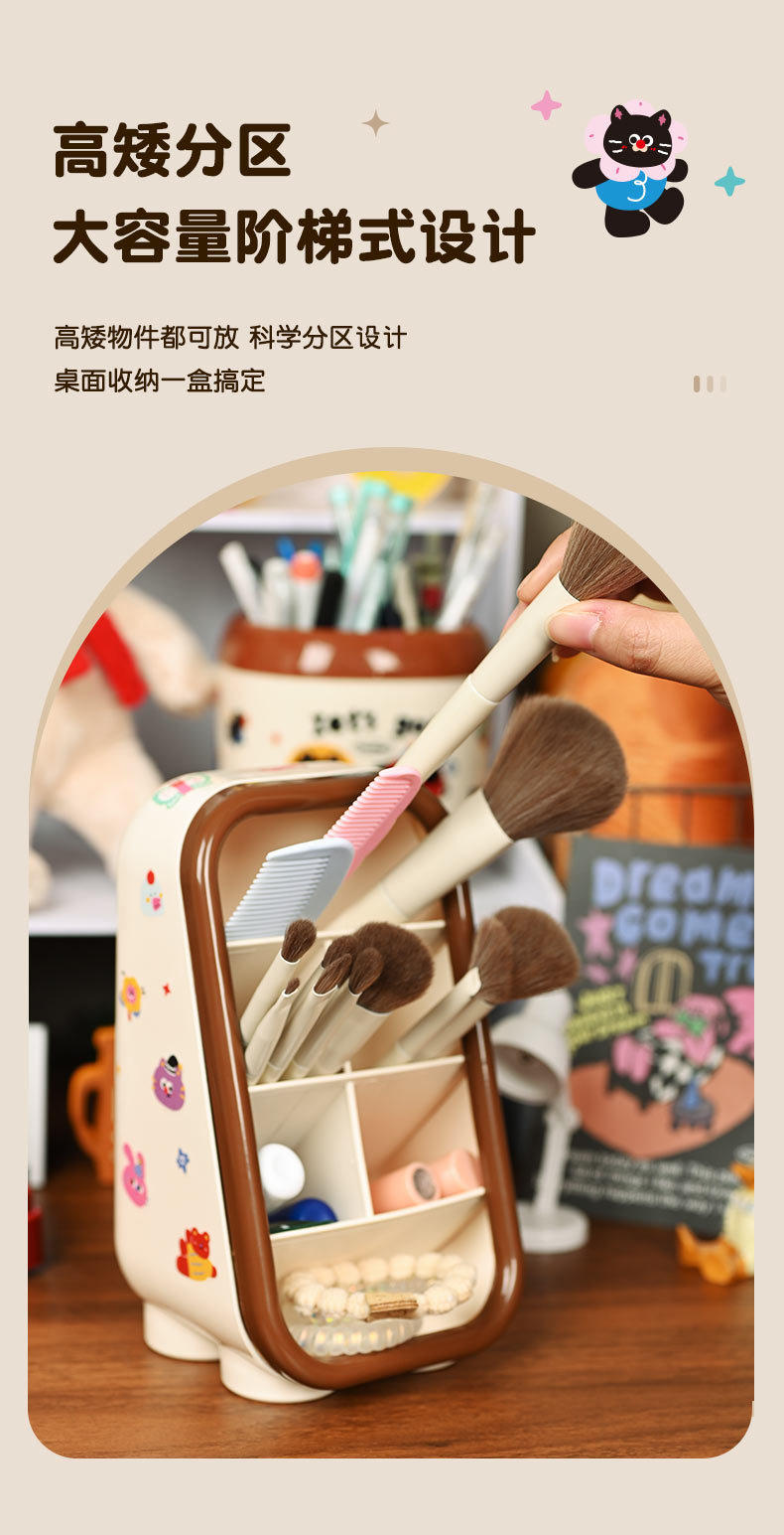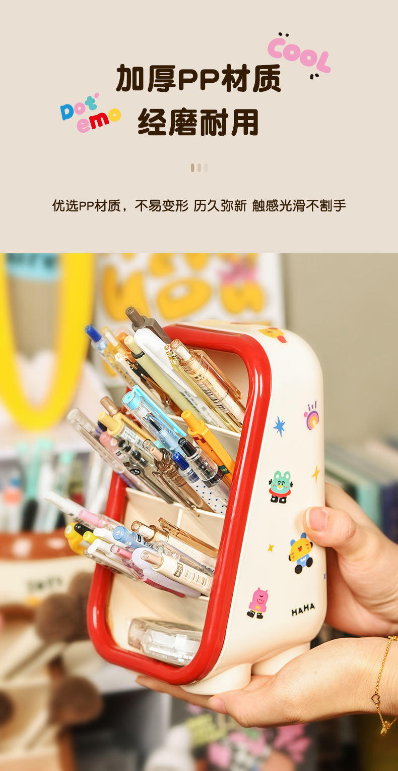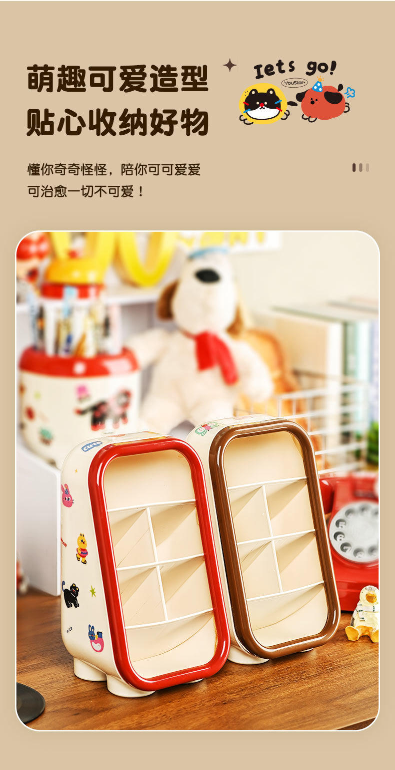 开学福利!【送贴纸】卡通桌面文具收纳盒可爱卡通笔筒学生办公笔盒多功能多格收盒纳