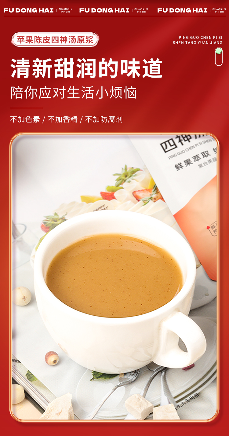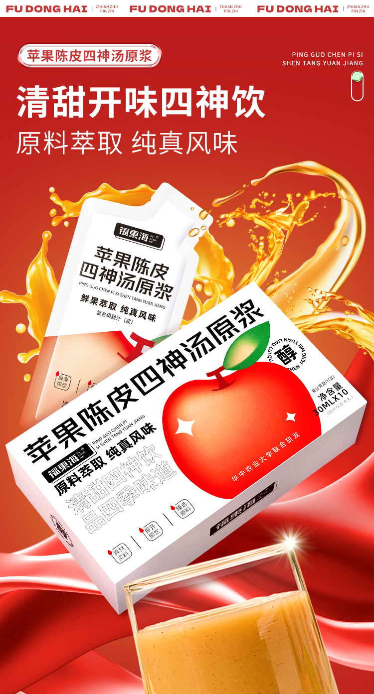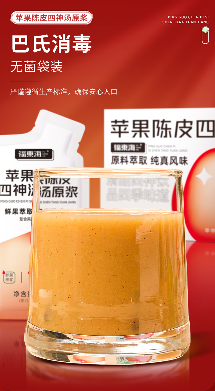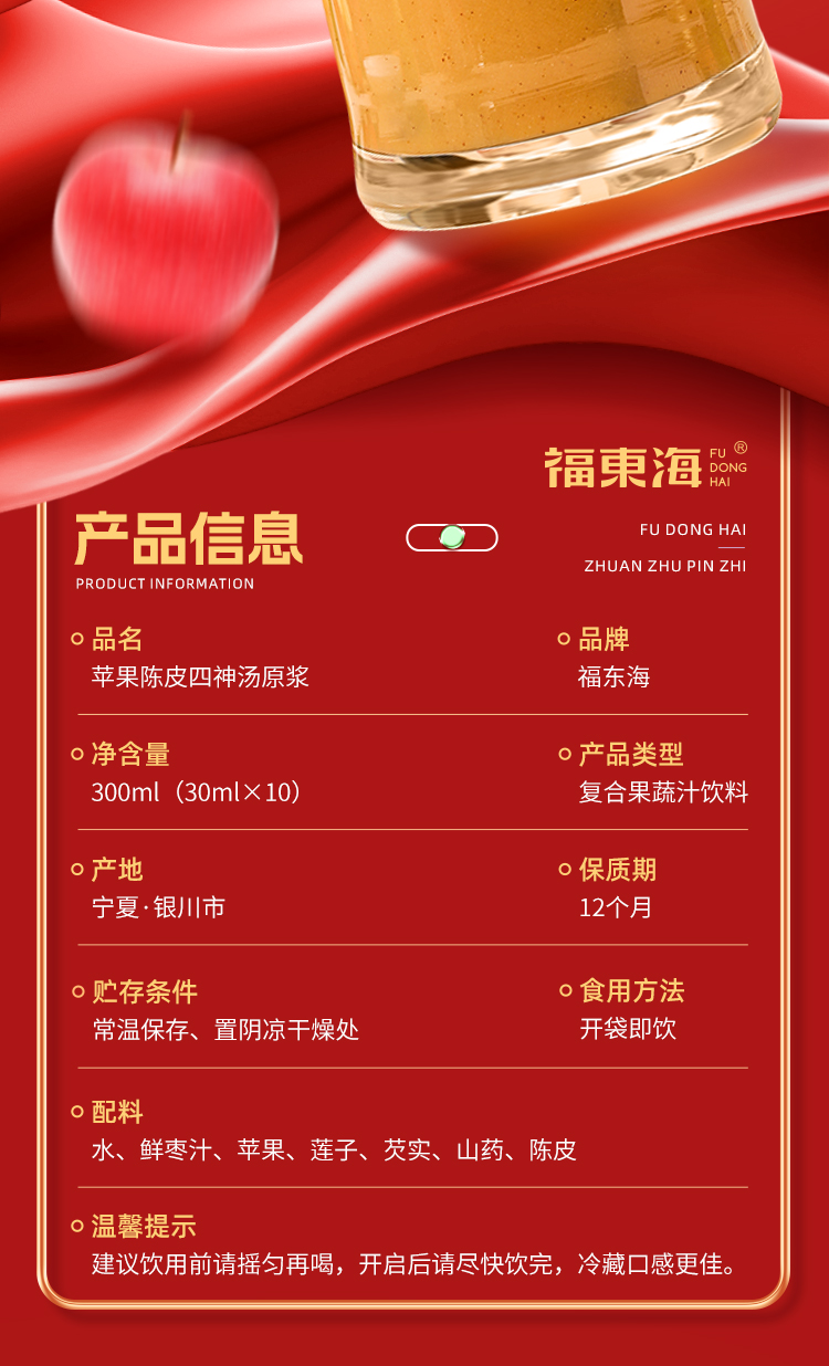 福东海 苹果陈皮四神汤原浆300Ml 莲子芡实山药茯苓鲜枣四神茶水酸甜胃滋补养生健四神汤饮苹果果汁30ml*10袋