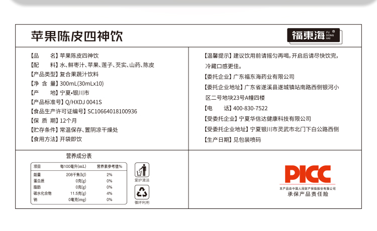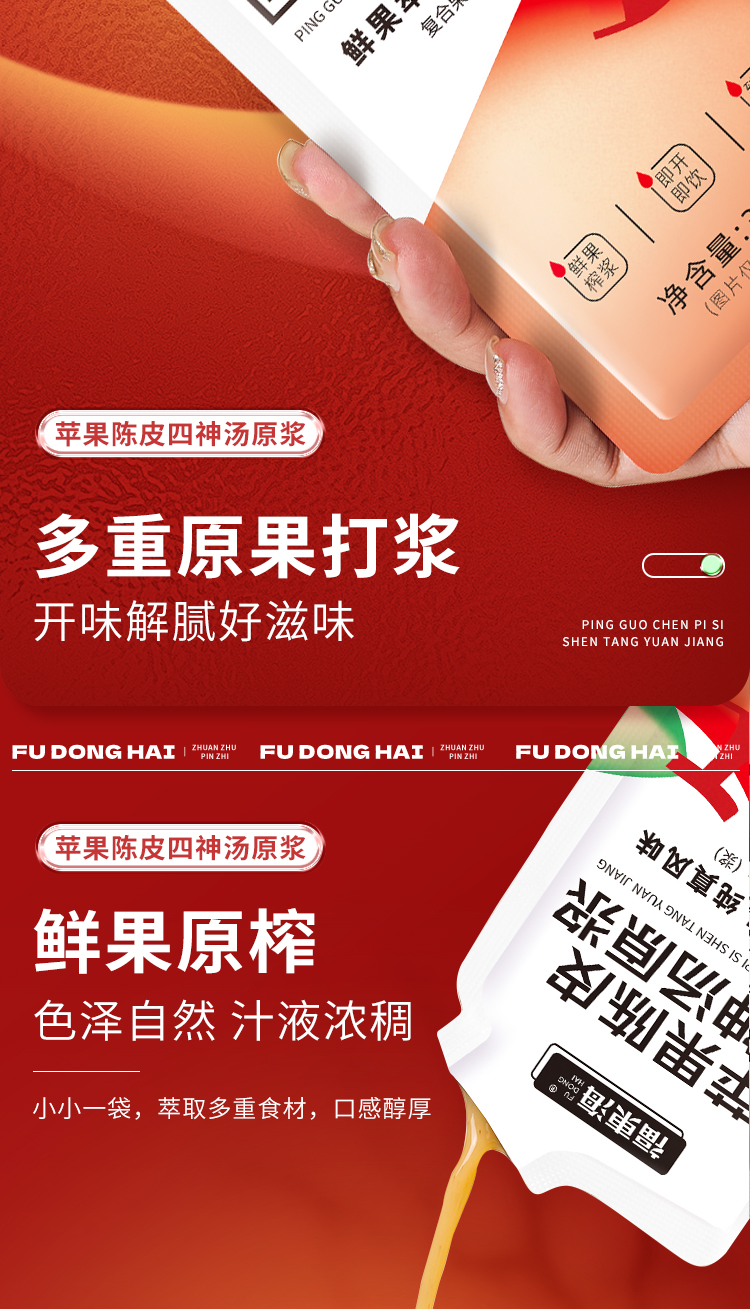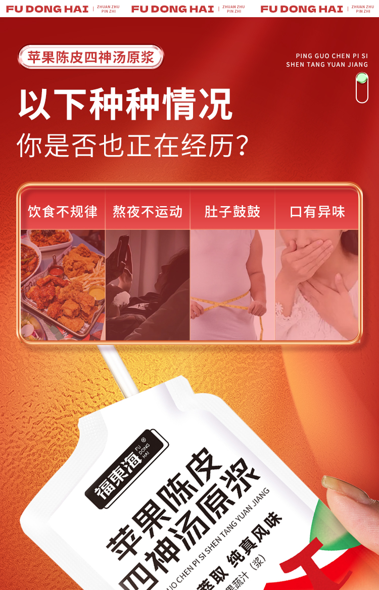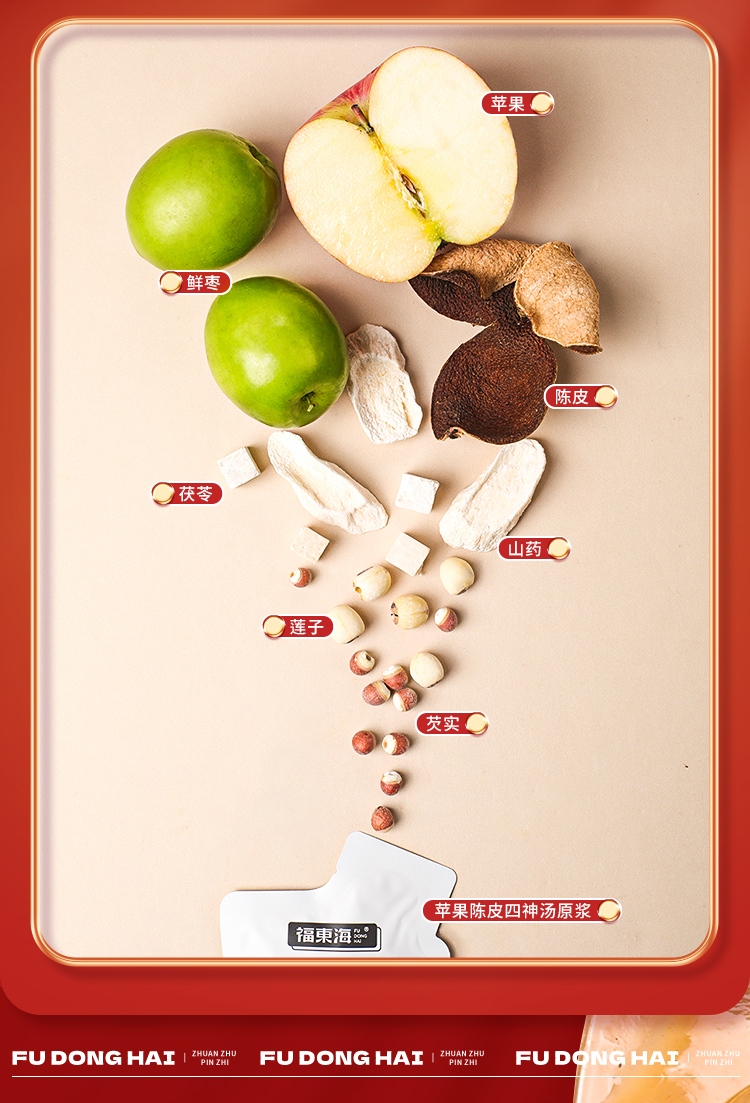 福东海 苹果陈皮四神汤原浆300Ml 莲子芡实山药茯苓鲜枣四神茶水酸甜胃滋补养生健四神汤饮苹果果汁30ml*10袋
