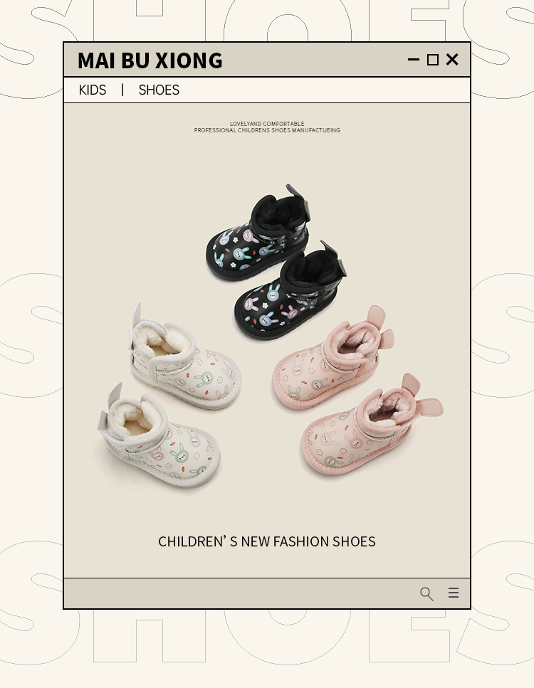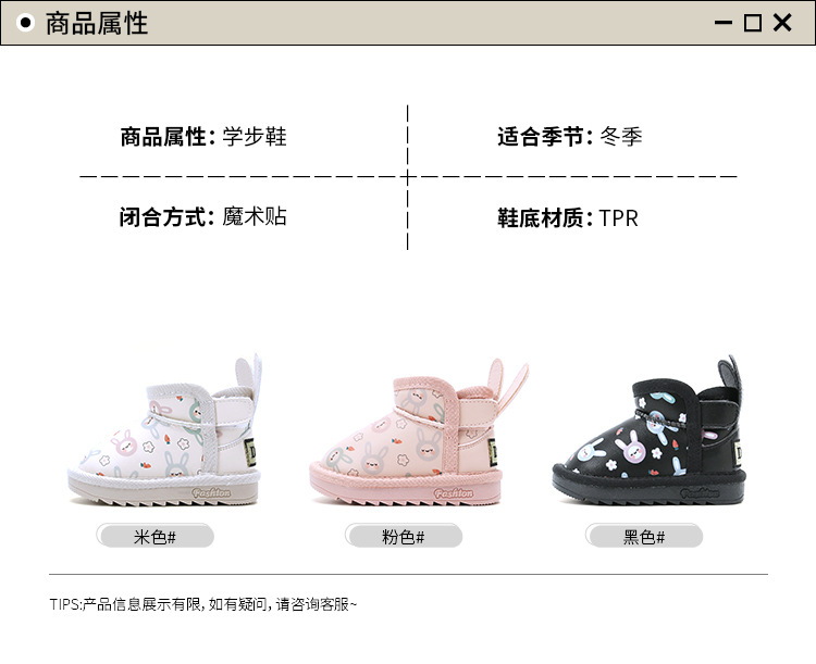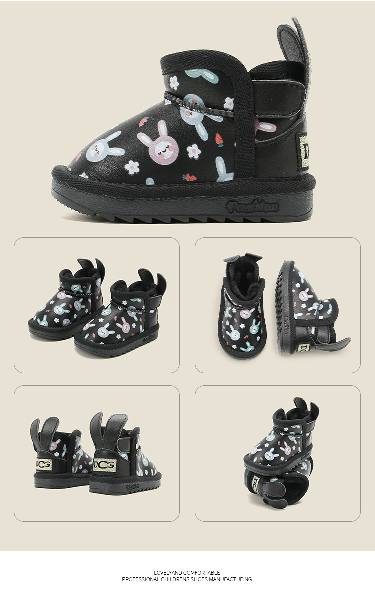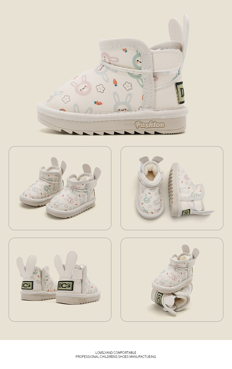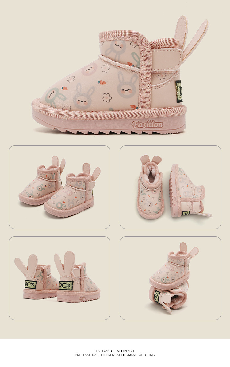 麦布熊宝宝棉鞋子加绒婴儿童学步鞋女童卡通雪地靴冬季保暖短皮靴