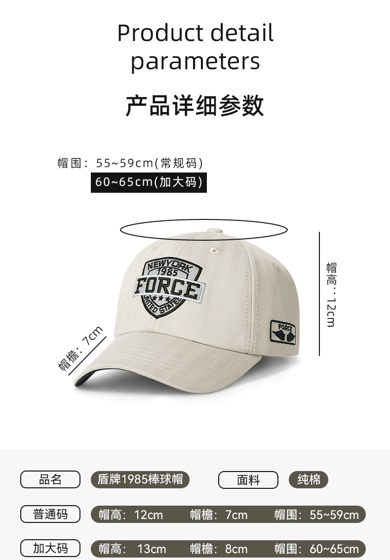 【时尚百搭 加大加深显脸小】适合大头围加深鸭舌帽子男潮新款帽子刺绣盾牌户外运动防晒棒球帽