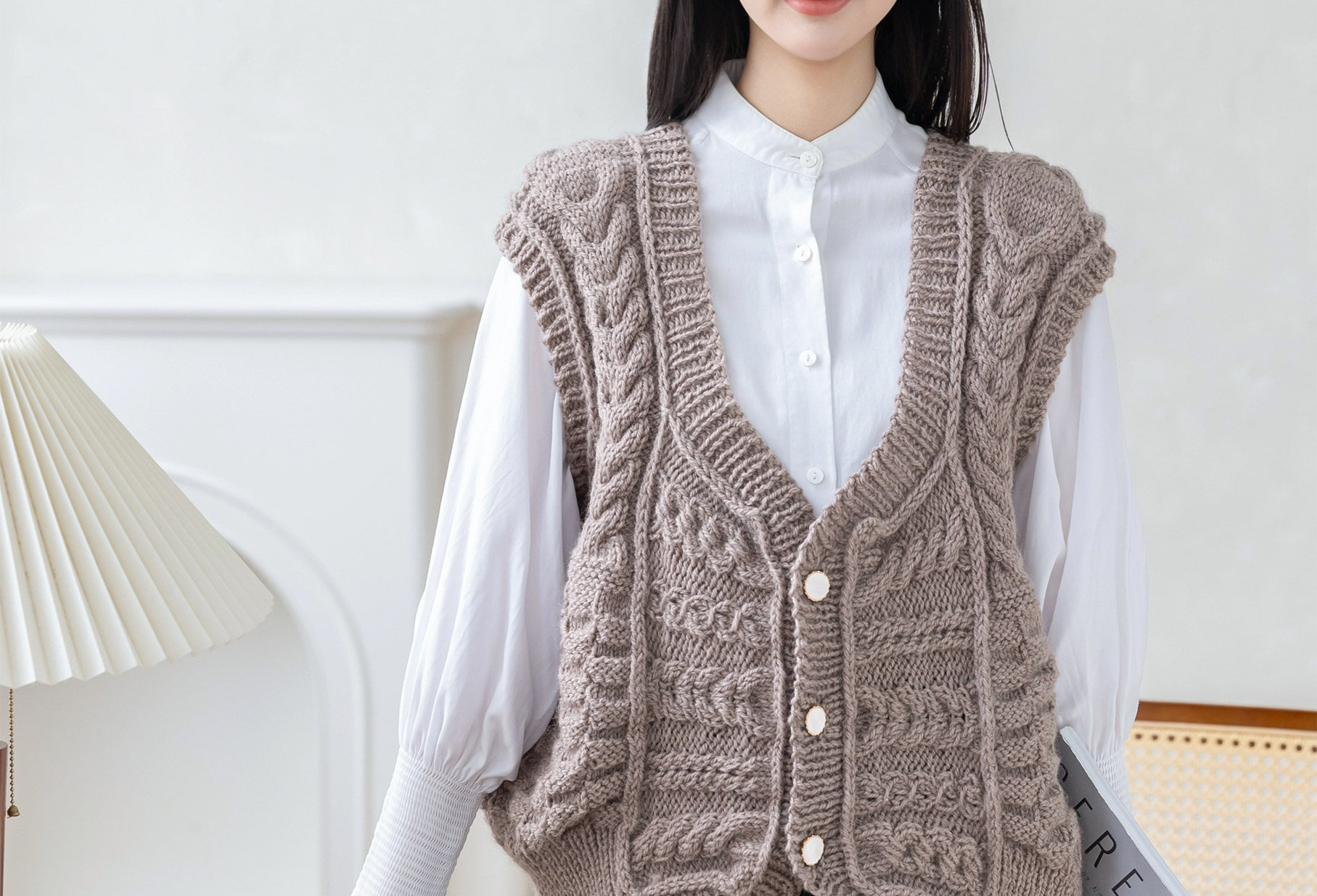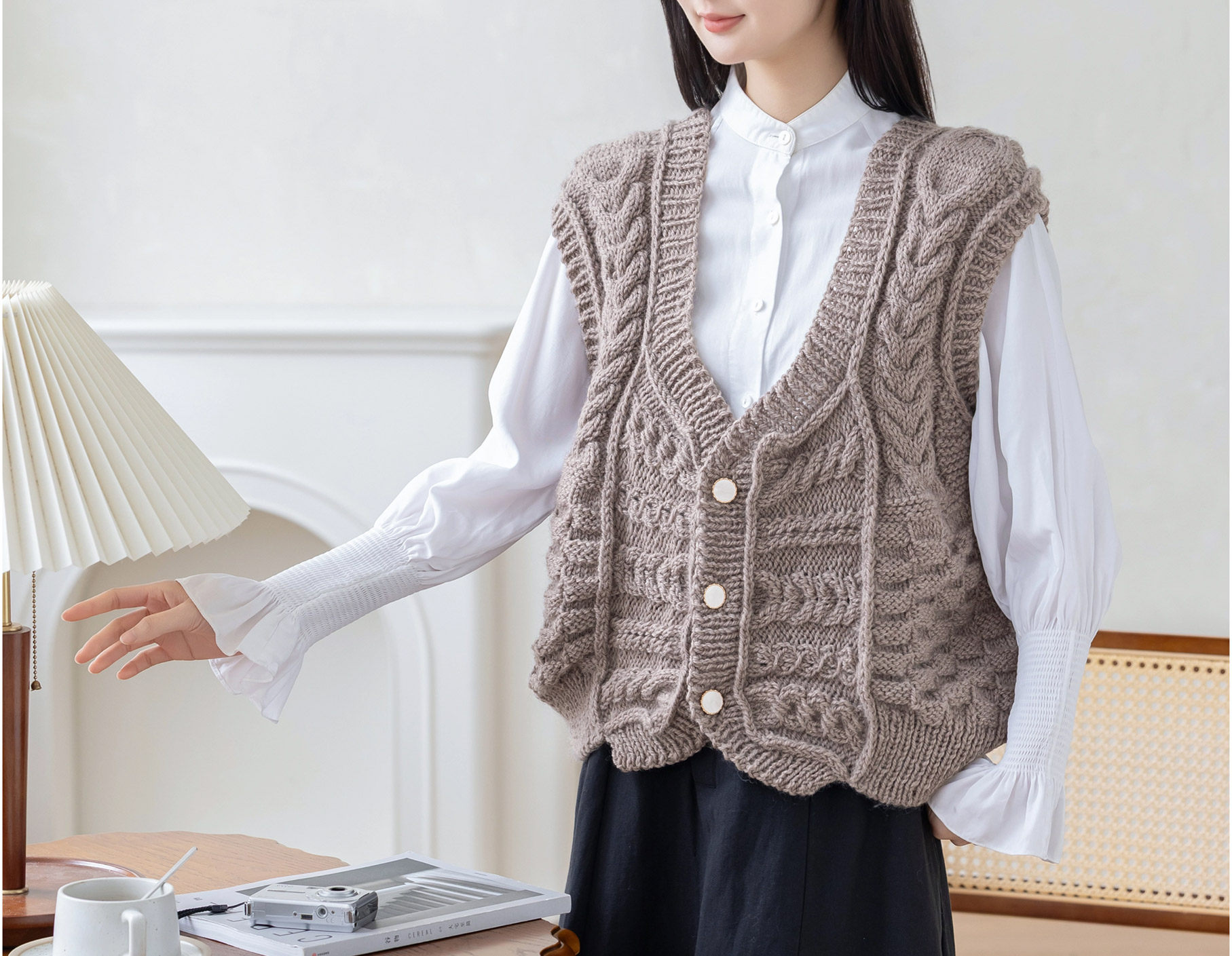 苏苏姐家左岸绞花马甲手工DIY羊毛线棒针毛线团上衣自制材料包