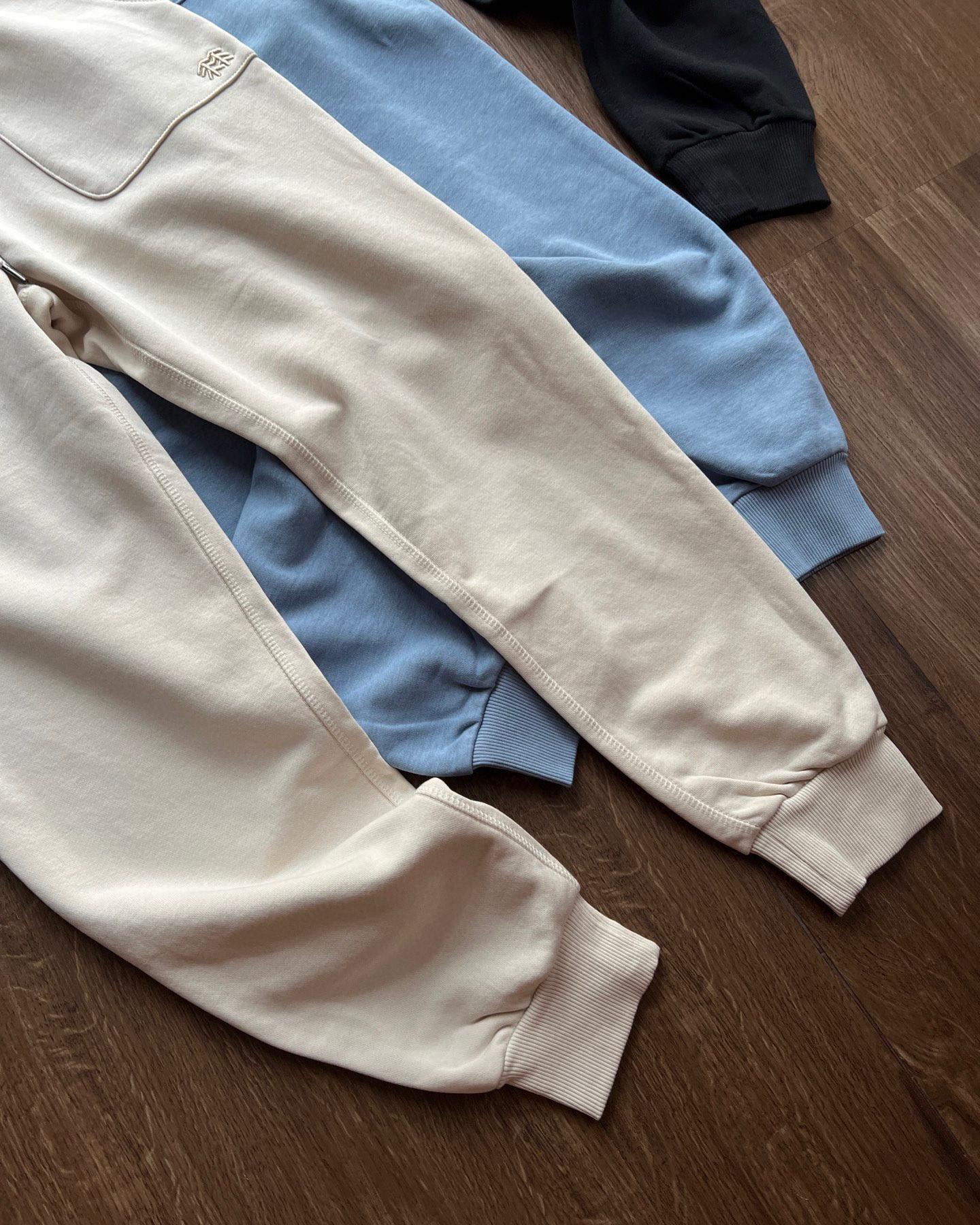 春季小毛圈三色运动裤真的给人一种特别舒适的感觉,牛仔质地,如此丝滑~因为是廓形的版型,所以浅色也不需要担心显胖