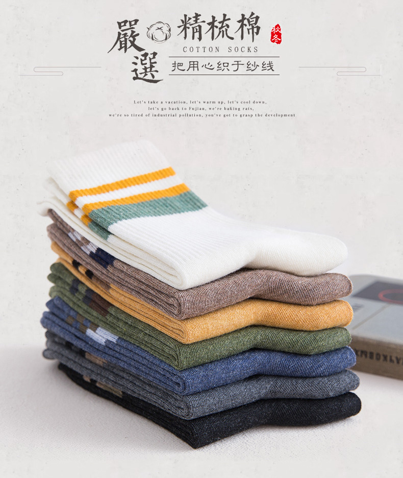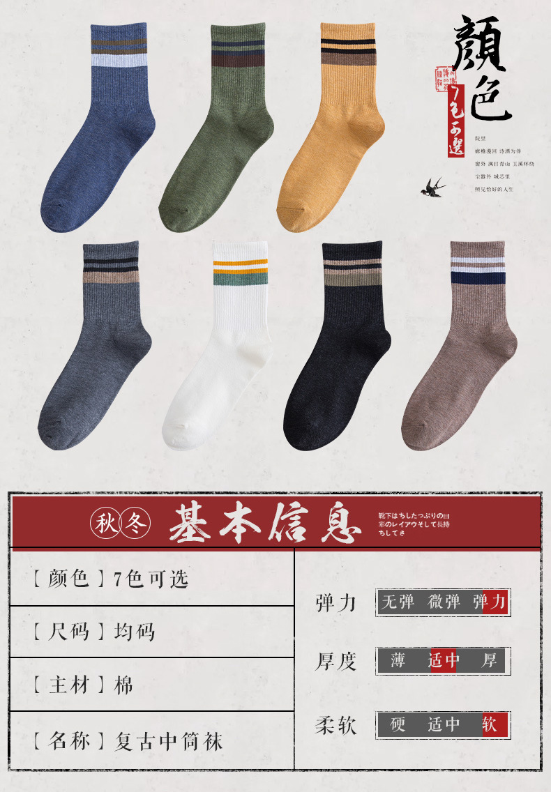 【日用百货】袜子男秋冬男士冬季中筒袜ins潮流长筒袜日系纯色棉袜男