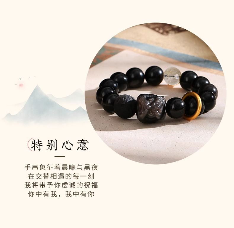 【祈愿吉品】瑞狮黑曜石发晶手链