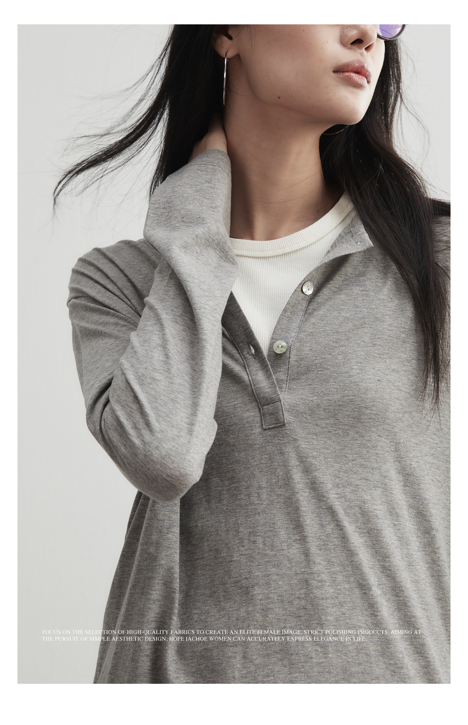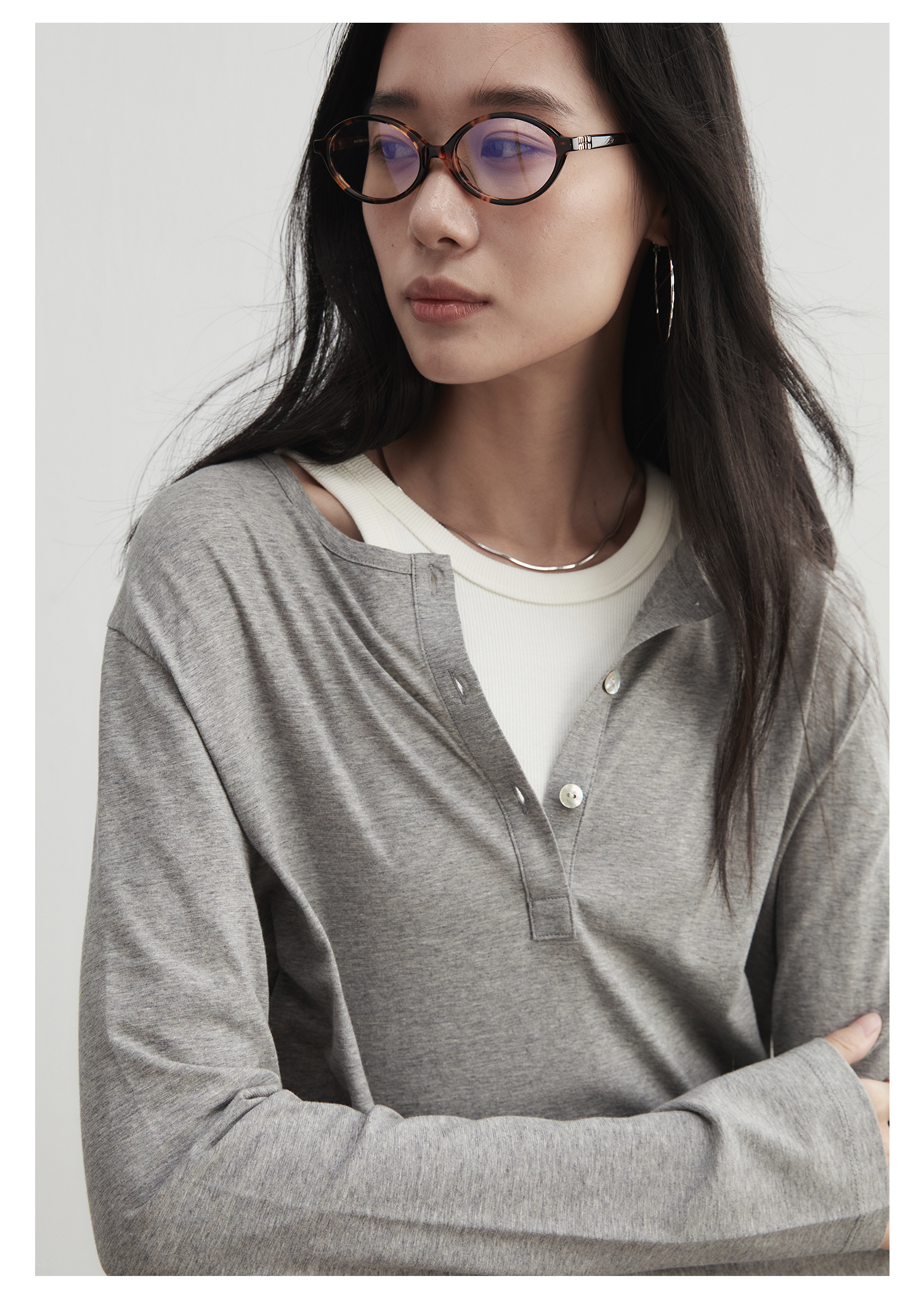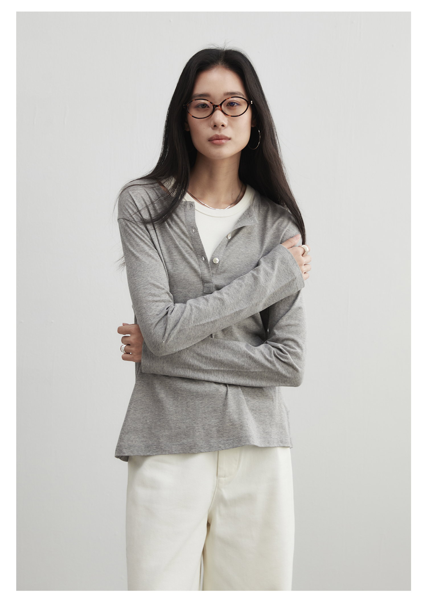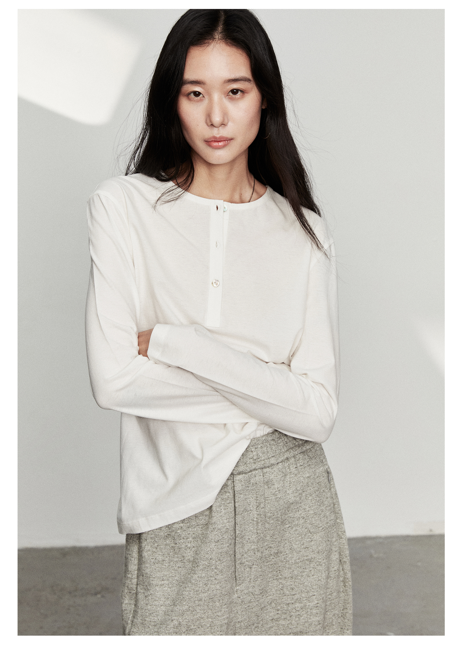 棉仓3561501002-秋装新中式亨利零长袖T恤 松弛感宽松设计感上衣打底衫