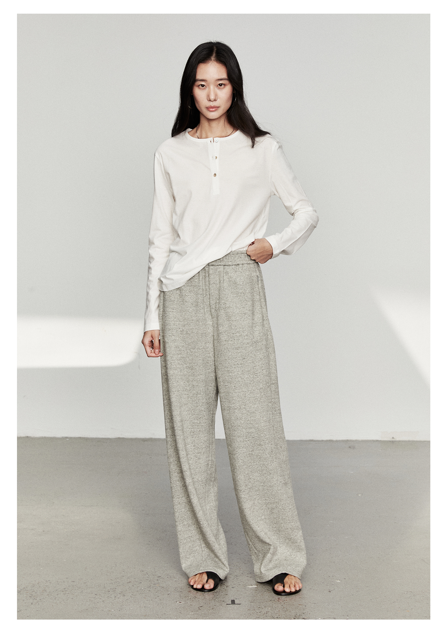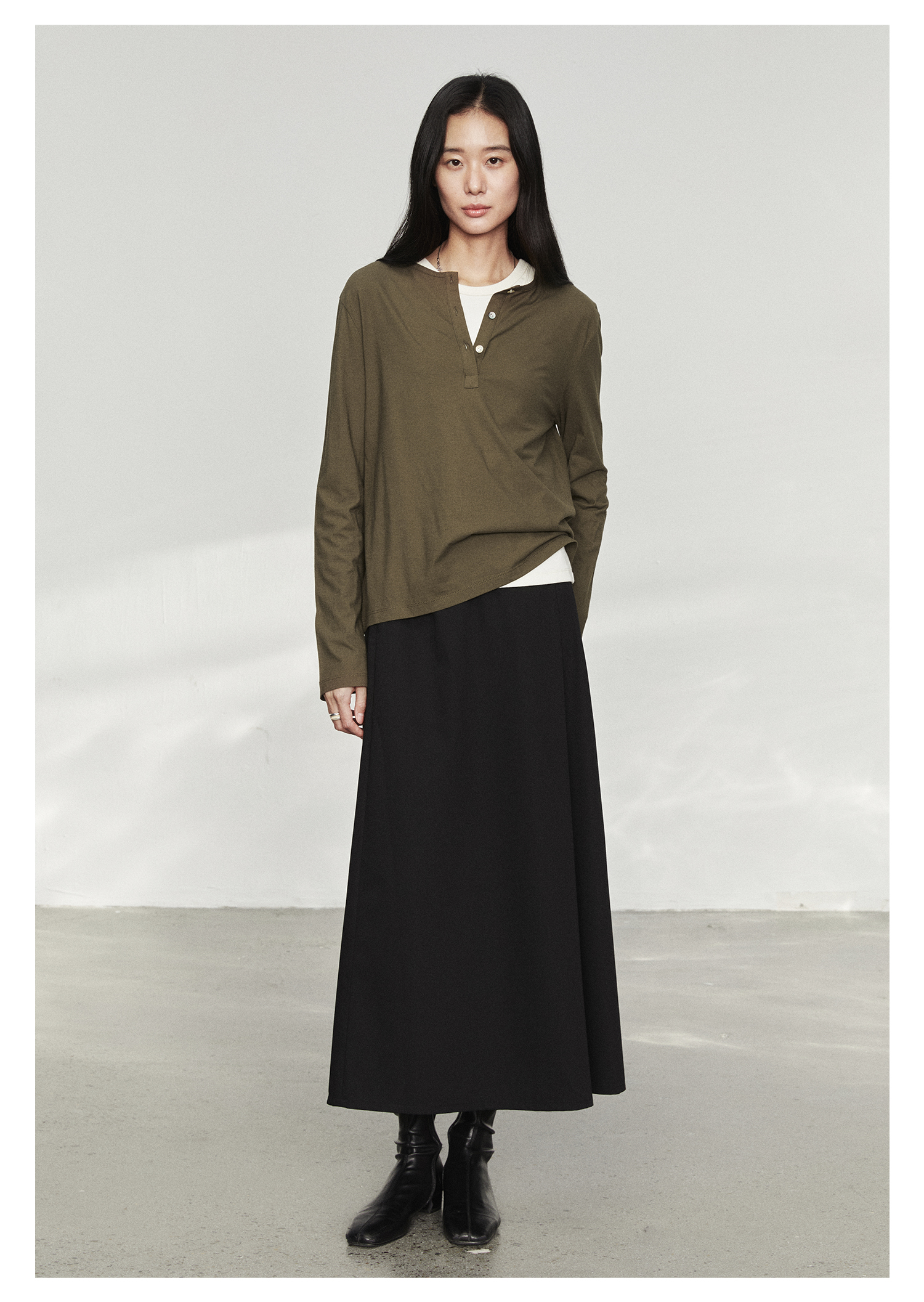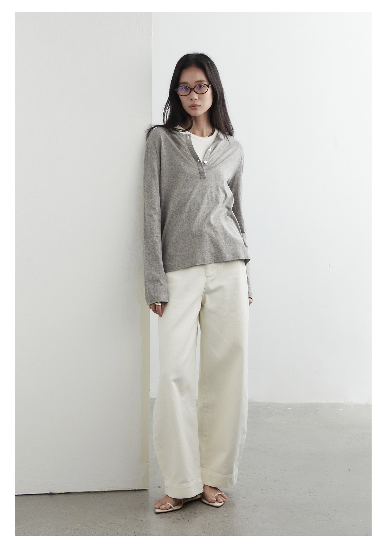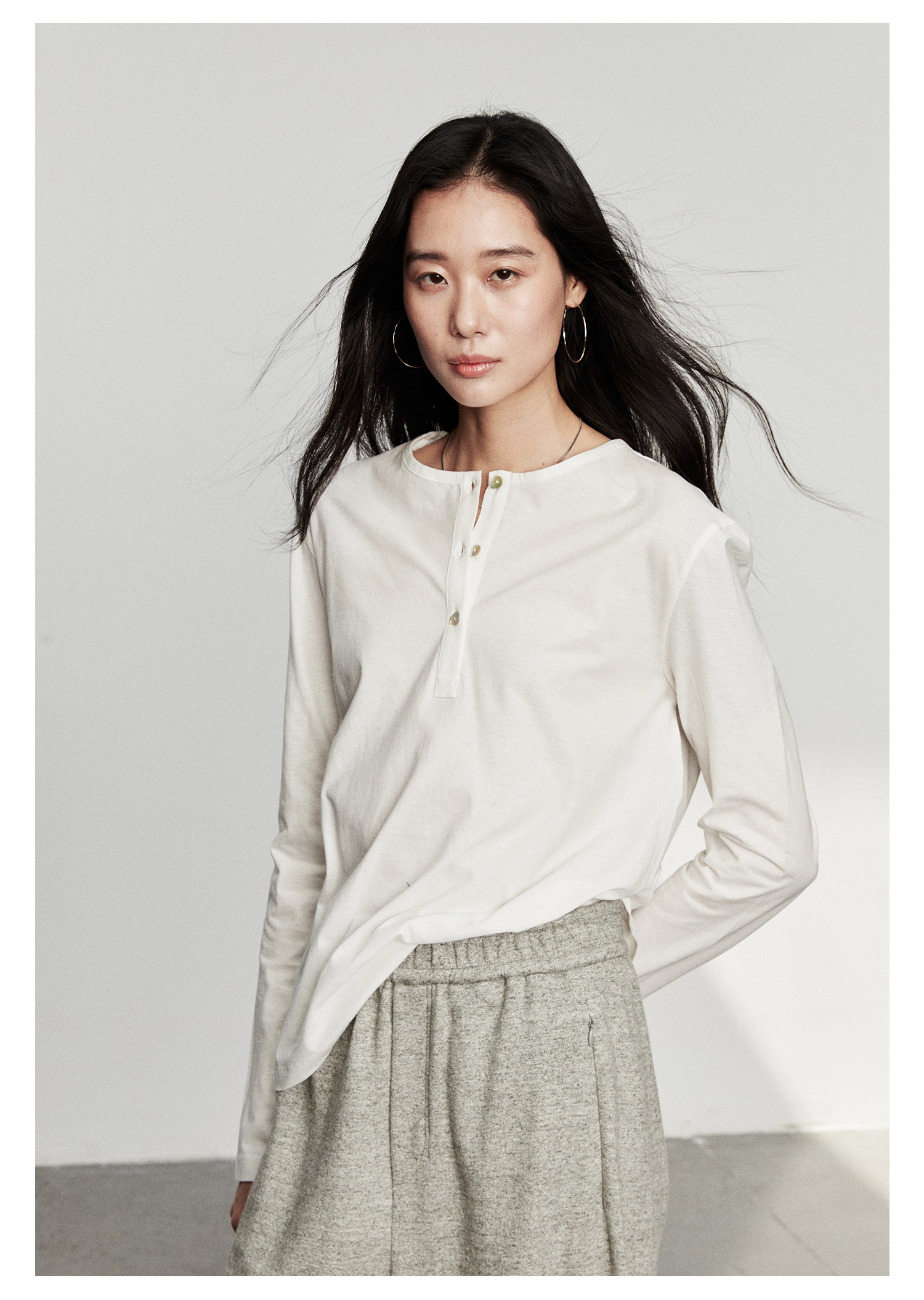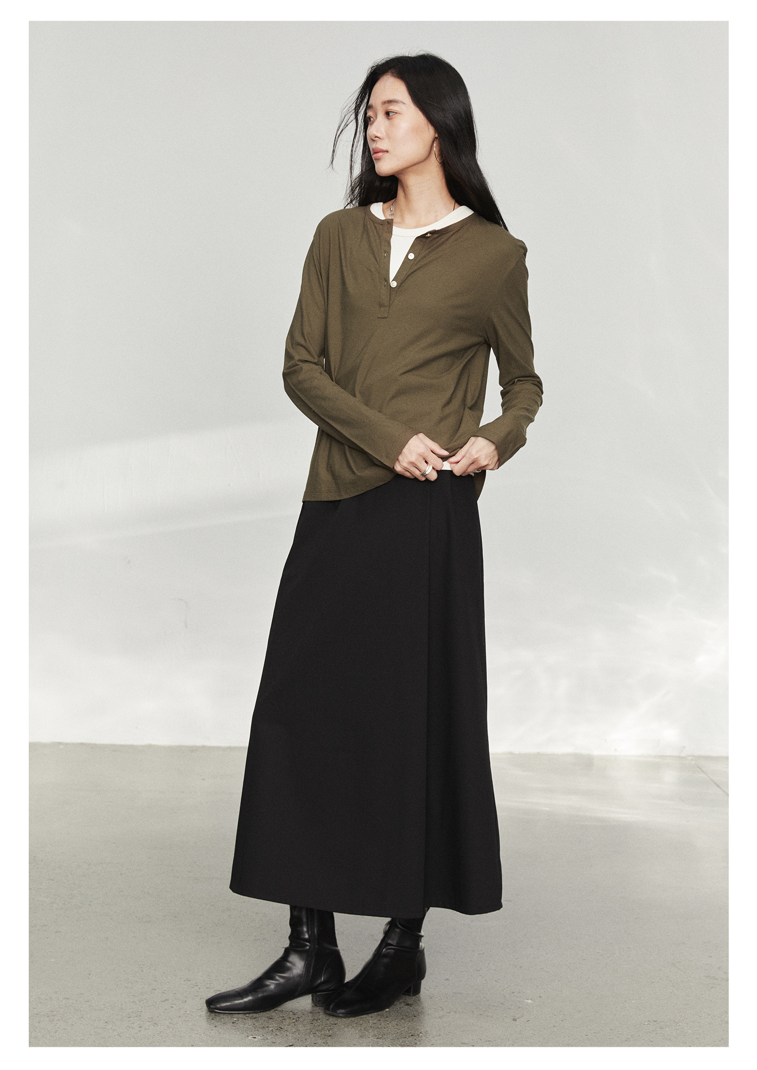棉仓3561501002-秋装新中式亨利零长袖T恤 松弛感宽松设计感上衣打底衫