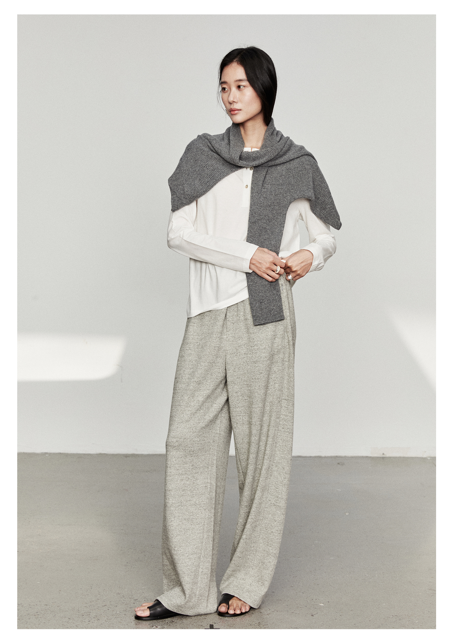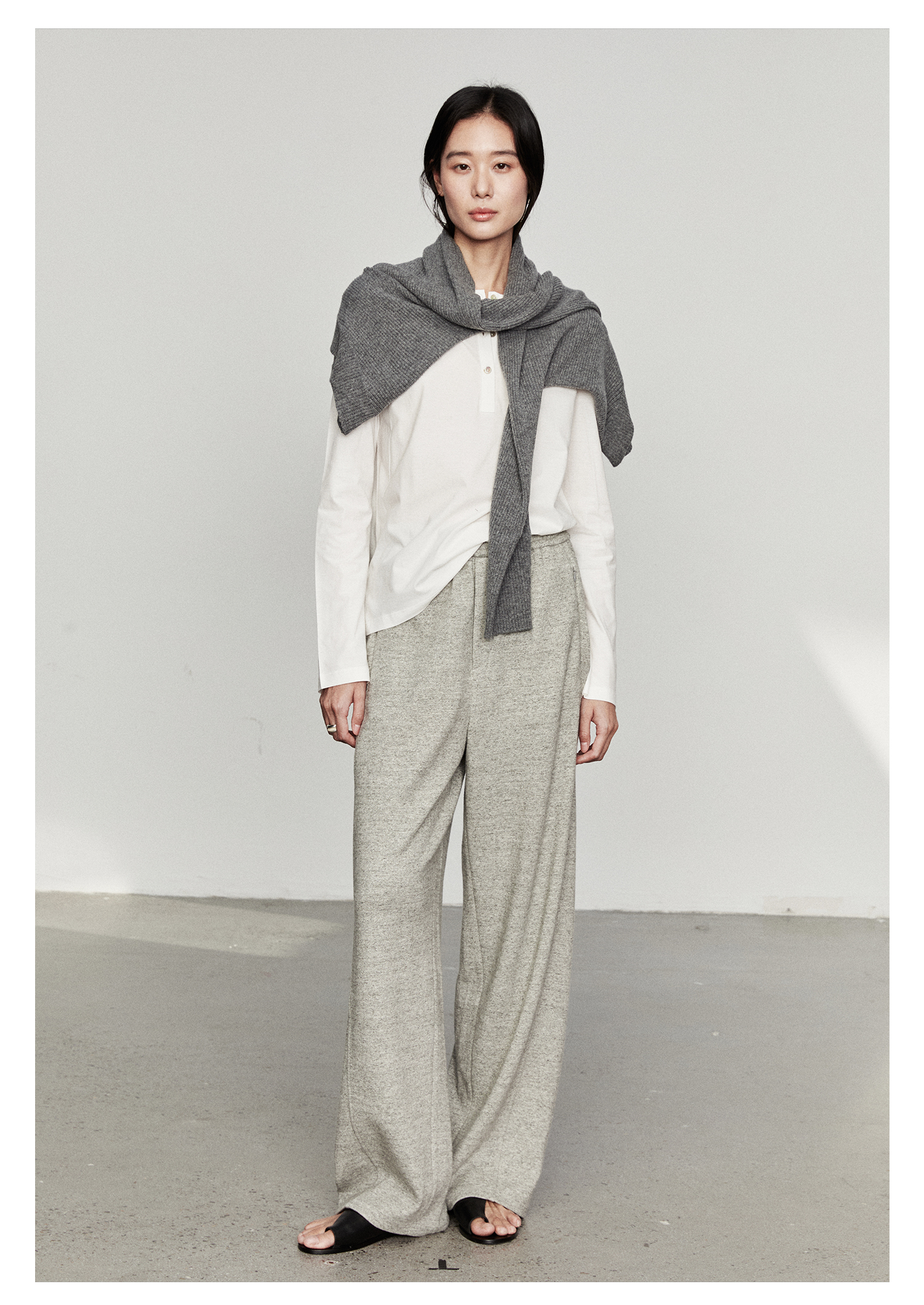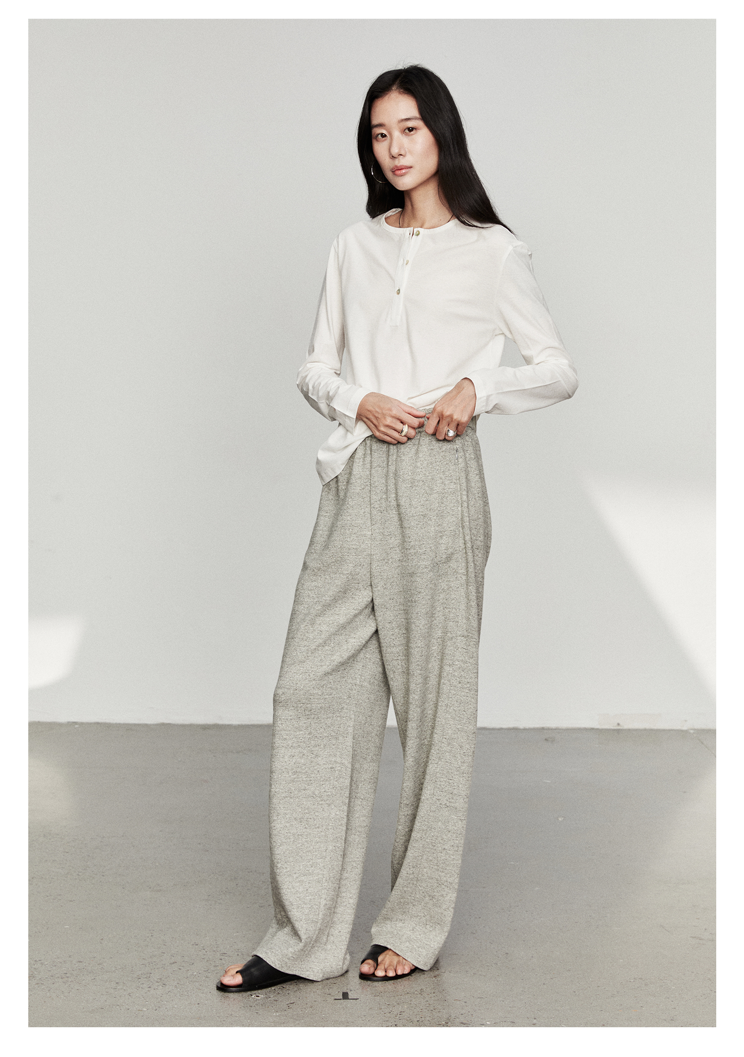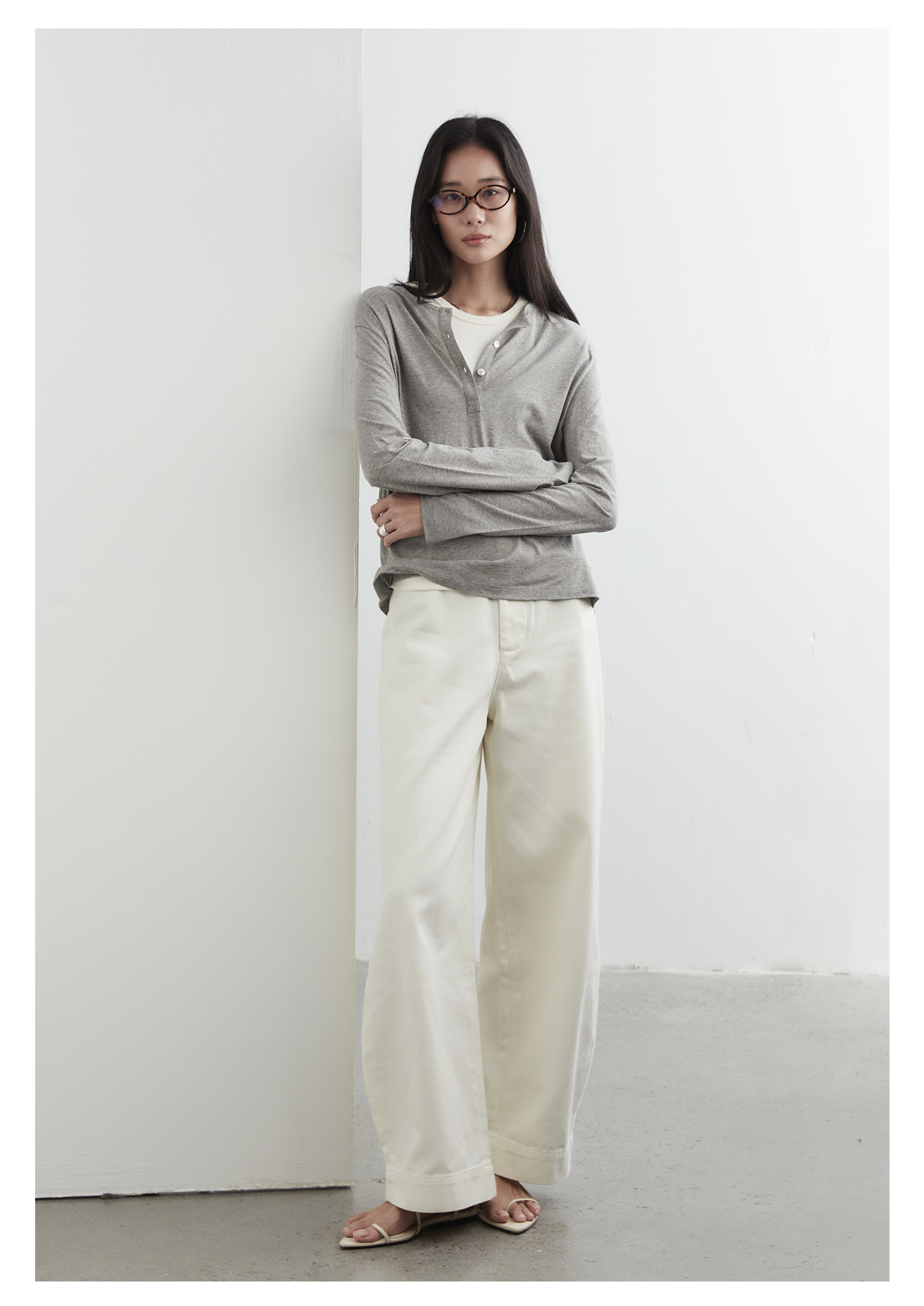 棉仓3561501002-秋装新中式亨利零长袖T恤 松弛感宽松设计感上衣打底衫