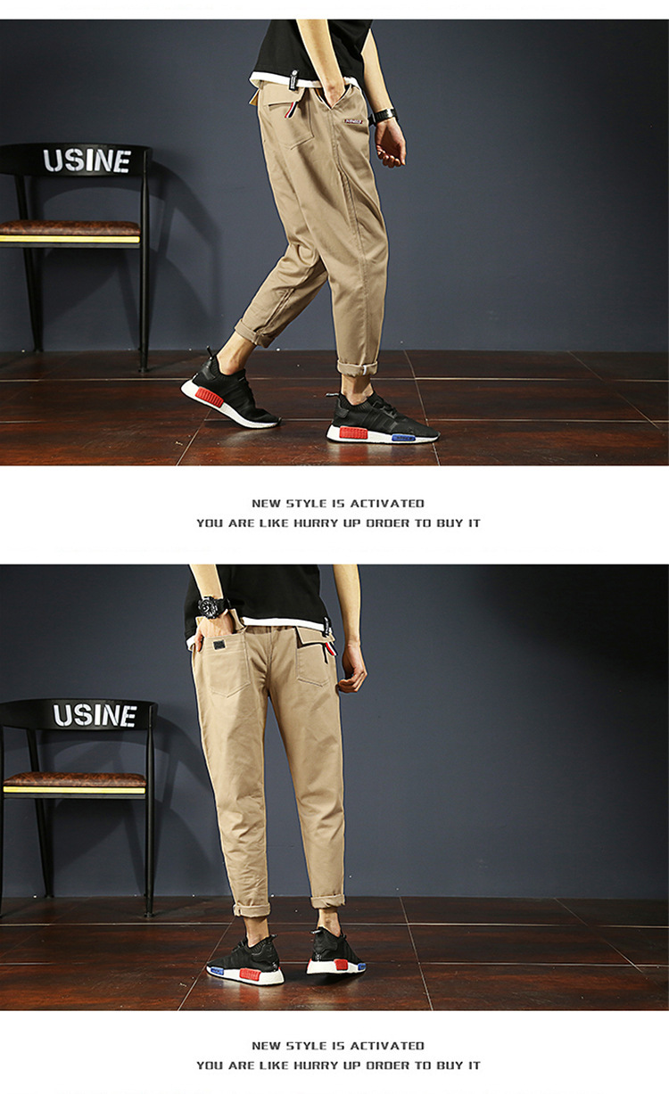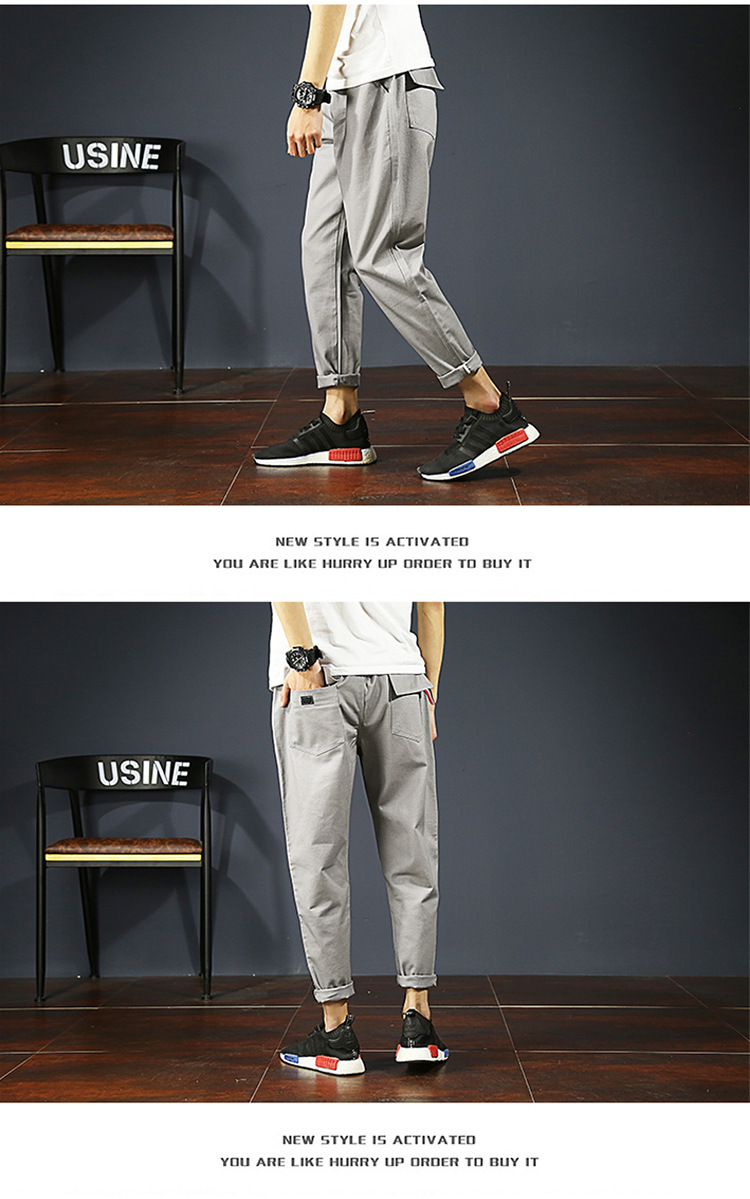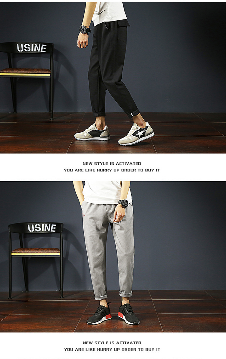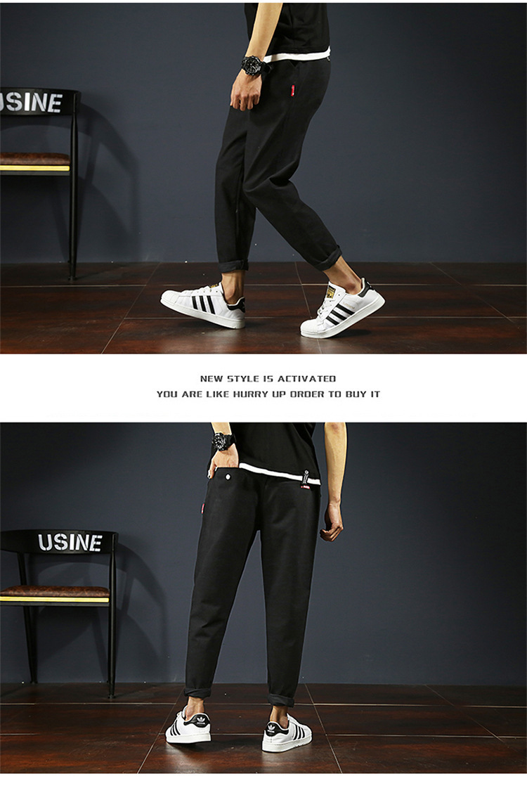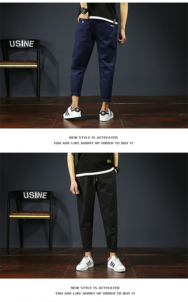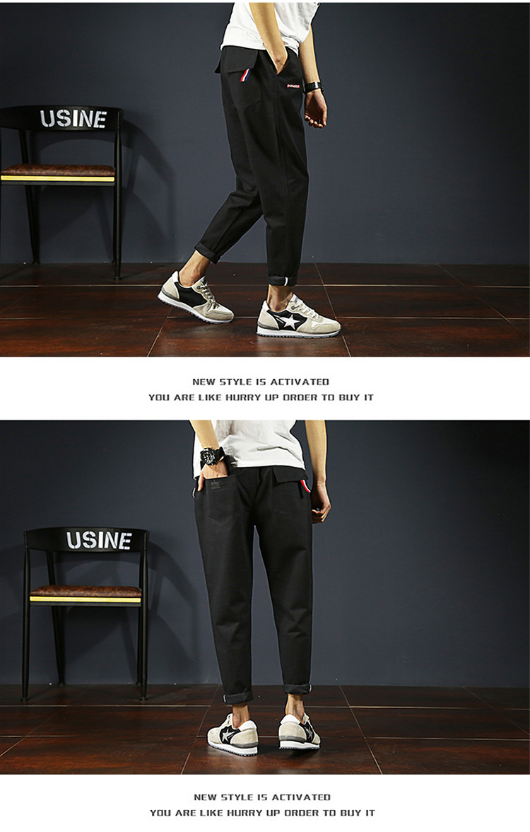 【服饰鞋包】男士纯棉休闲裤大码裤子夏季修身小脚裤日系潮牌青年哈伦裤男