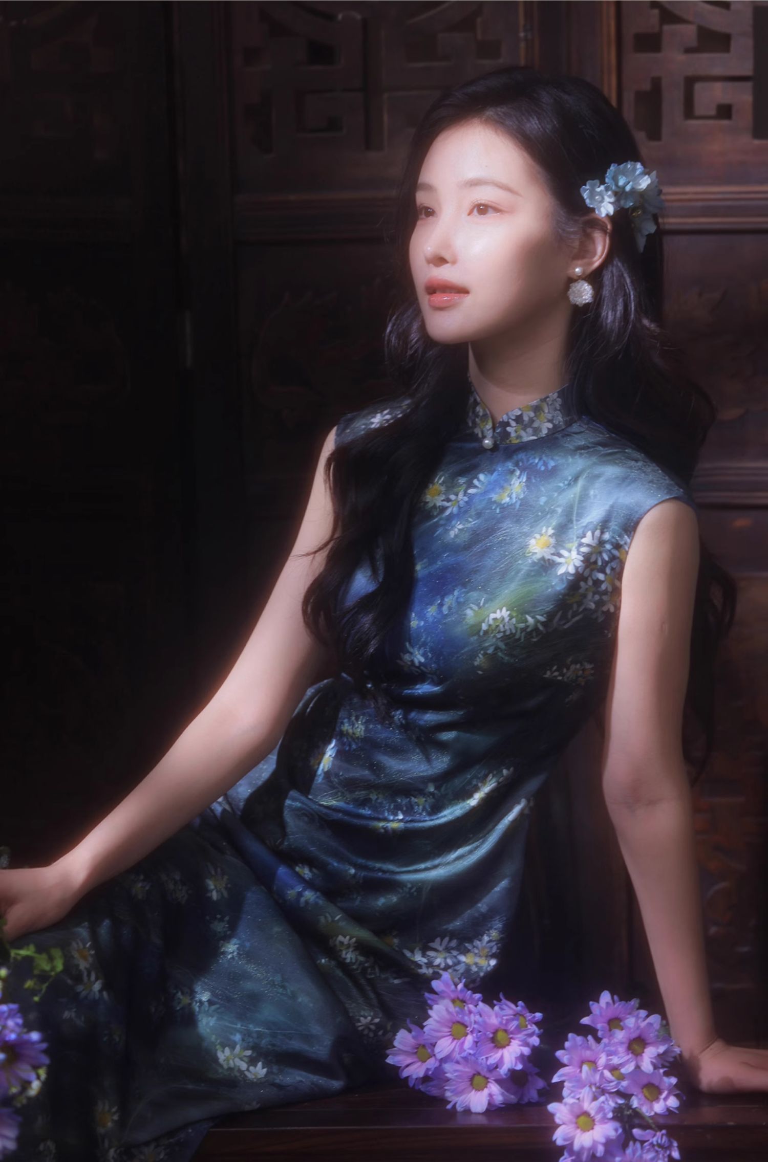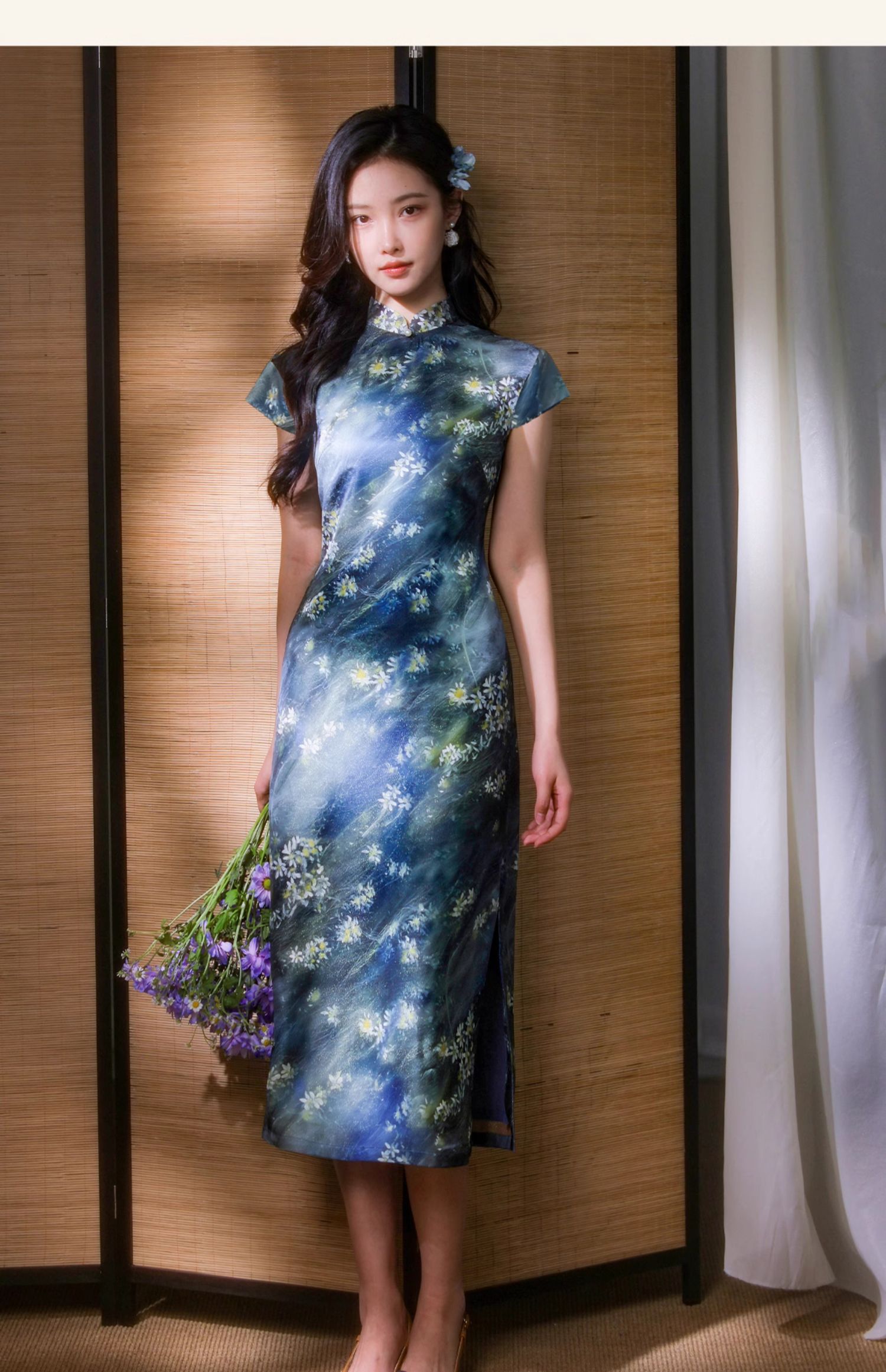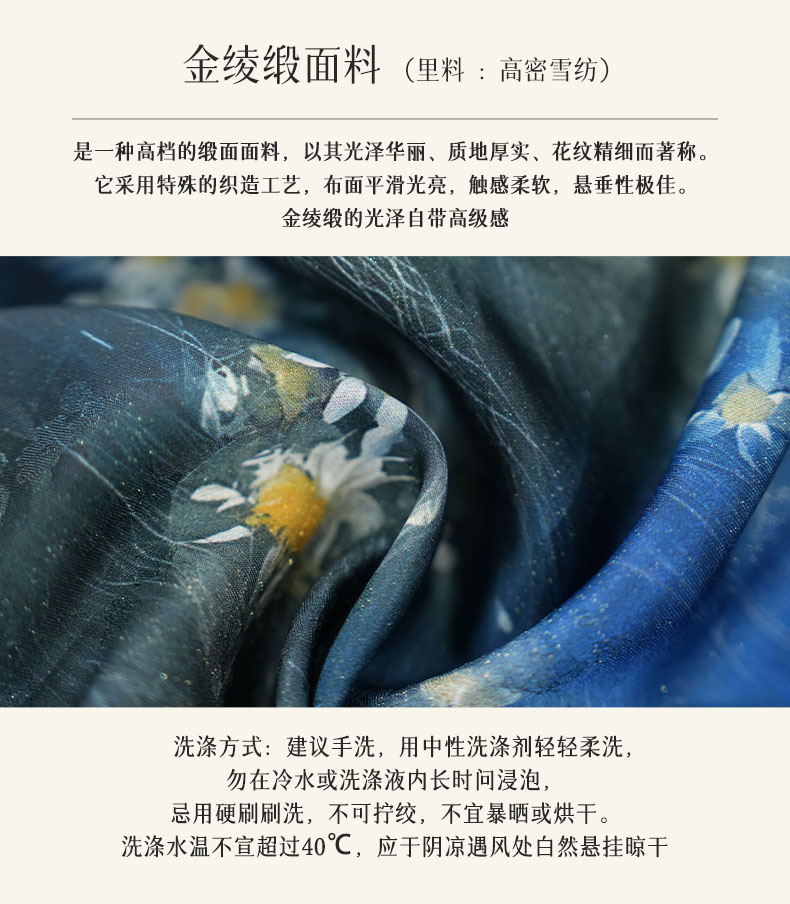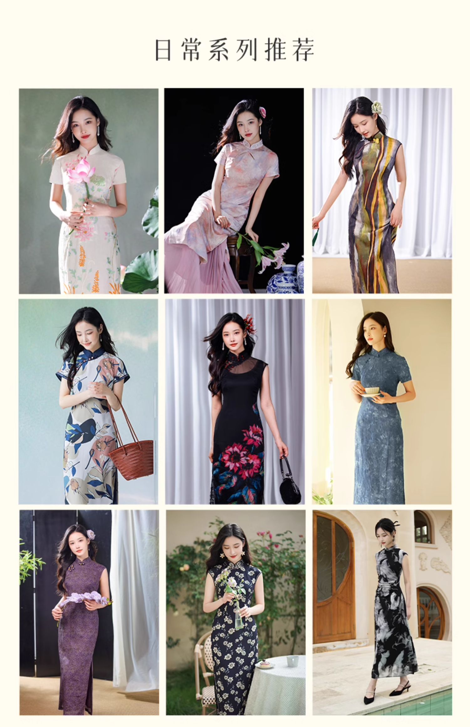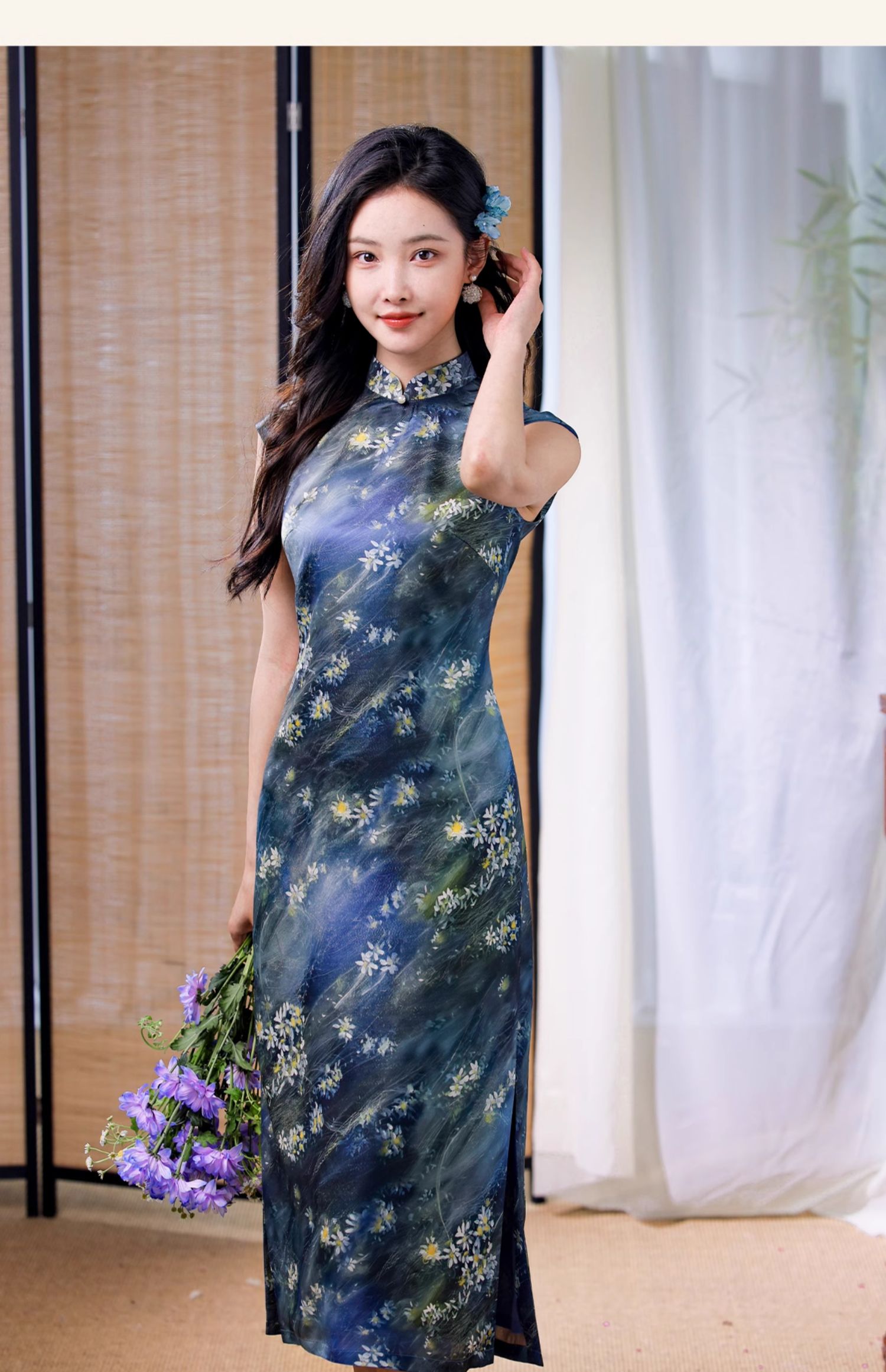 逸红颜彗予2025夏新款略宽松有腰身版金绫缎银河雏菊松弛感长旗袍