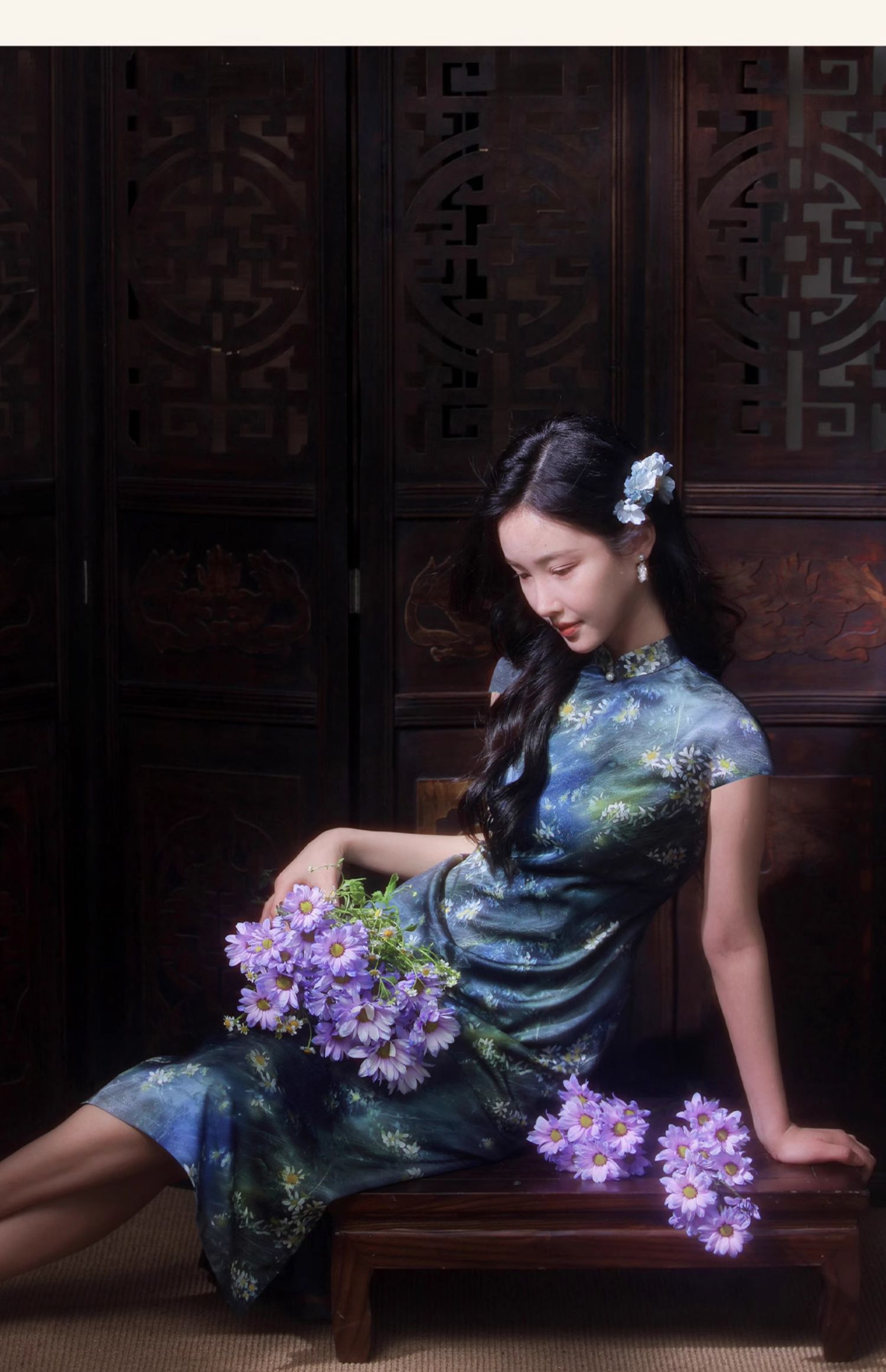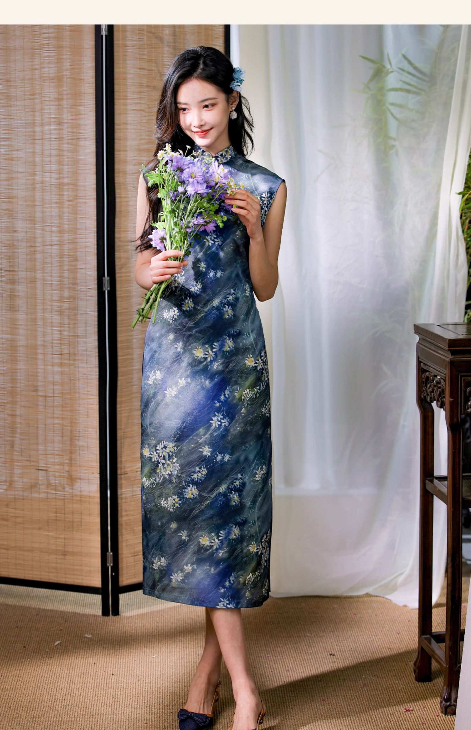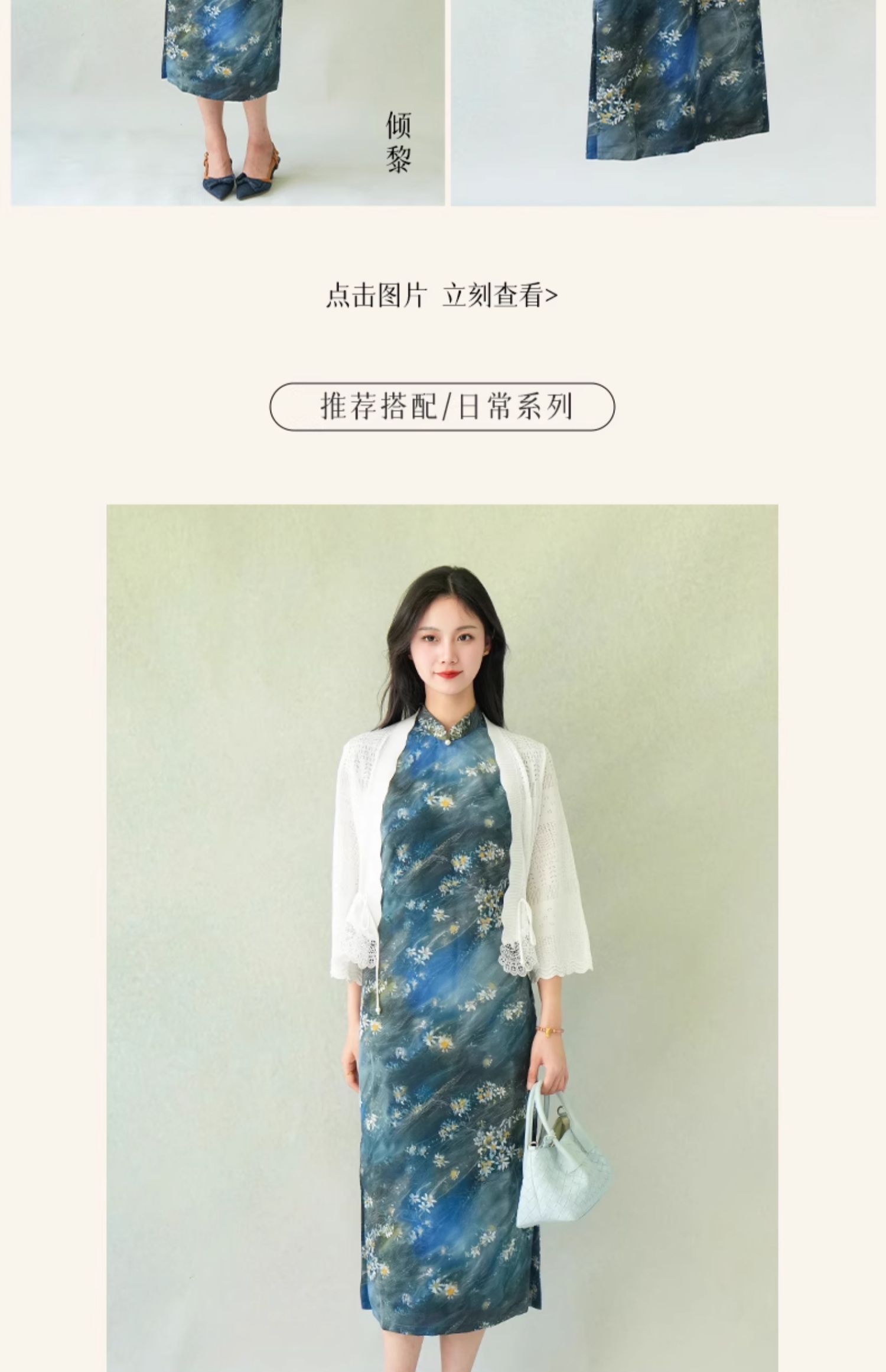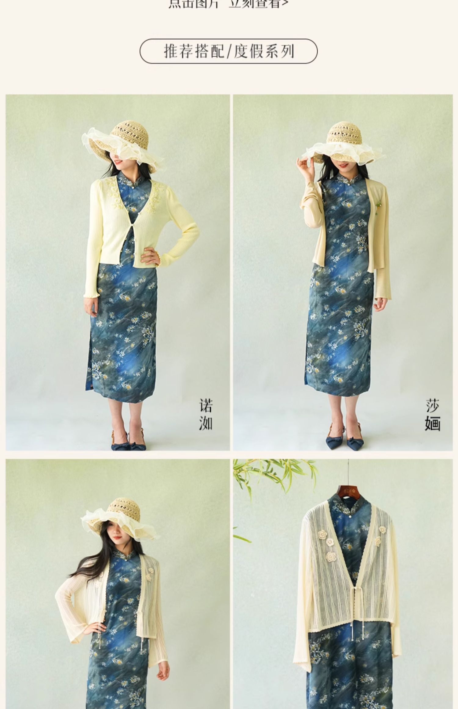 逸红颜彗予2025夏新款略宽松有腰身版金绫缎银河雏菊松弛感长旗袍