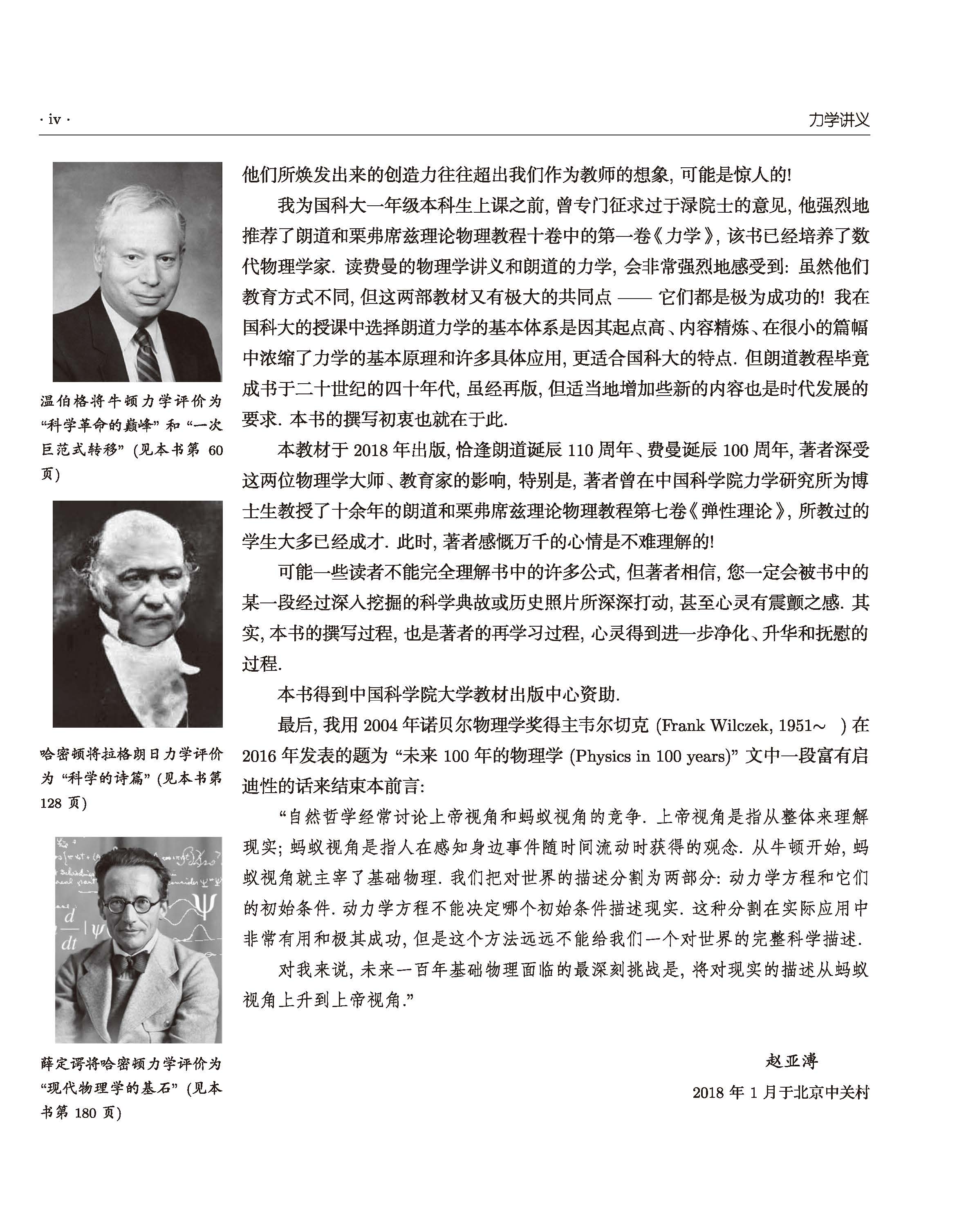 本书是著者为中国科学院大学(国科大)一年级本科生讲授《普通物理·力学》A班课程三年后,进一步沉淀和凝练而成的教材。针对国科大特别是A班的教学特点,著者在借鉴和吸收朗道、栗弗席兹理论物理教程第*卷《力学》突出优点的基础上,结合近年来相关的重大科学进展,适当地增加了一些新的内容,并给出了丰富的例题和思考题。